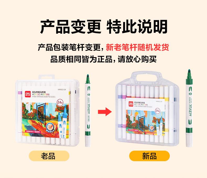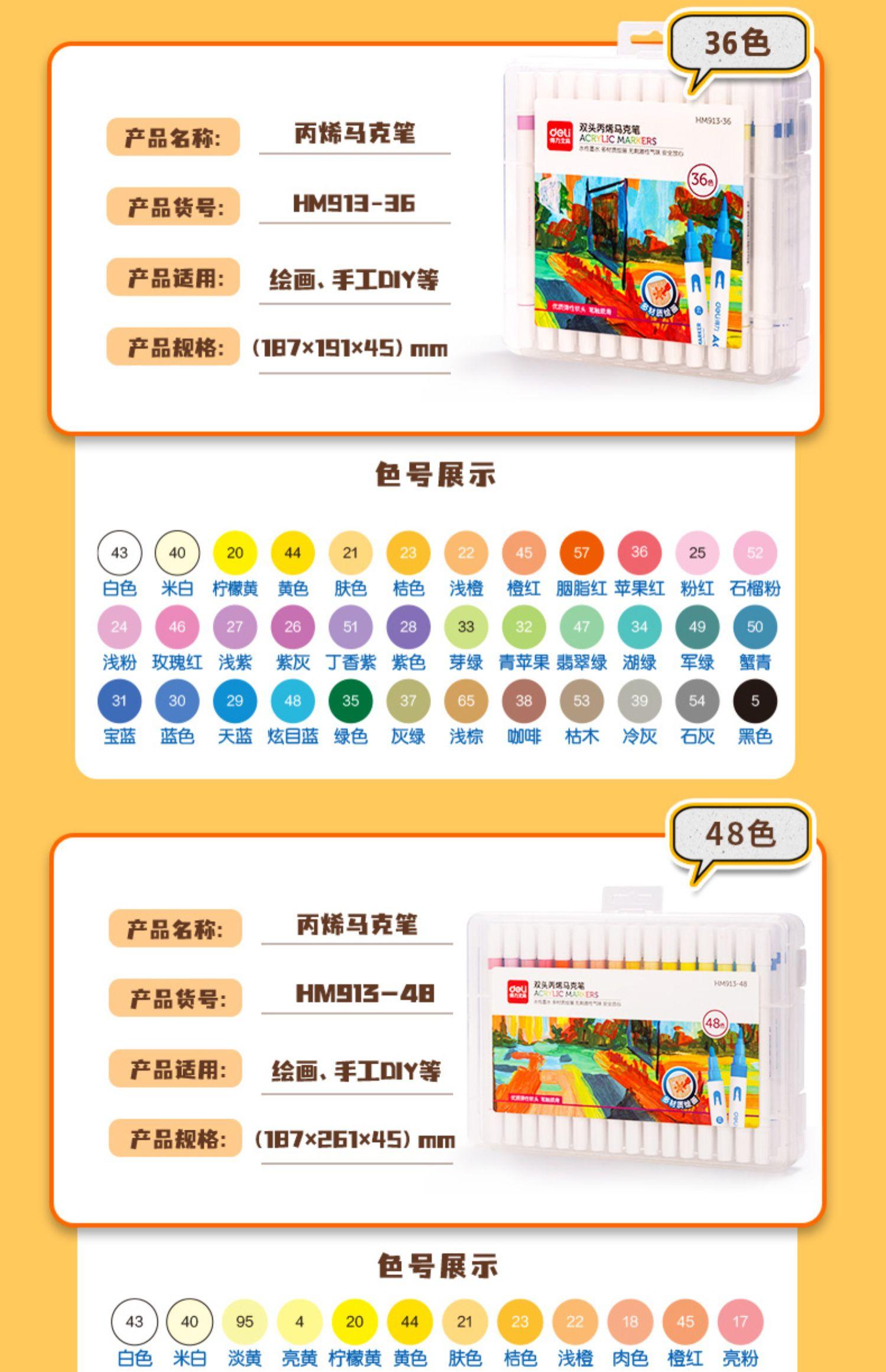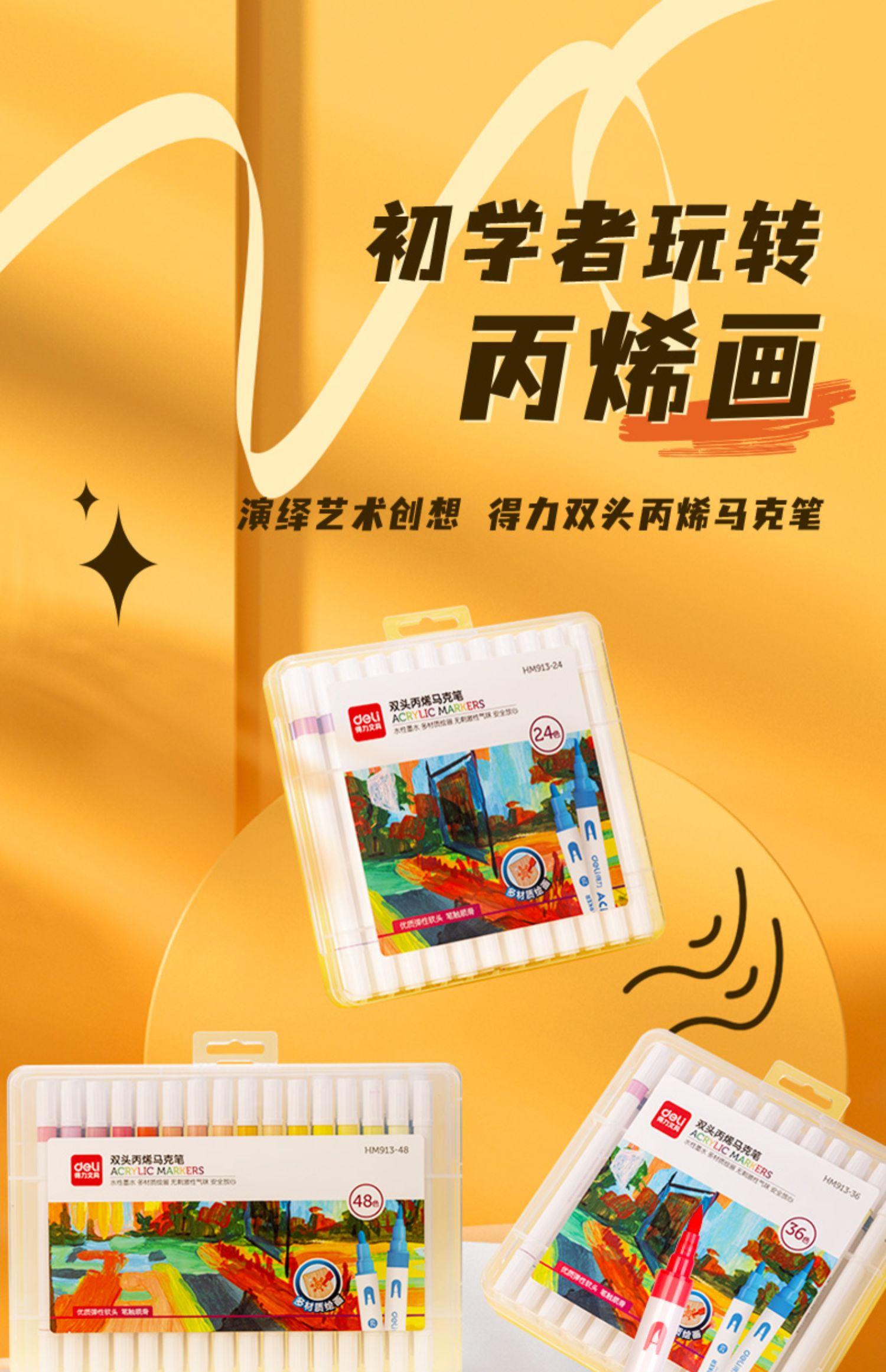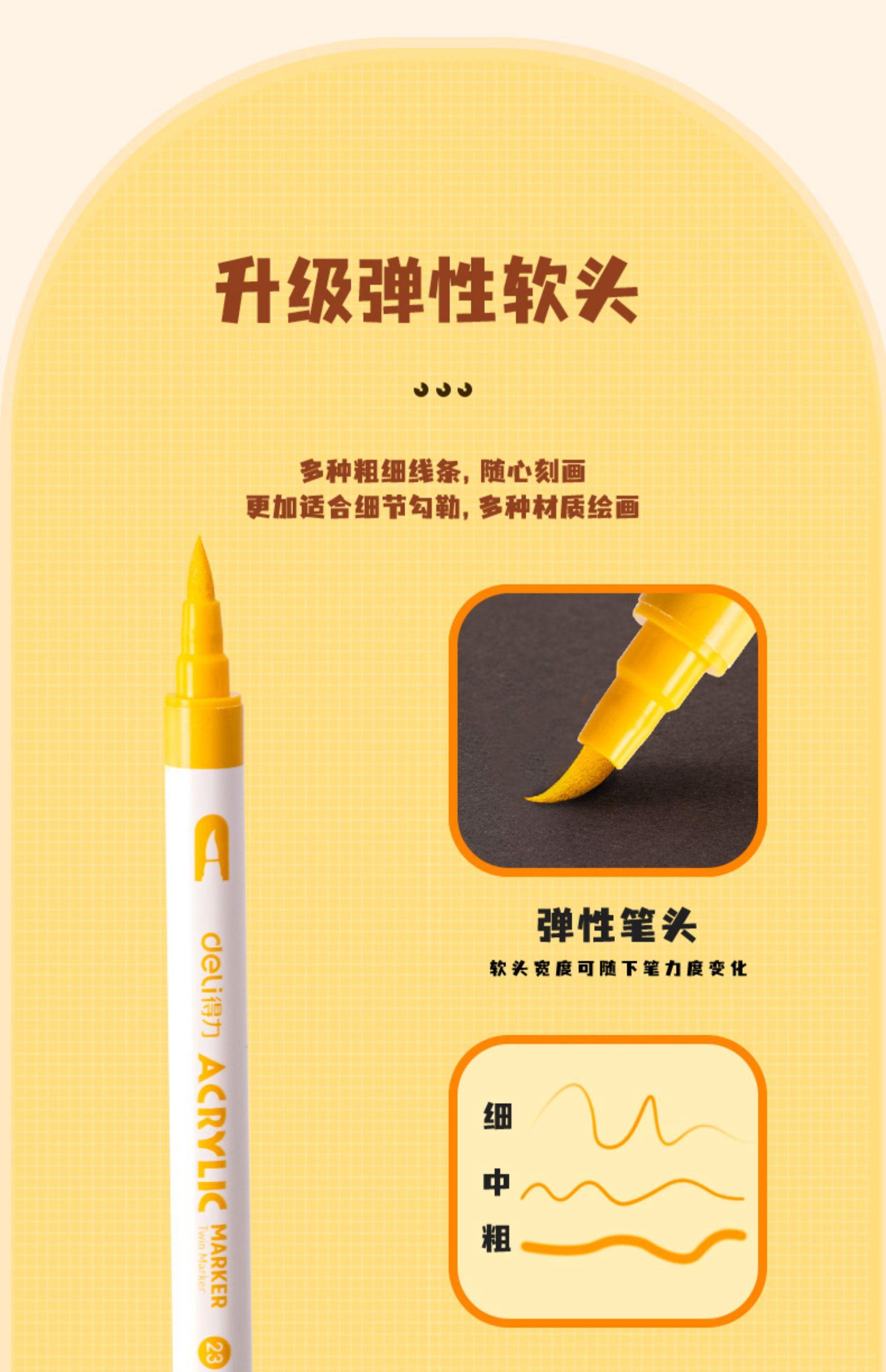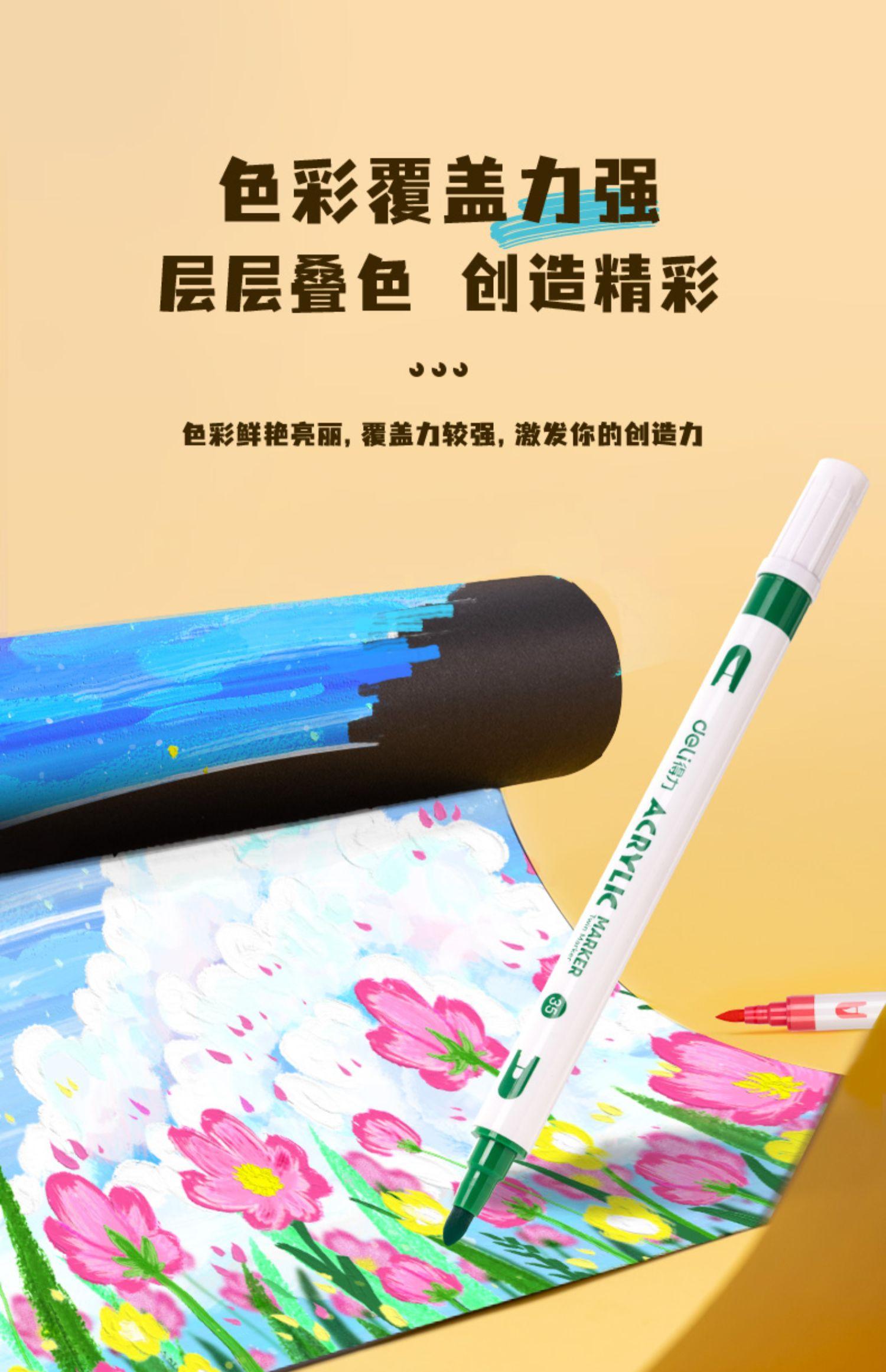 Marcador Acrílico de Doble Punta Deli para Estudiantes de Primaria DIY Impermeable Opaco Pincel de Cabeza Suave para Niños Lavable Pintura Suave 48