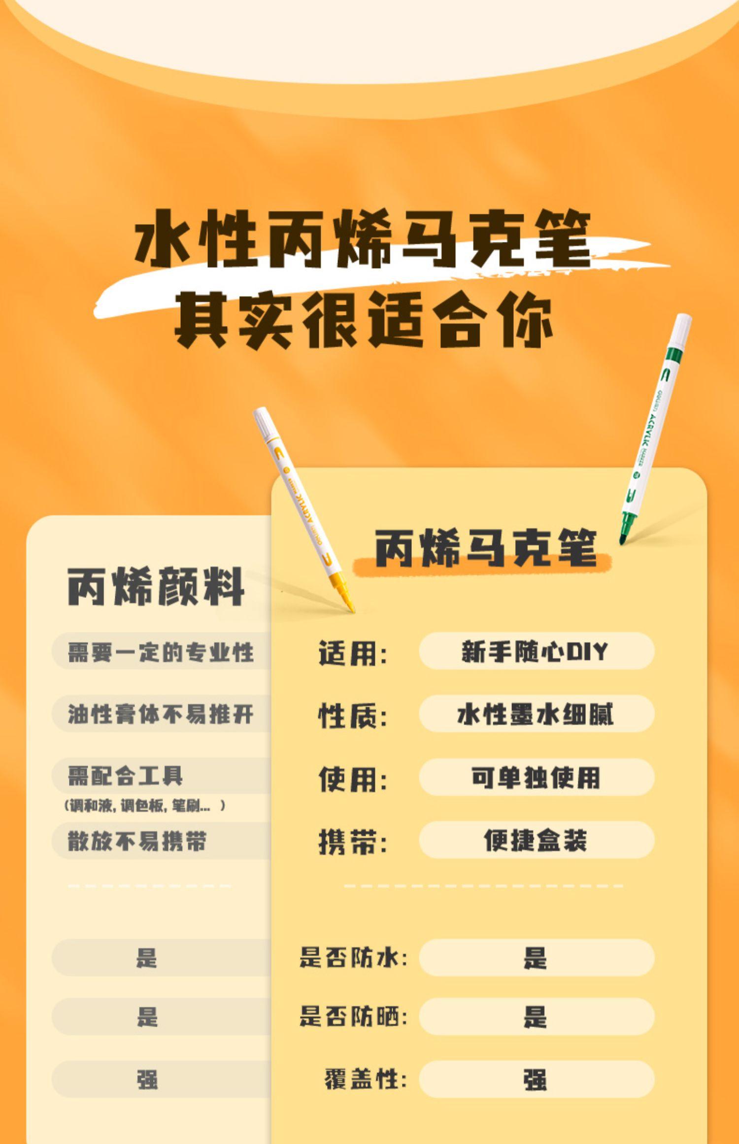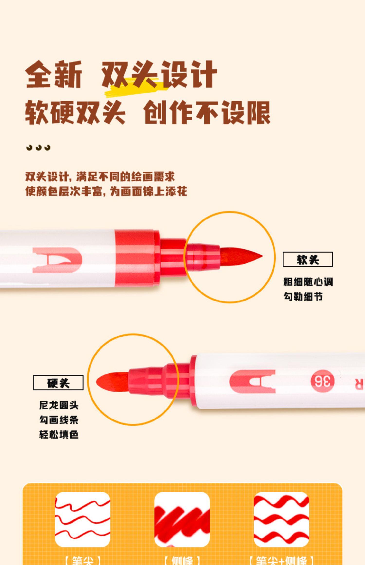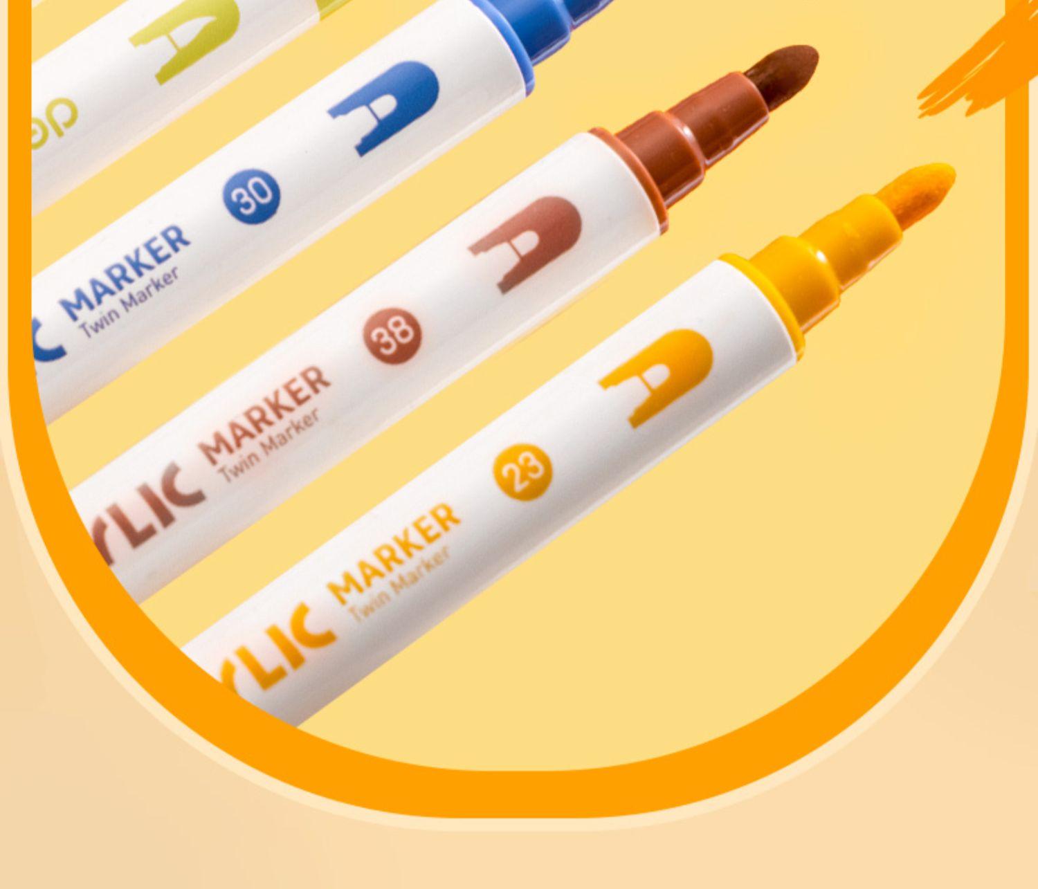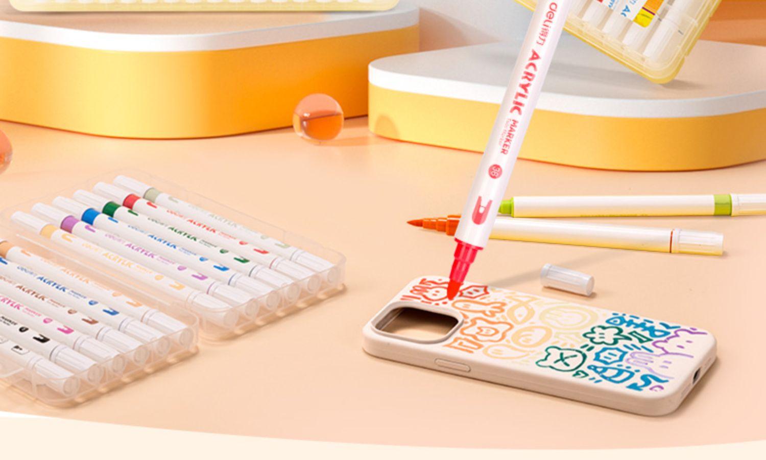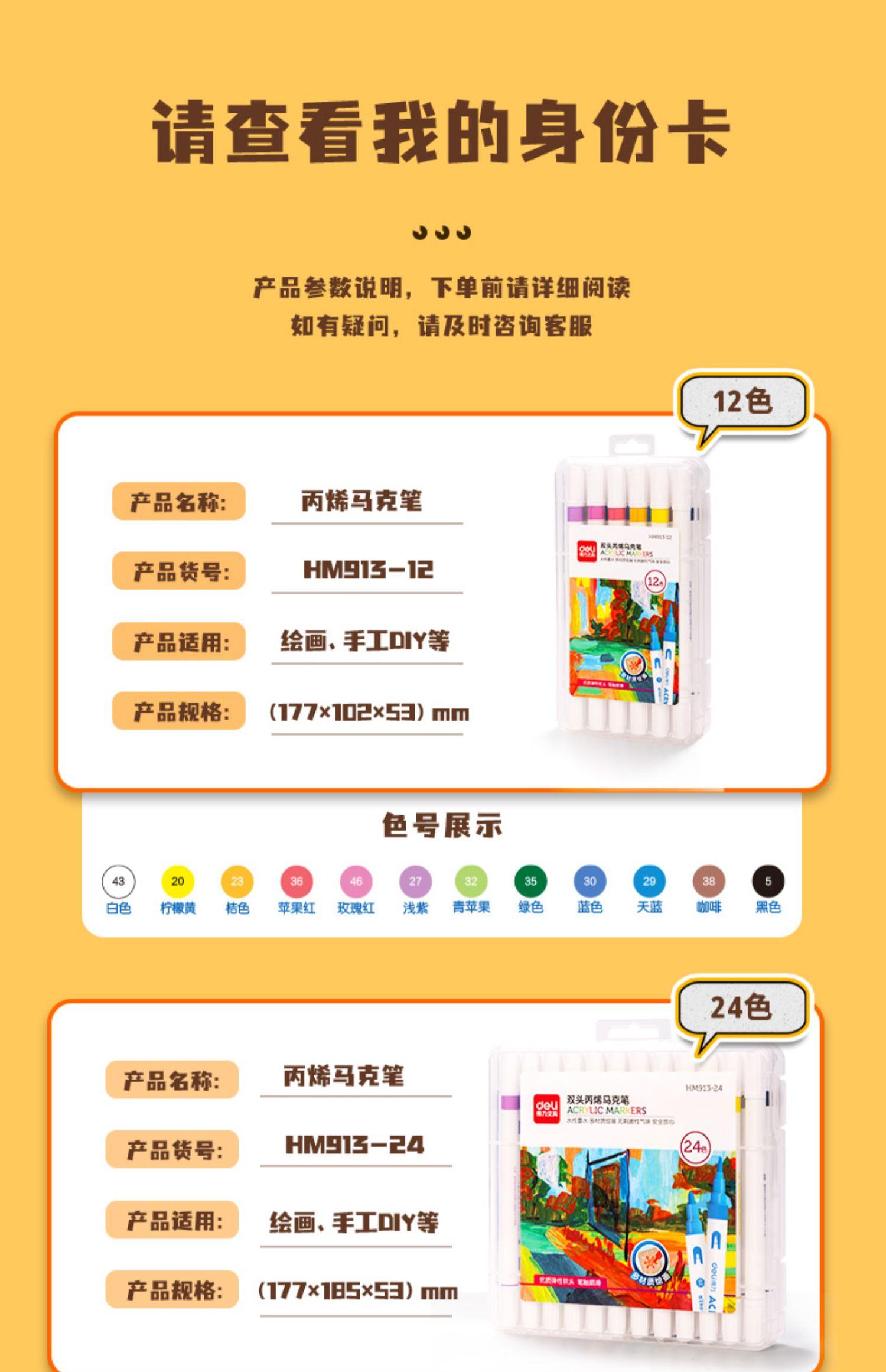 Marcador Acrílico de Doble Punta Deli para Estudiantes de Primaria DIY Impermeable Opaco Pincel de Cabeza Suave para Niños Lavable Pintura Suave 48