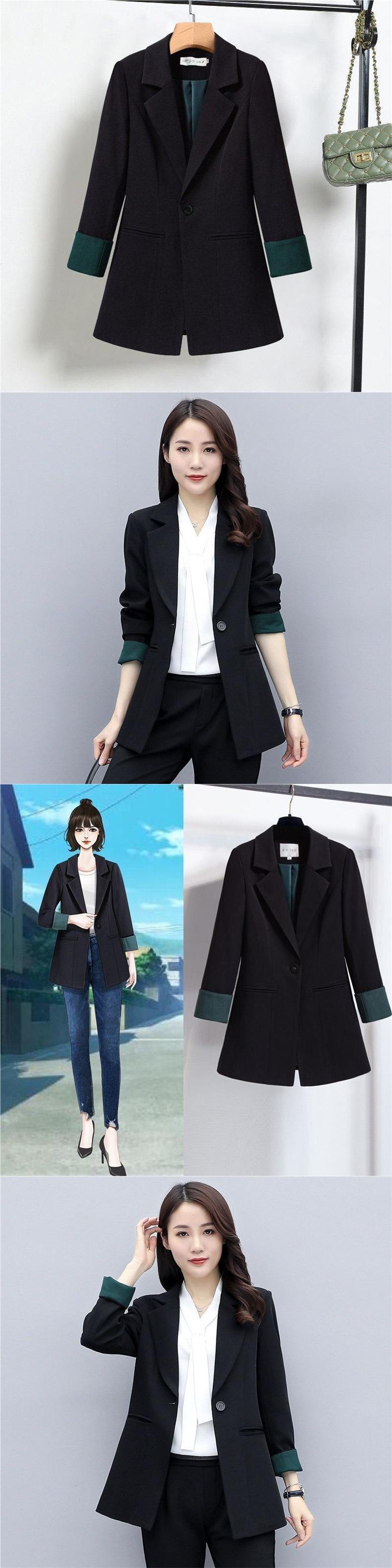 Chaqueta de Traje Negra Pequeña para Mujer 2023 Primavera y Otoño Estilo Coreano Slim y Versátil Celebridad de Internet Estilo Británico Top de Largo Medio Trendy