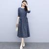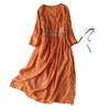 2024 Primavera y Verano Literario Elegante Cuello Redondo Manga Tres Cuartos Falda Midi de Algodón Vestido Bordado de Algodón Puro para Mujer Estilo Étnico