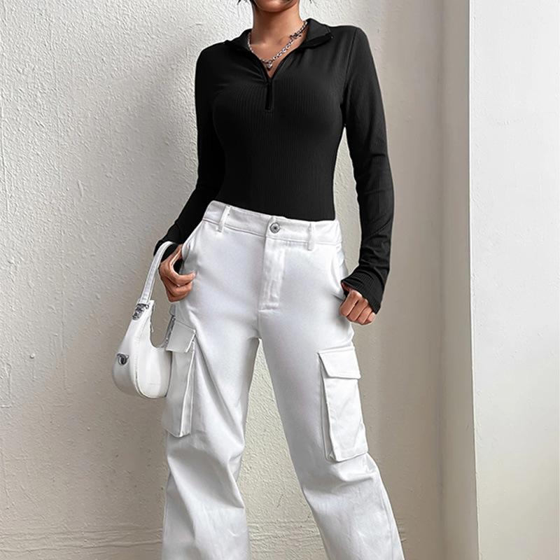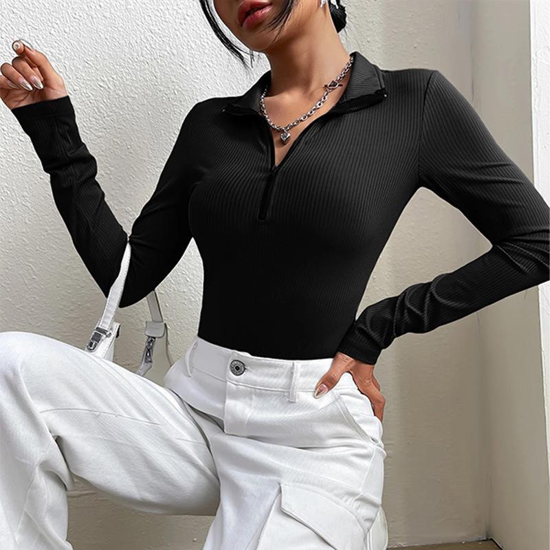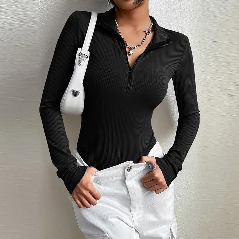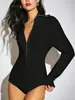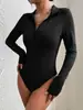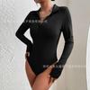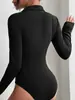 Europeo y Americano Otoño e Invierno Nuevo Estilo 2025 Sexy Moda Simple Color Puro Ajustado Cremallera Versátil Cuello Alto Manga Larga Mono para Mujer