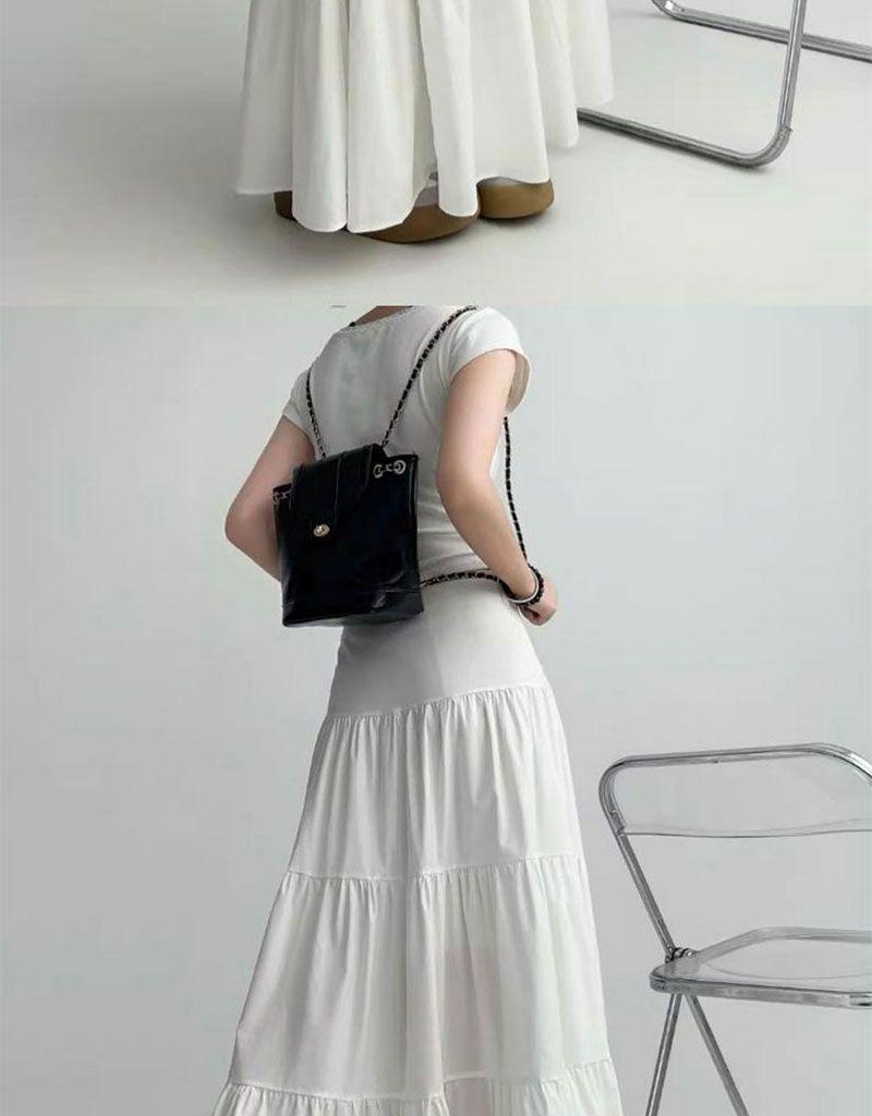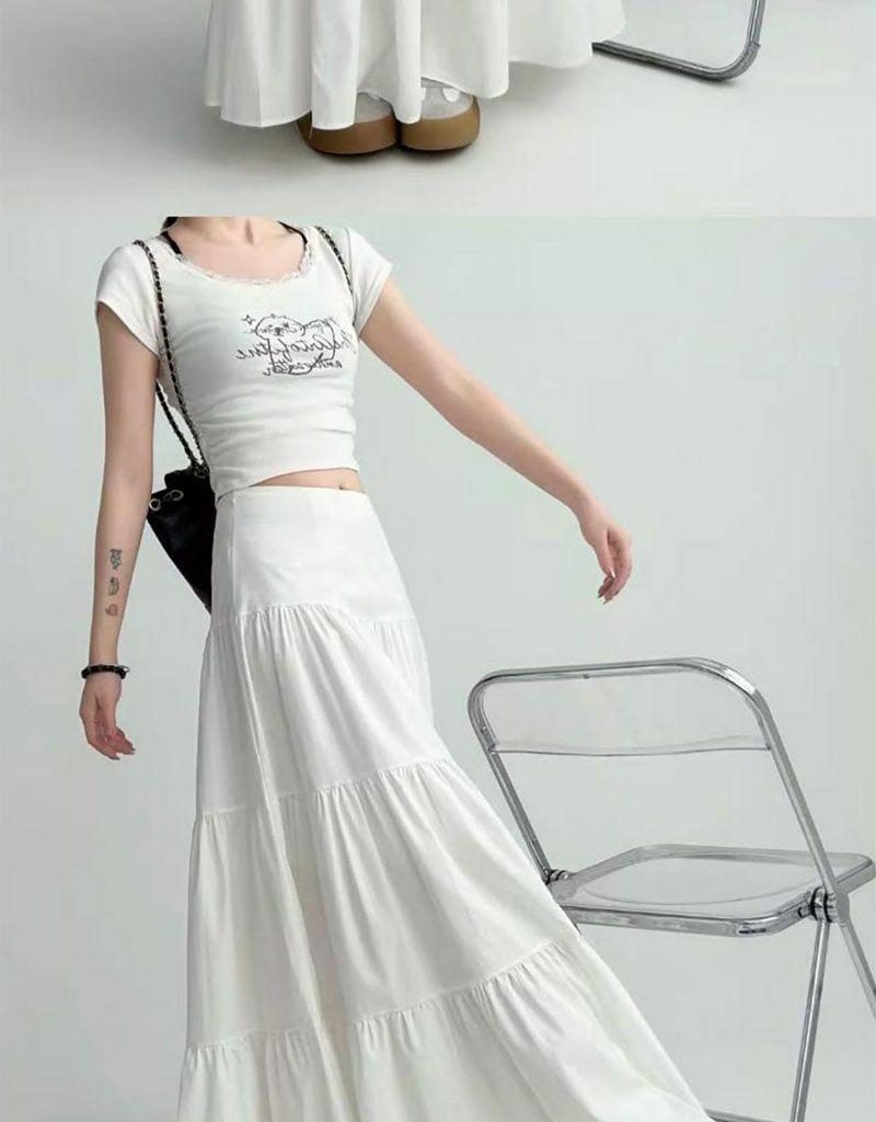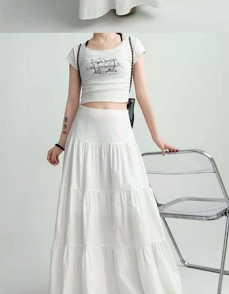 Falda Blanca de Pastel de Estilo Suave para Mujer 2025 Primavera y Verano Nuevo Estilo Falda Paraguas de Dobladillo Grande Cintura Adelgazante Look Falda Midi