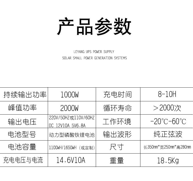 Fuente de alimentación UPS de litio 1000W portátil para el hogar, exterior, energía de respaldo de emergencia, fuente de alimentación de almacenamiento de energía solar