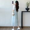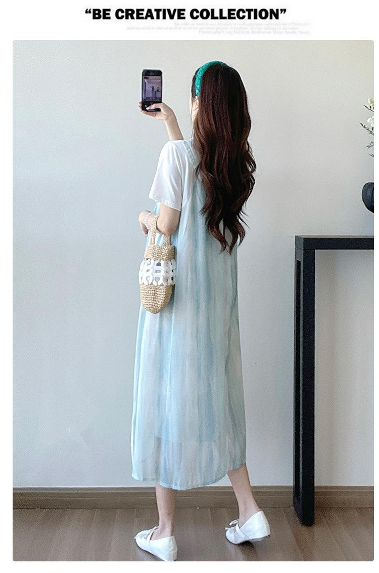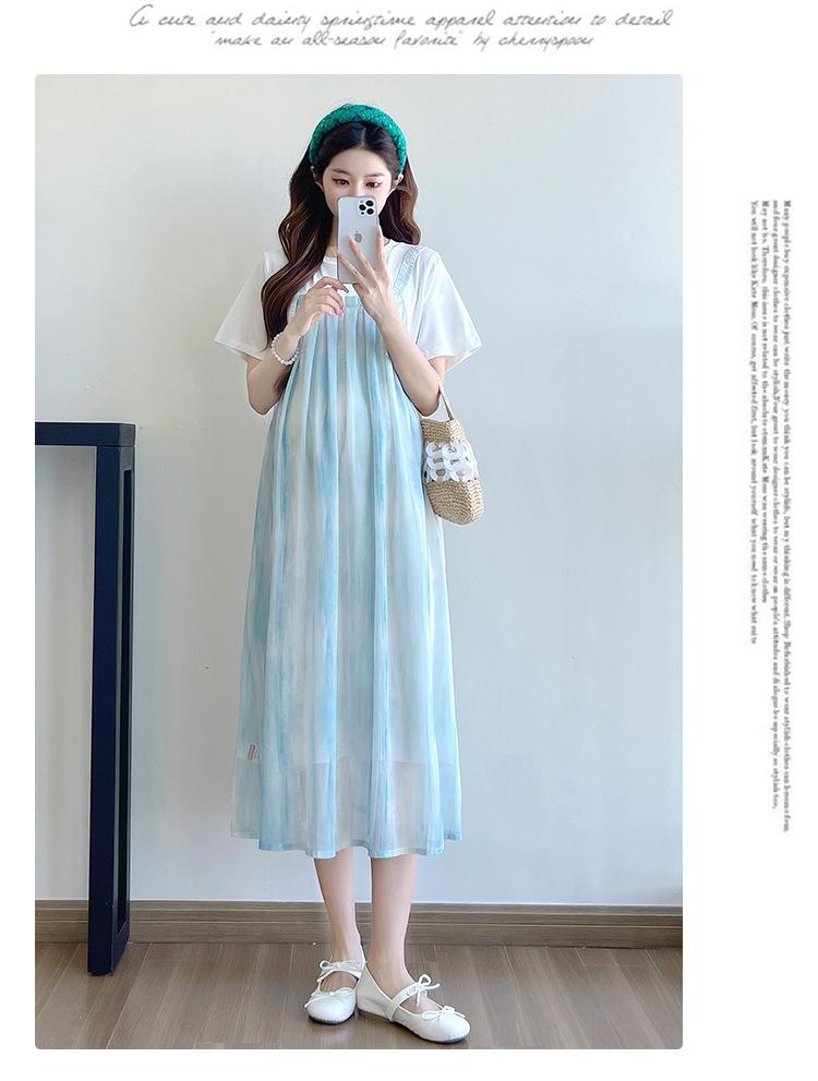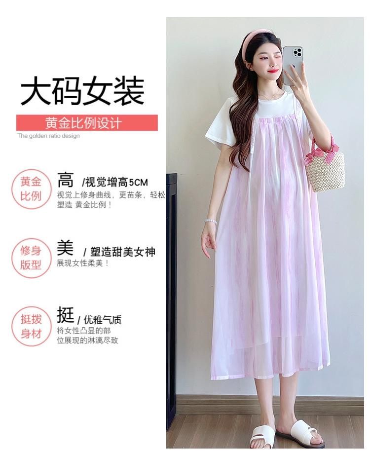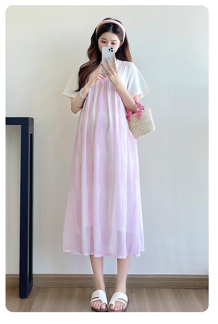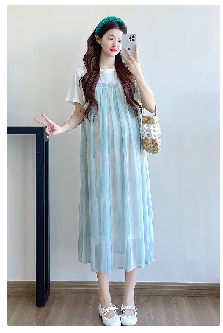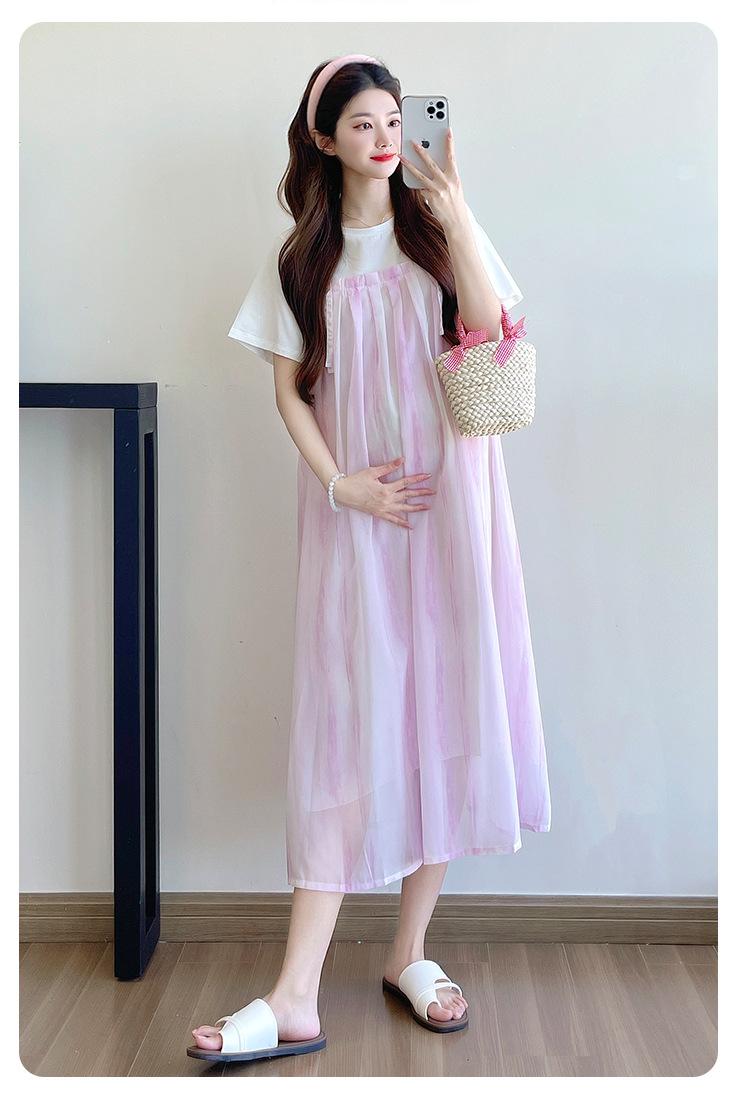 Vestido de maternidad de verano 2025, nueva moda, camiseta suelta de dos piezas falsa, falda larga, falda de maternidad de verano.