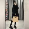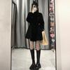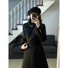 Abrigo de Lana con Cordones Estilo Hepburn de Primavera y Otoño 2025 para Mujeres Pequeñas Nuevo Estilo Coreano Cuello Alto Abrigo de Lana Negro