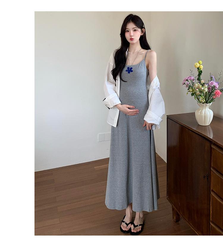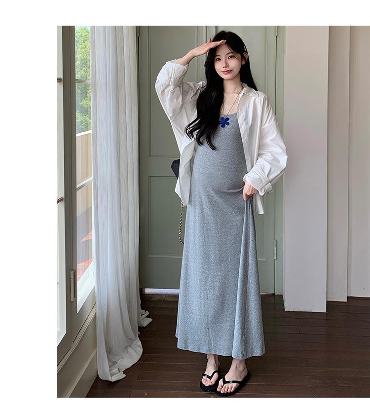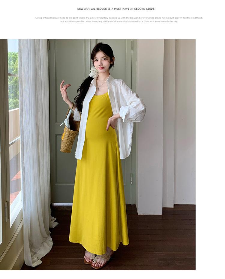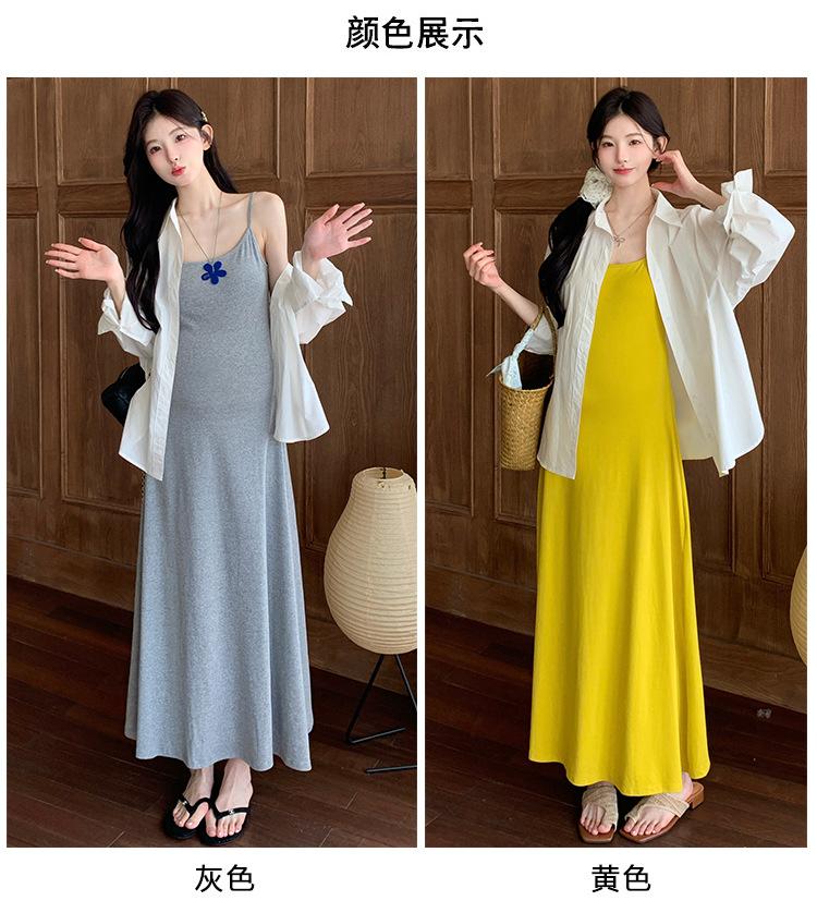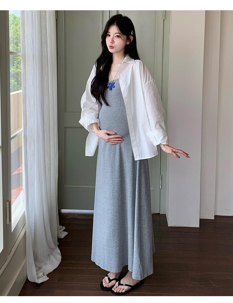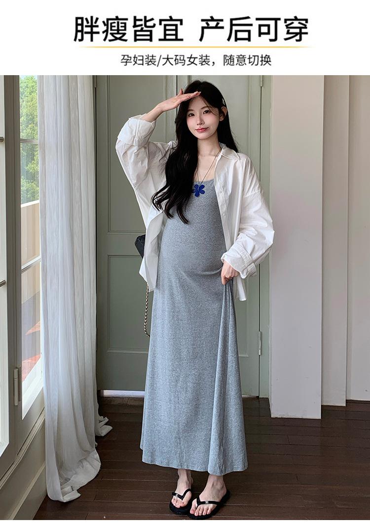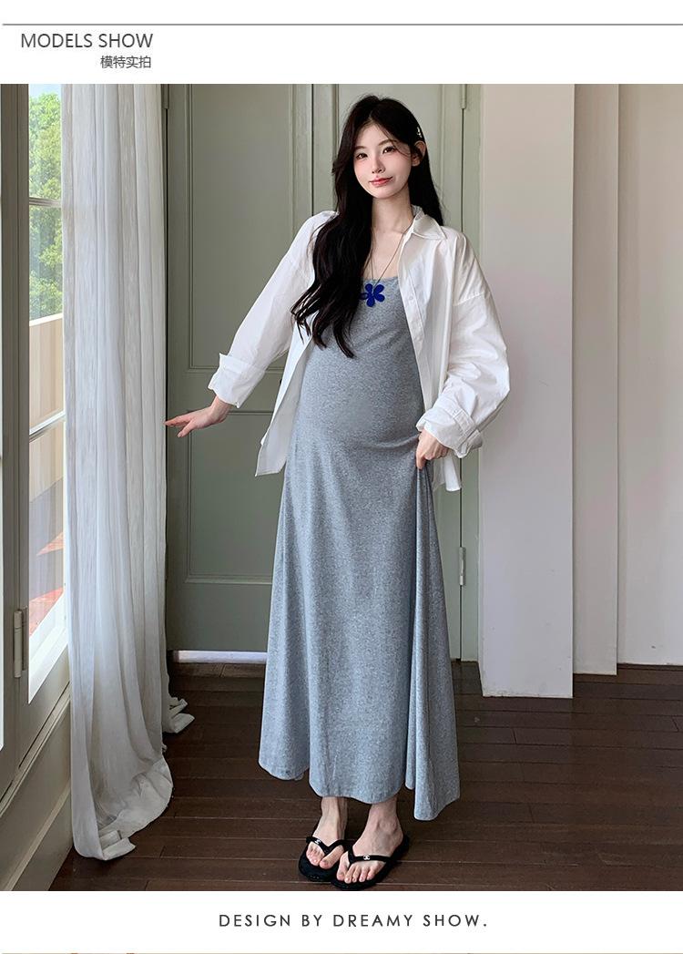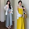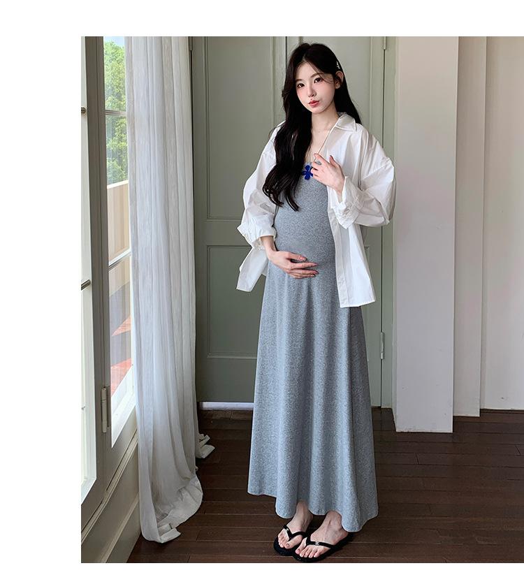Ropa de Maternidad 2025 Nuevo Verano Camisa Protección Solar + Falda Larga con Tirantes Estilo Lazy Vestido de Maternidad de Dos Piezas