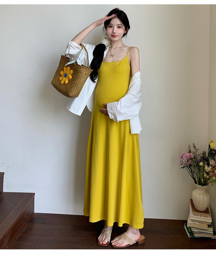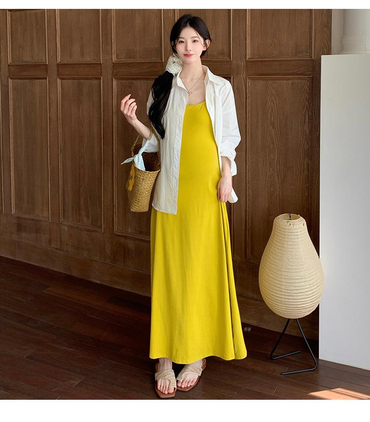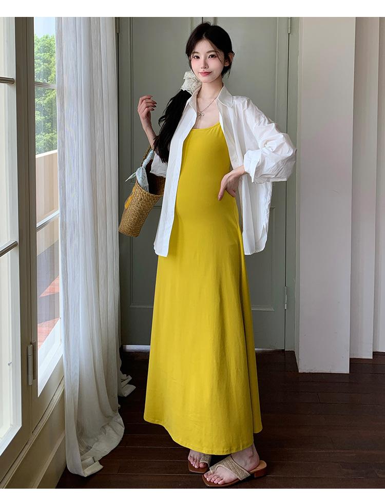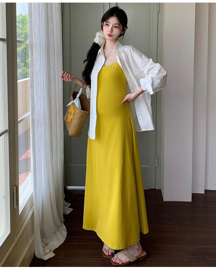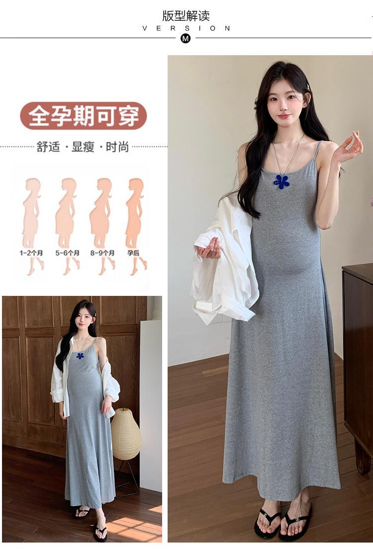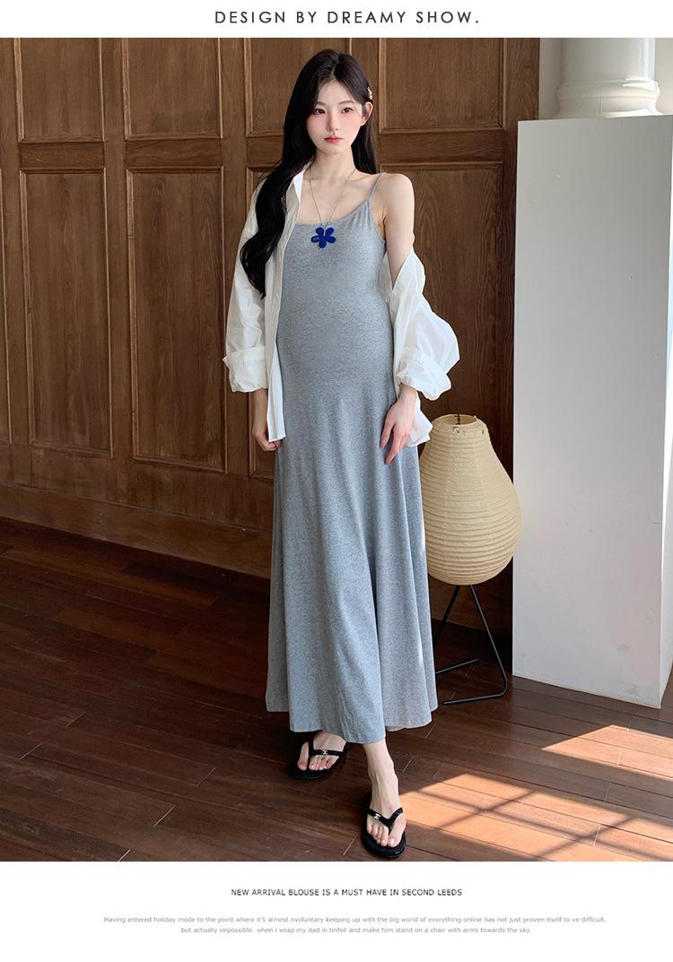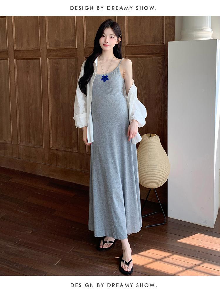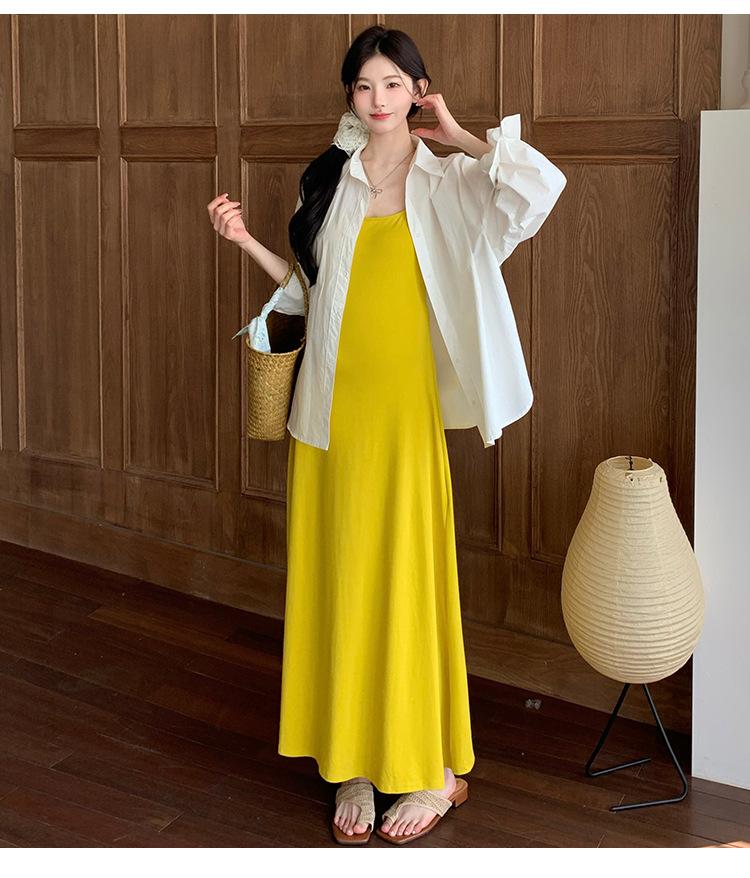 Ropa de Maternidad 2025 Nuevo Verano Camisa Protección Solar + Falda Larga con Tirantes Estilo Lazy Vestido de Maternidad de Dos Piezas