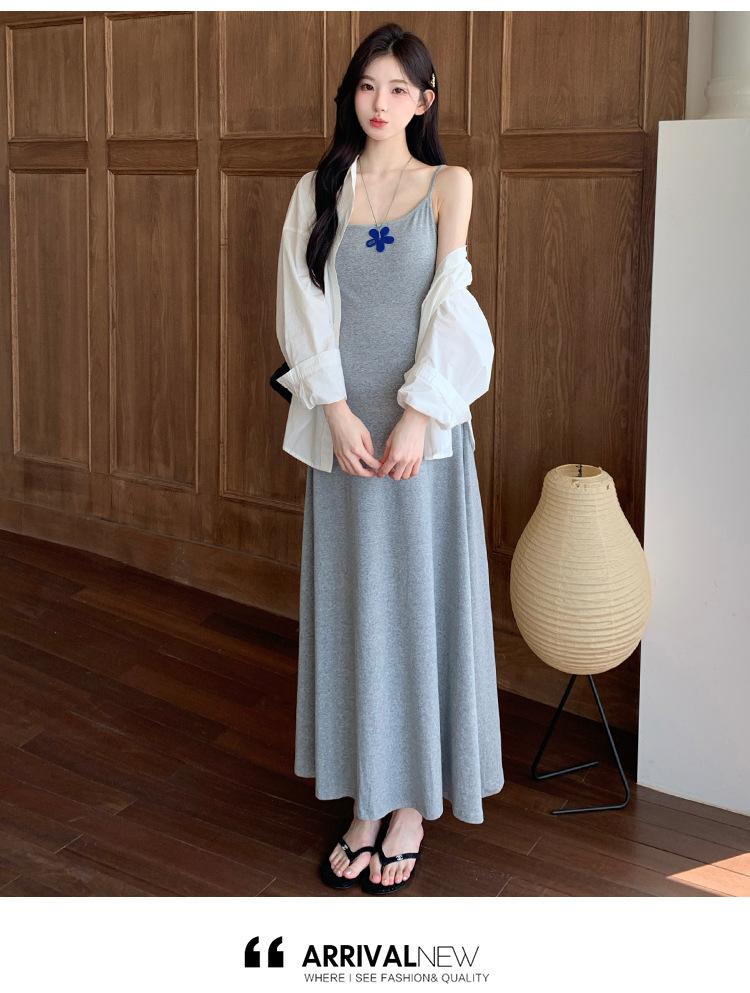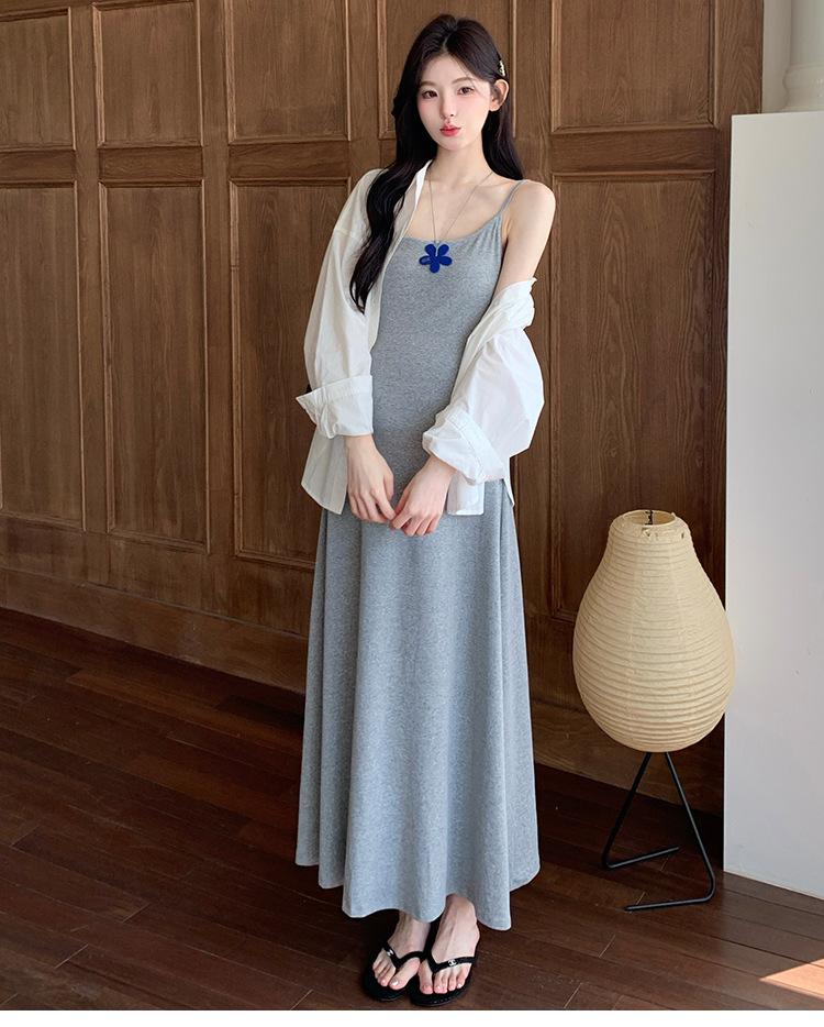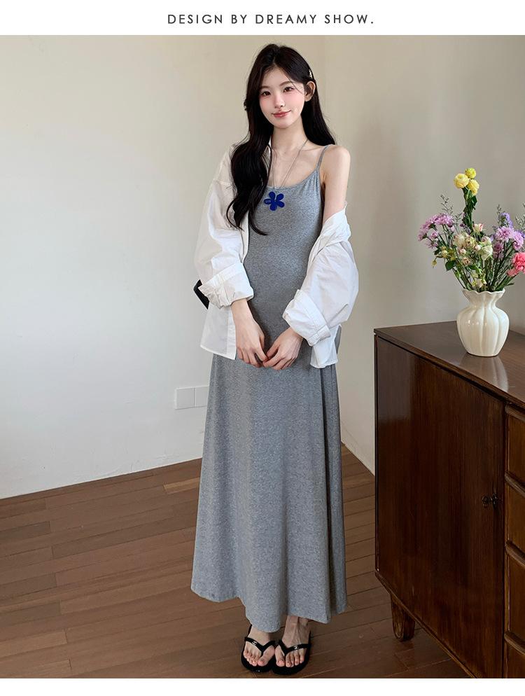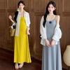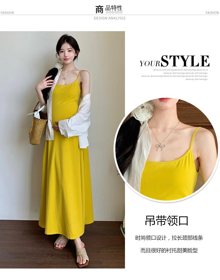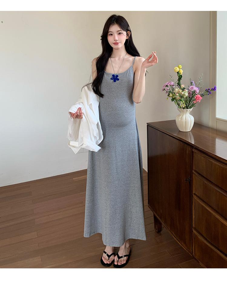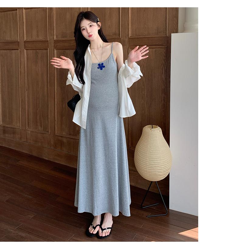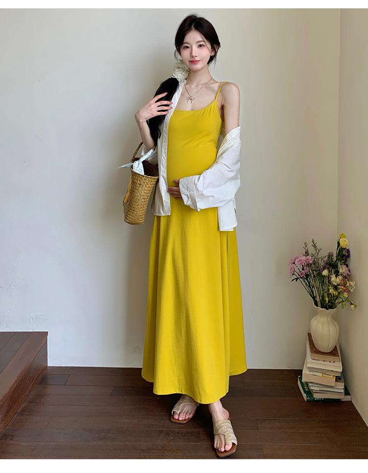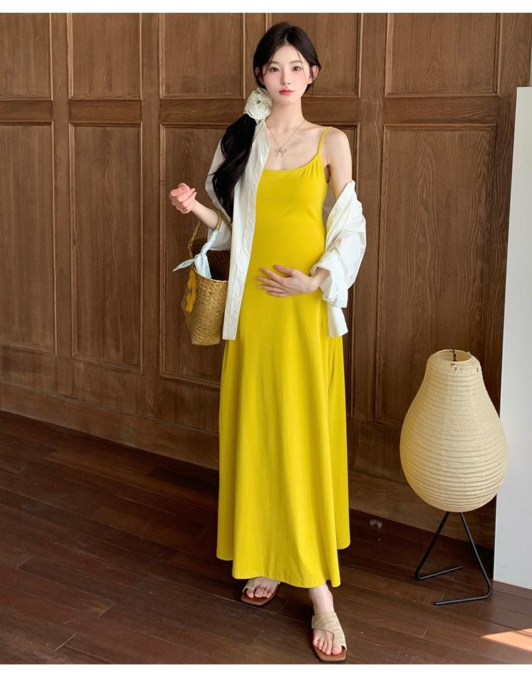 Ropa de Maternidad 2025 Nuevo Verano Camisa Protección Solar + Falda Larga con Tirantes Estilo Lazy Vestido de Maternidad de Dos Piezas
