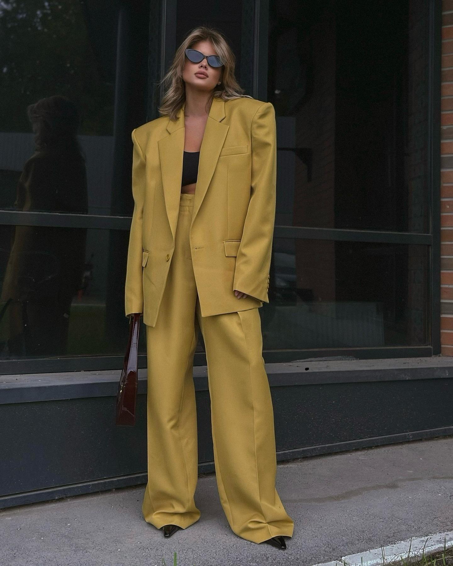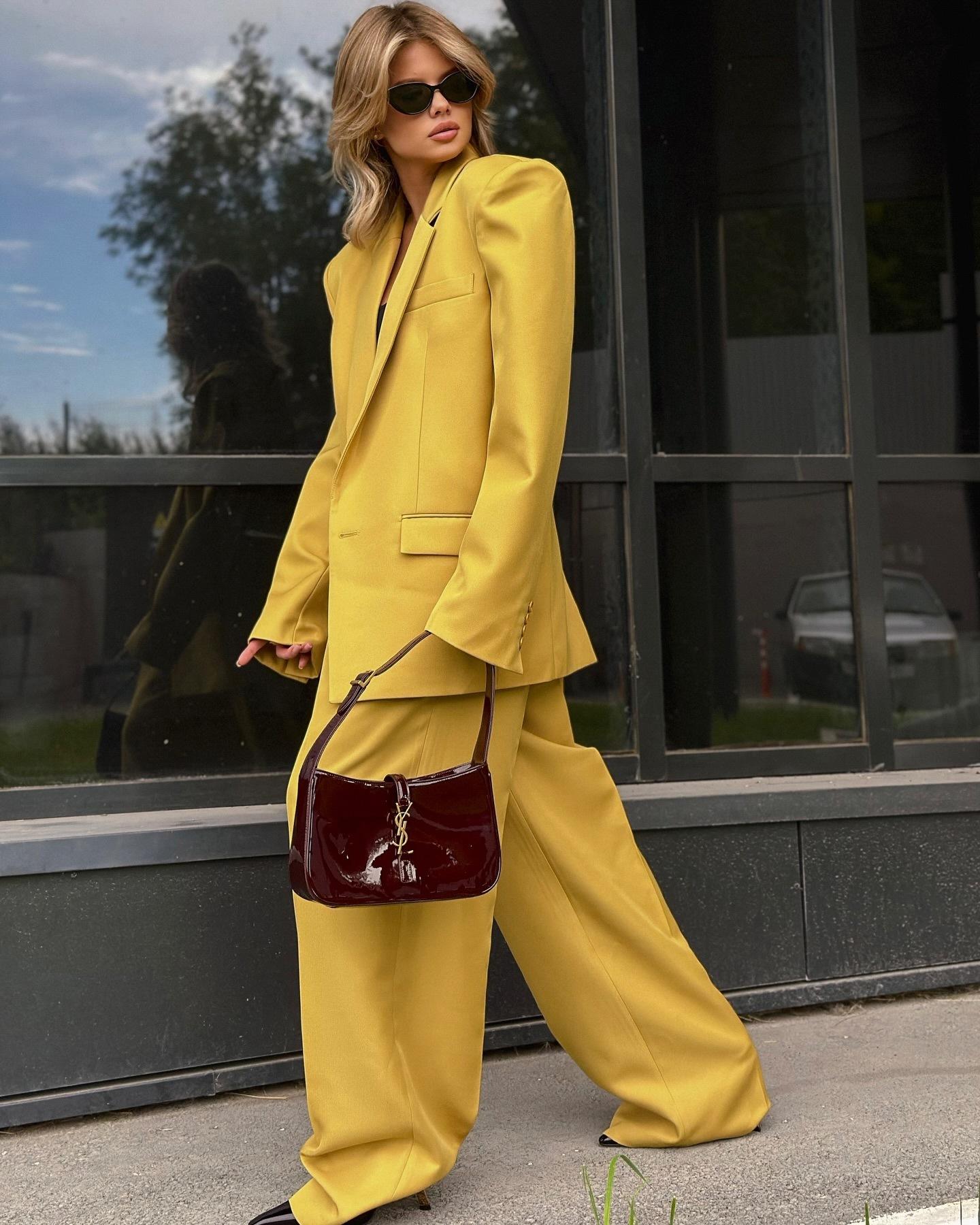 Traje Elegante de Moda Nueva Transfronteriza Europea y Americana para Mujer, Traje de Pantalón Casual Largo Recto para Mujer, Conjunto de Dos Piezas para Mujer