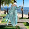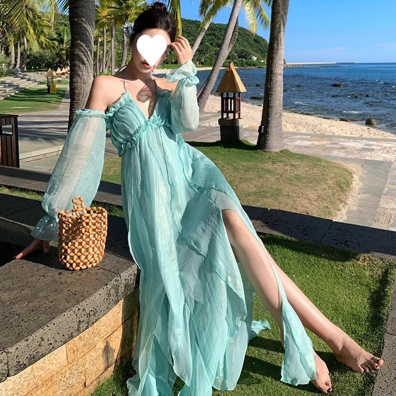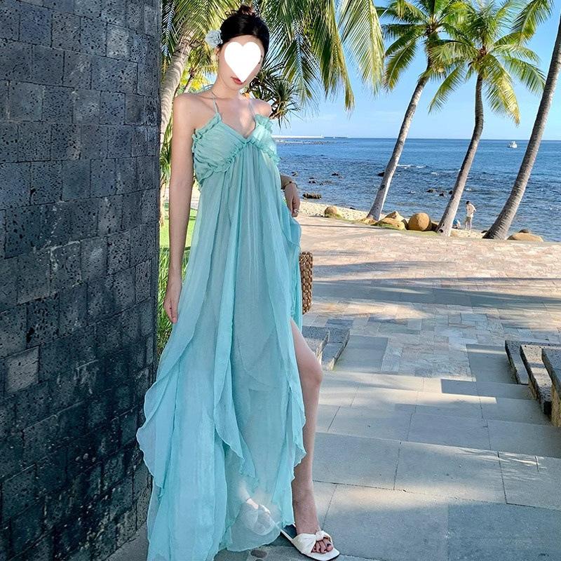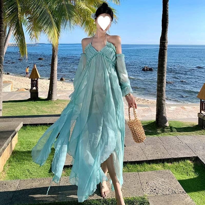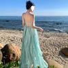 Vestido largo de verano para mujer, estilo puro y sexy, temperamento halter sin espalda grande, estilo vacacional junto al mar