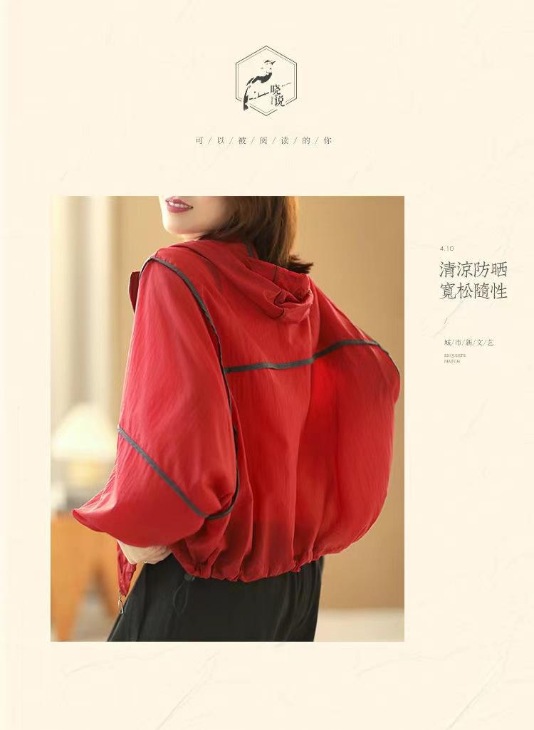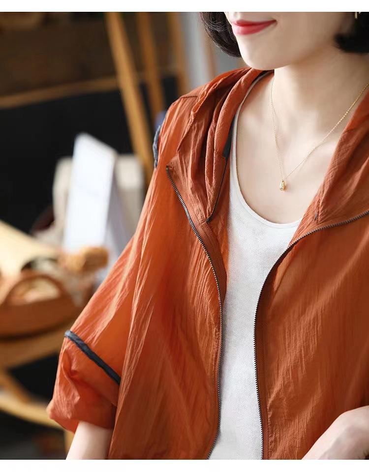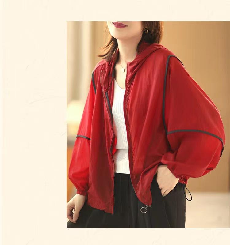 Ropa de protección solar Ligera Cómoda Color de contraste con capucha Holgada Abrigo corto Ropa de protección solar para mujer Delgada 2023 Primavera/Verano Nuevo Top
