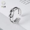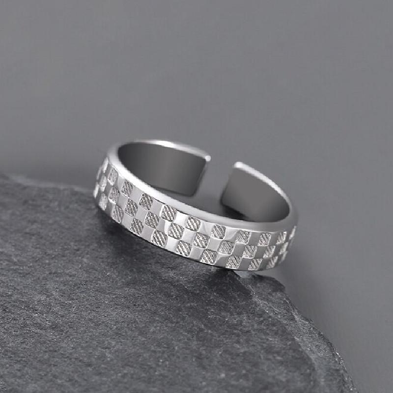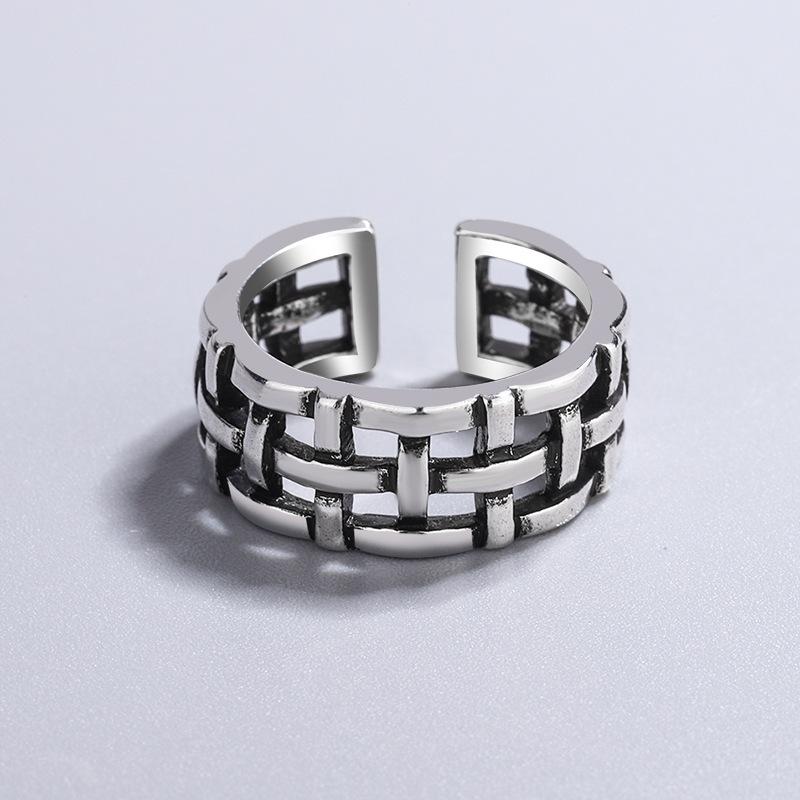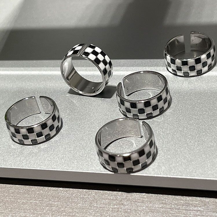 Versión coreana de anillo de personaje japonés tejido a cuadros retro blanco y negro, moda para mujer, seis juegos de anillos de temperamento simple con personalidad de moda