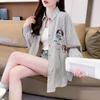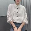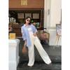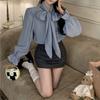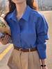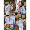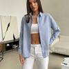 2025 Estilo de Verano Camisa Holgada de Manga Larga Diseño Nicho Top Rayas Azules Camisa para Mujer Estilo Coreano