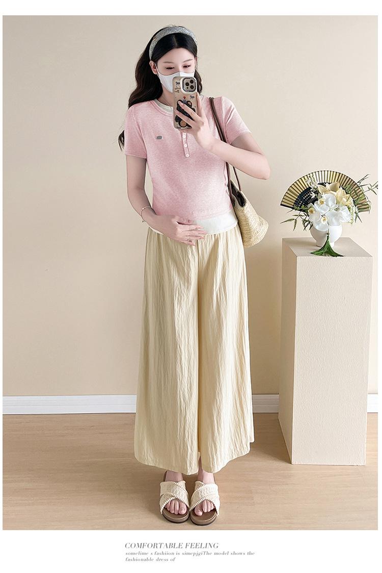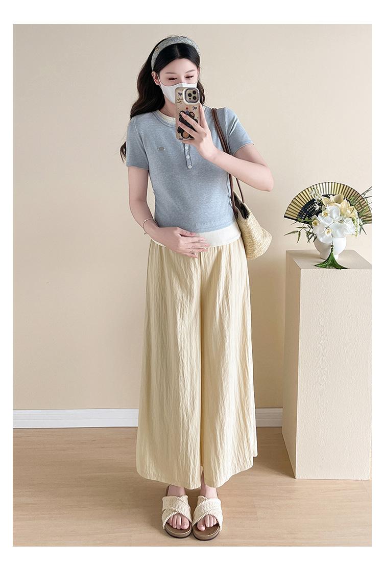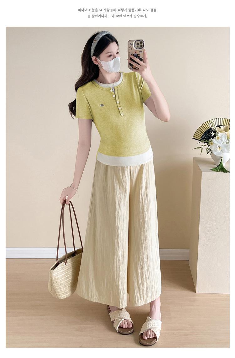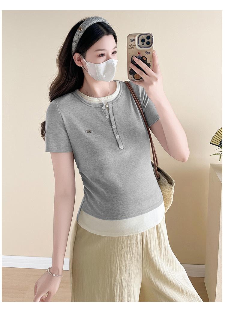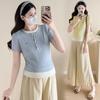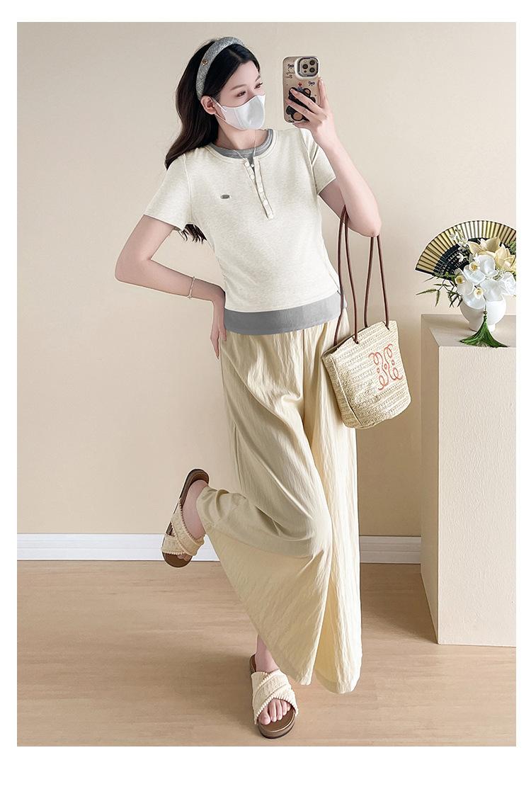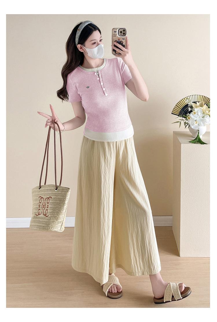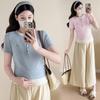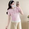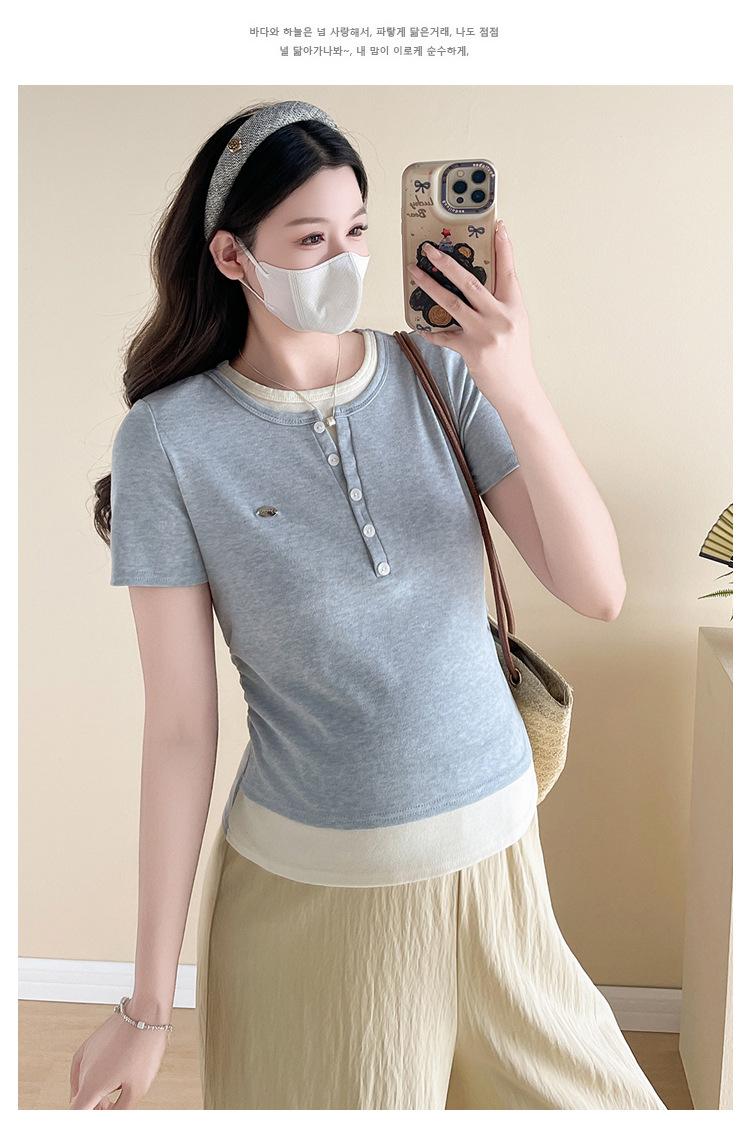 Ropa de Maternidad 2025 Verano Nuevo Estilo Coreano Moda Casual Sencillo Falso Dos Piezas Empalmado Camiseta de Manga Corta Top de Maternidad