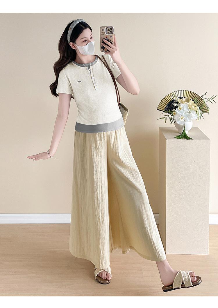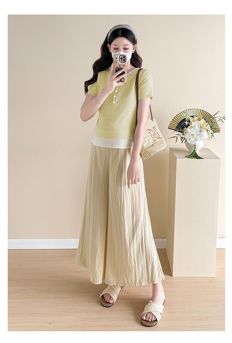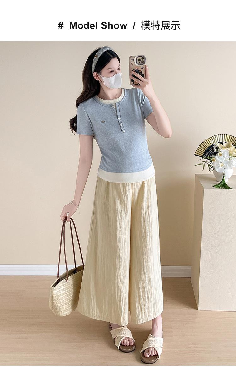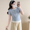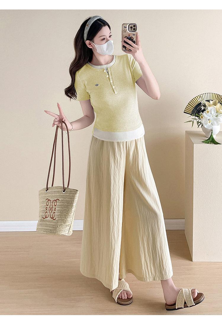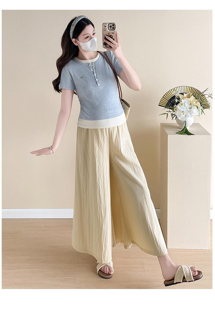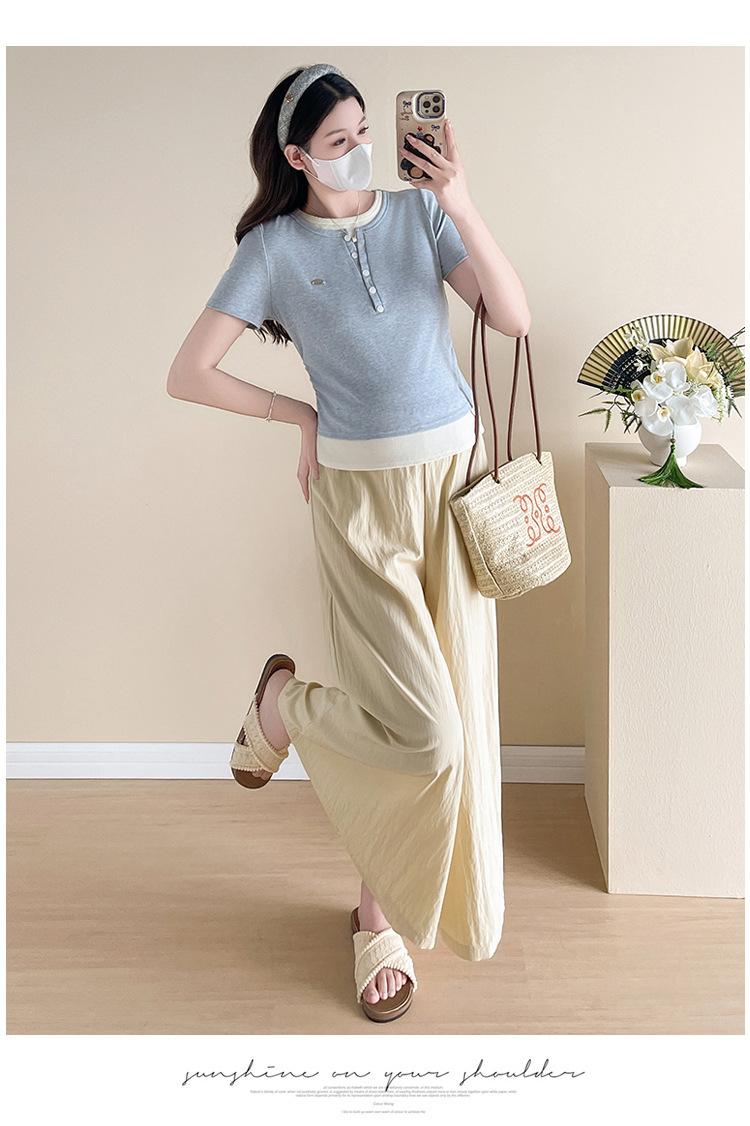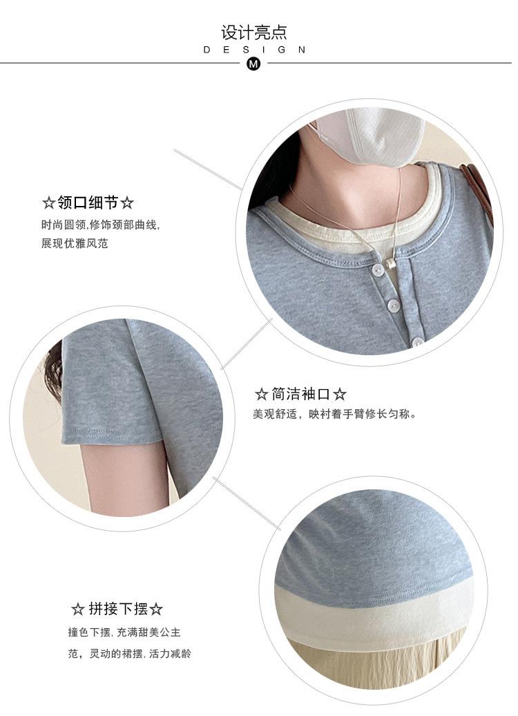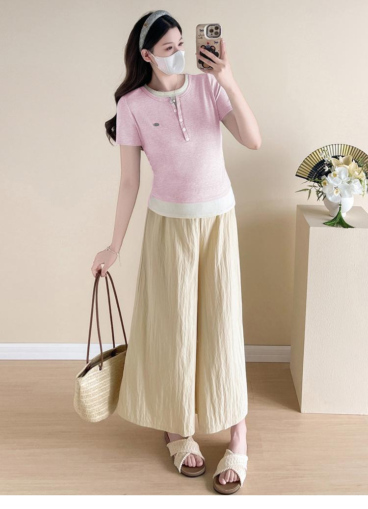 Ropa de Maternidad 2025 Verano Nuevo Estilo Coreano Moda Casual Sencillo Falso Dos Piezas Empalmado Camiseta de Manga Corta Top de Maternidad