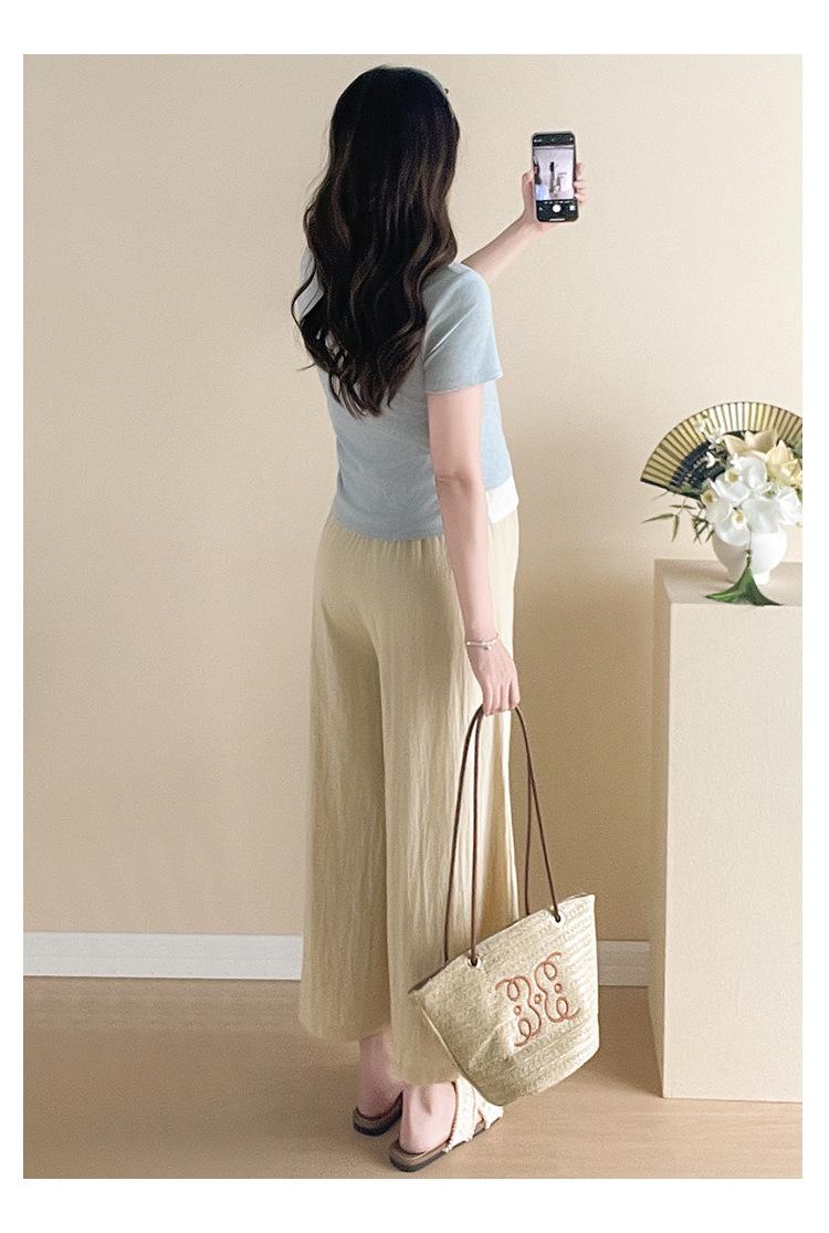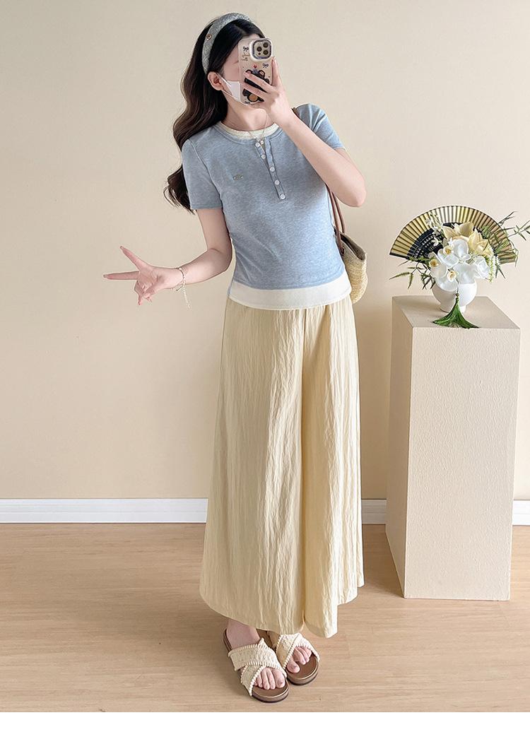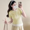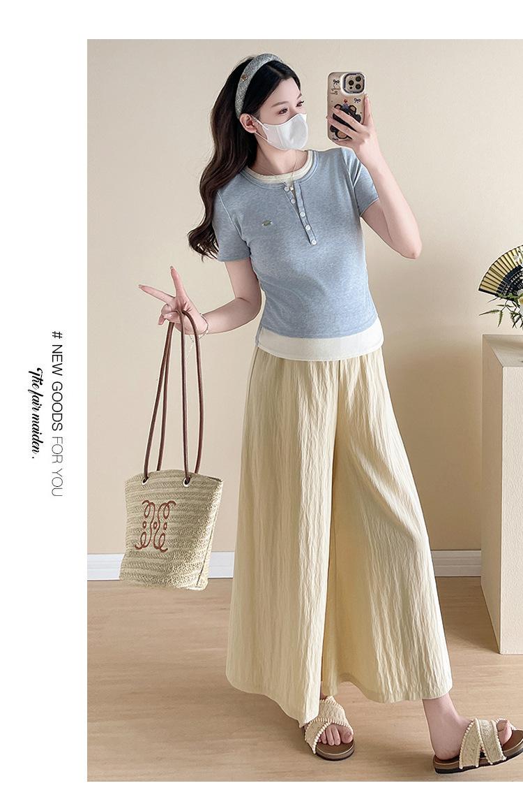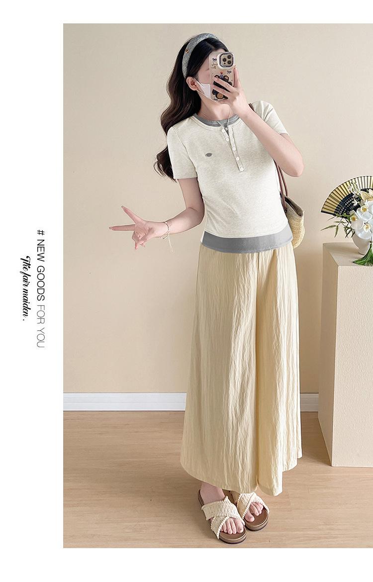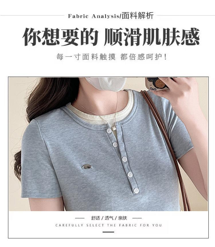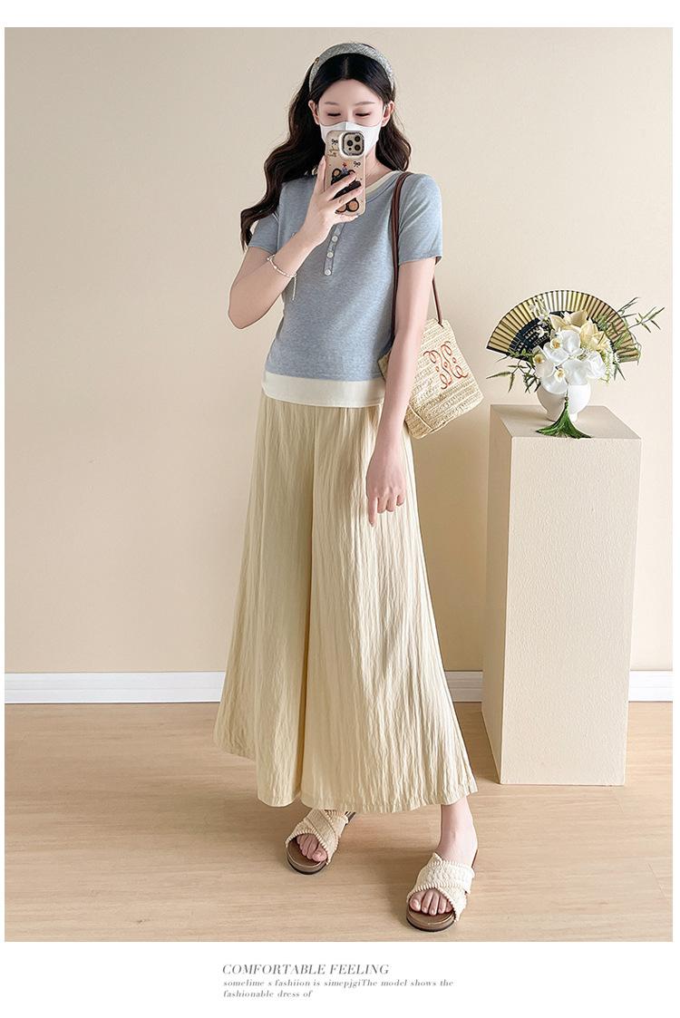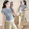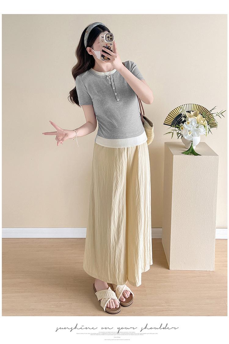 Ropa de Maternidad 2025 Verano Nuevo Estilo Coreano Moda Casual Sencillo Falso Dos Piezas Empalmado Camiseta de Manga Corta Top de Maternidad