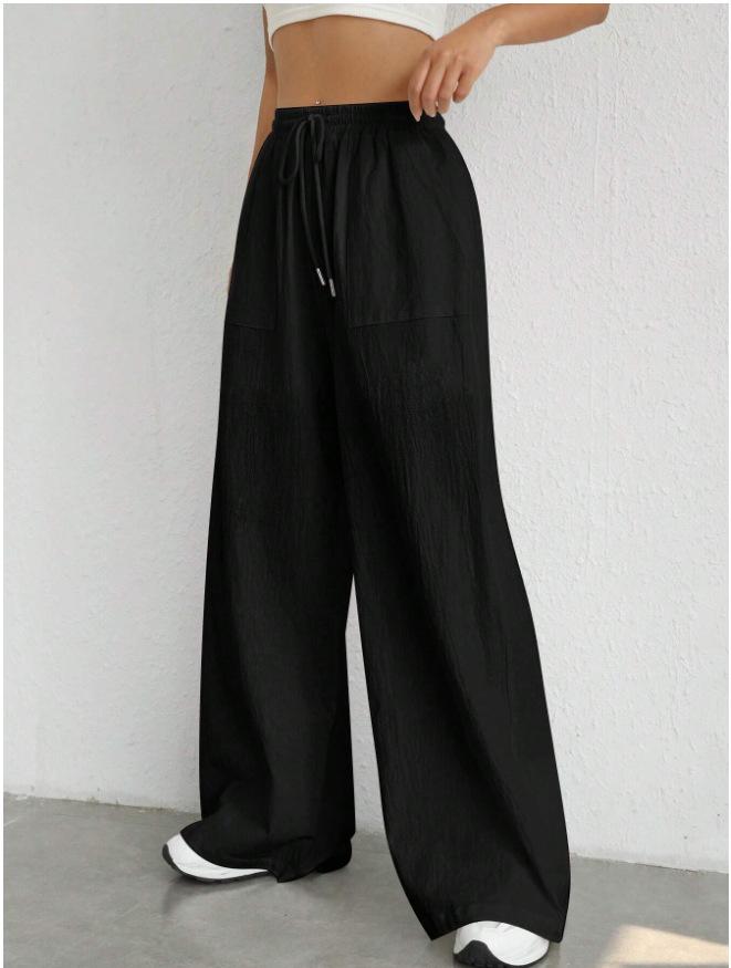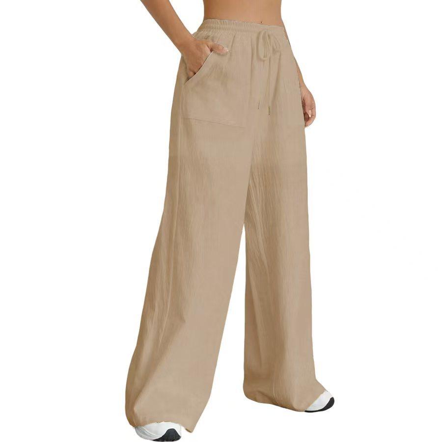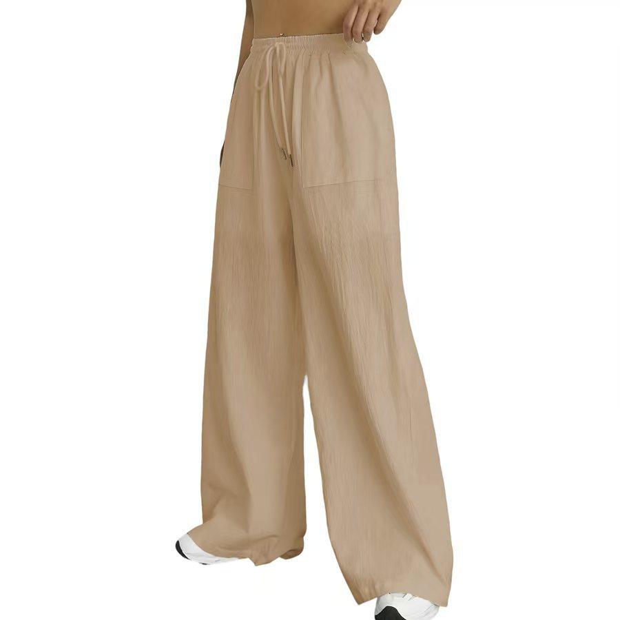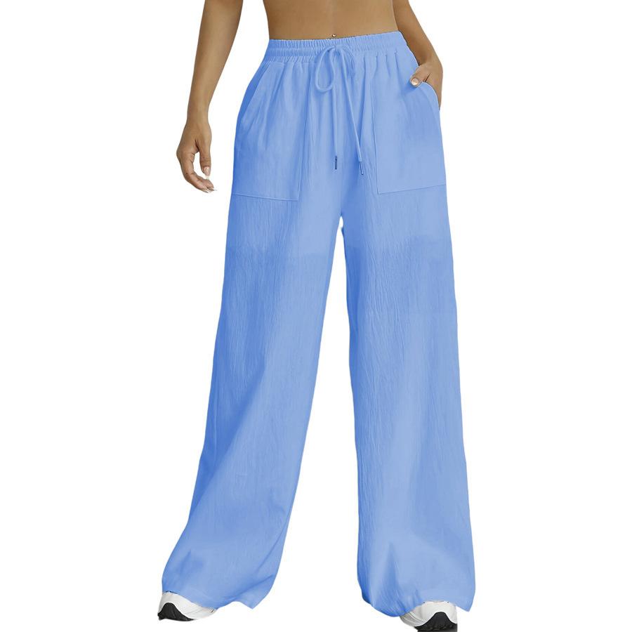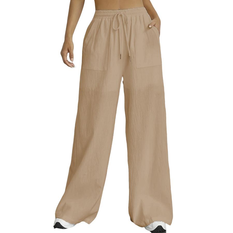 2025 Amazon Comercio Exterior Transfronterizo Europeo y Americano Nuevo para Mujer Casual Color Sólido Cordón Pierna Recta Acampanada Bolsillo Pantalones Casuales