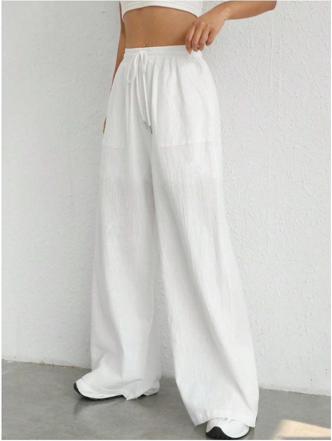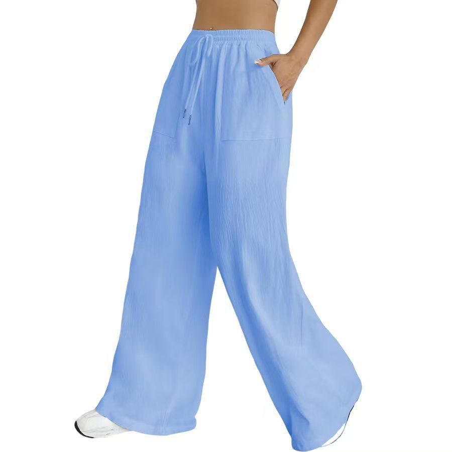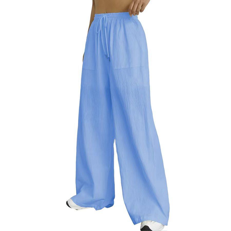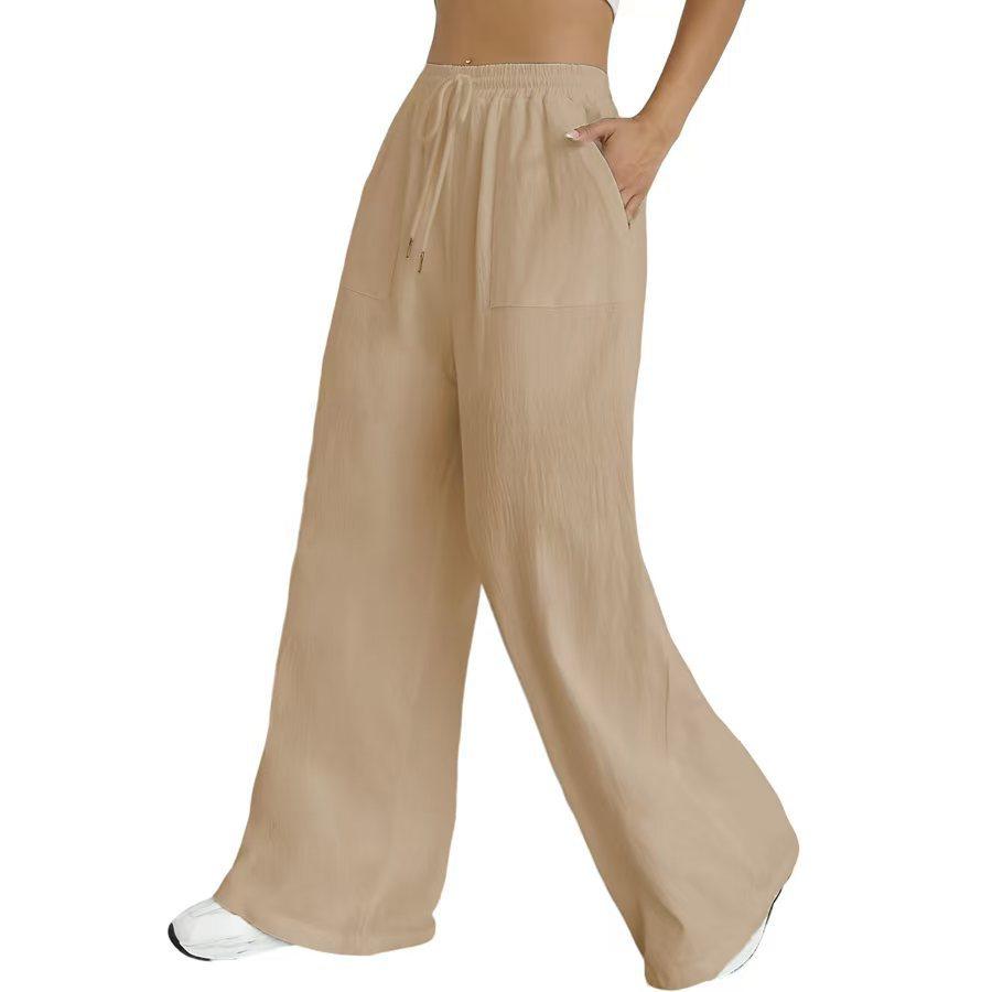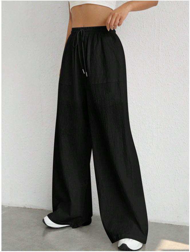 2025 Amazon Comercio Exterior Transfronterizo Europeo y Americano Nuevo para Mujer Casual Color Sólido Cordón Pierna Recta Acampanada Bolsillo Pantalones Casuales