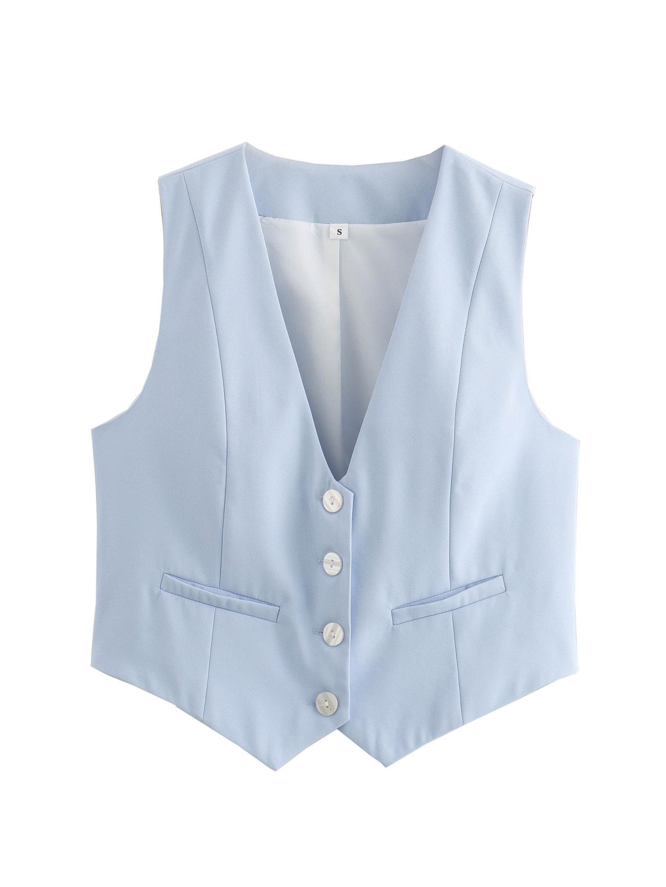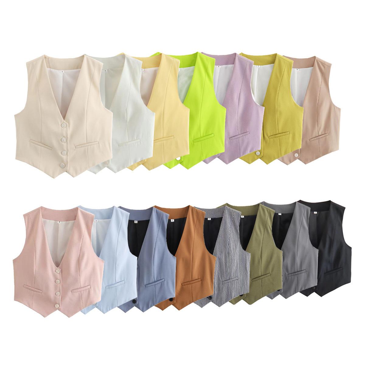 Chaleco Slim para Mujer Europeo y Americano Transfronterizo Chaleco de Verano Versátil de Moda Urbana para Mujer 2025 de Verano Sin Mangas con Botonadura Sencilla