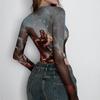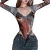 Body de Malla Estampado Retro Otoño 2025 para Mujer con Cuello de Encaje y Top Ligero de Tendencia