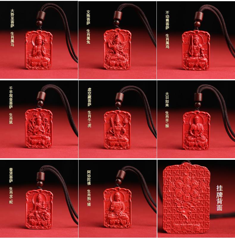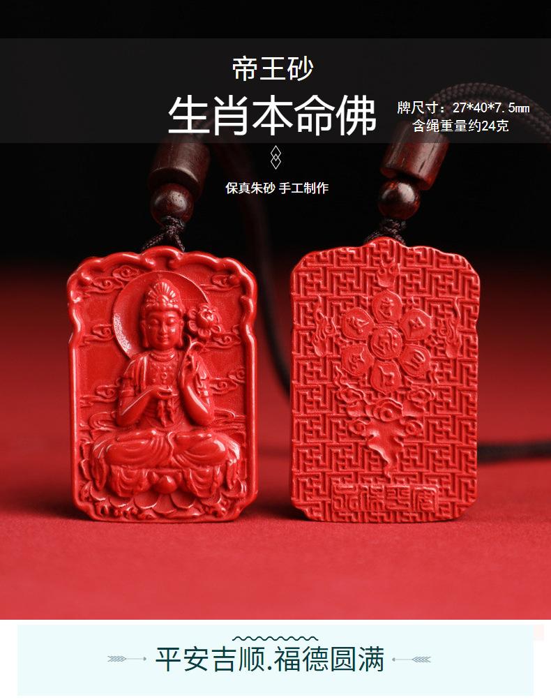 Collar de cinabrio natural de alto contenido arena de emperador Buda del nacimiento ocho dioses guardianes doce colgante del zodiaco año de nacimiento