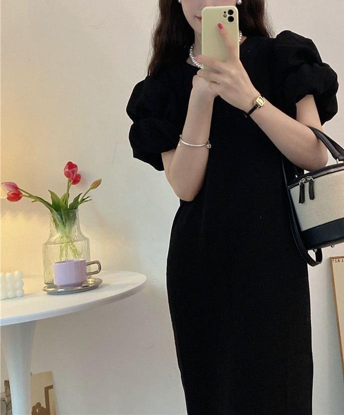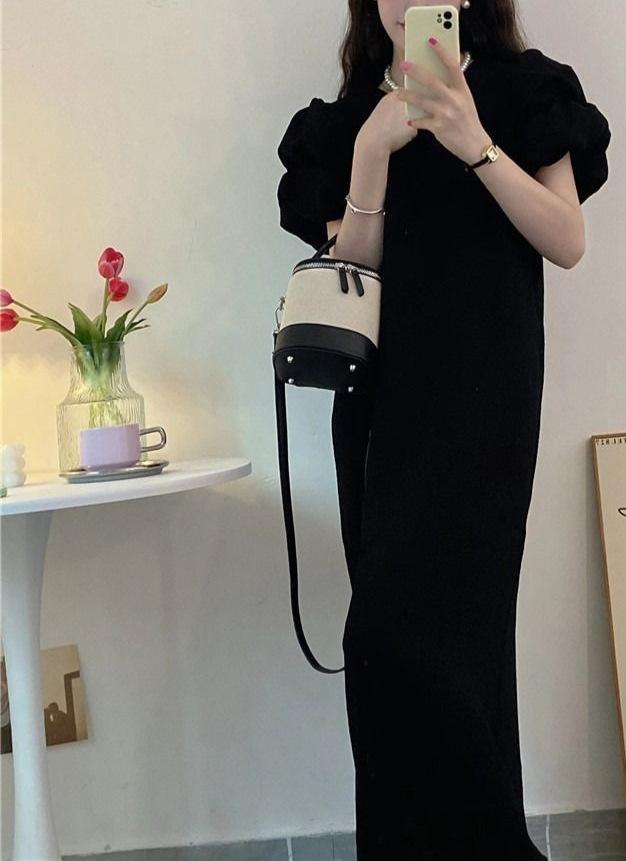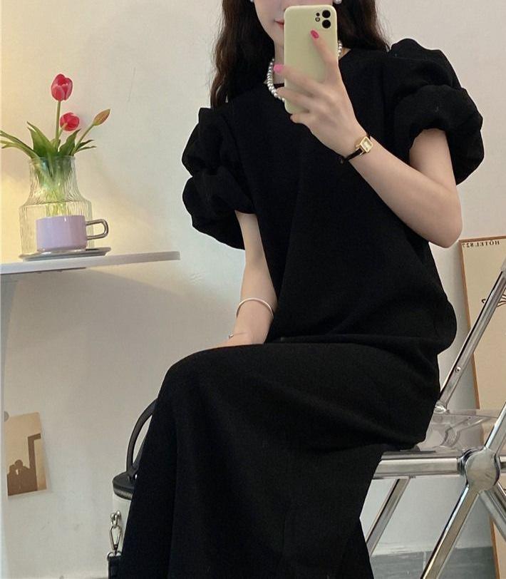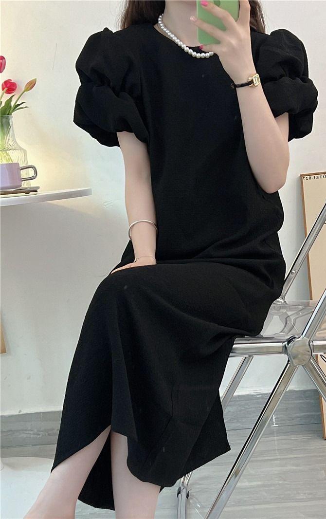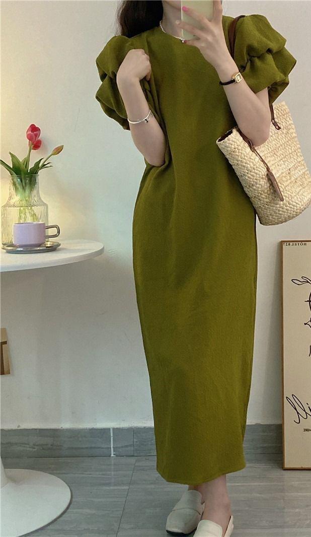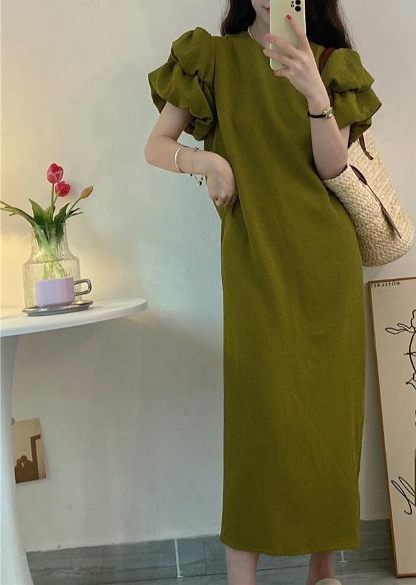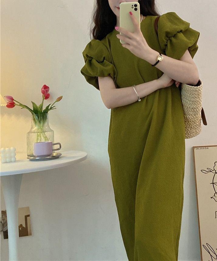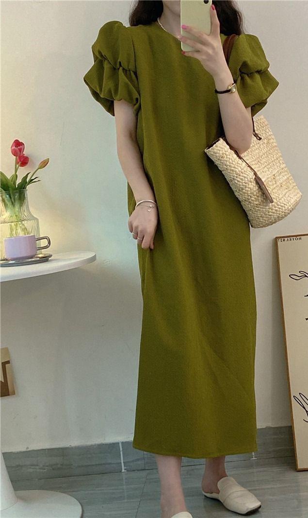 Vestido de Verano Talla Grande Diseño Estilo Coreano Manga Abullonada para Mujer Chica Gordita Cubre Carne Delgada Falda Larga 2025 Nuevo