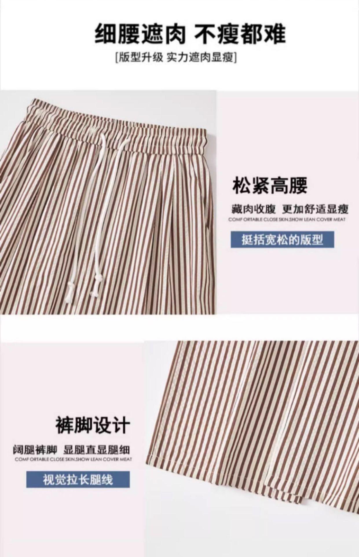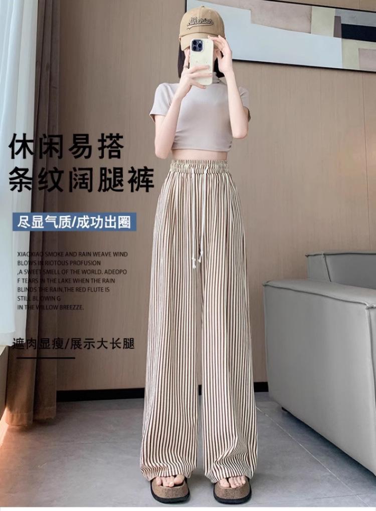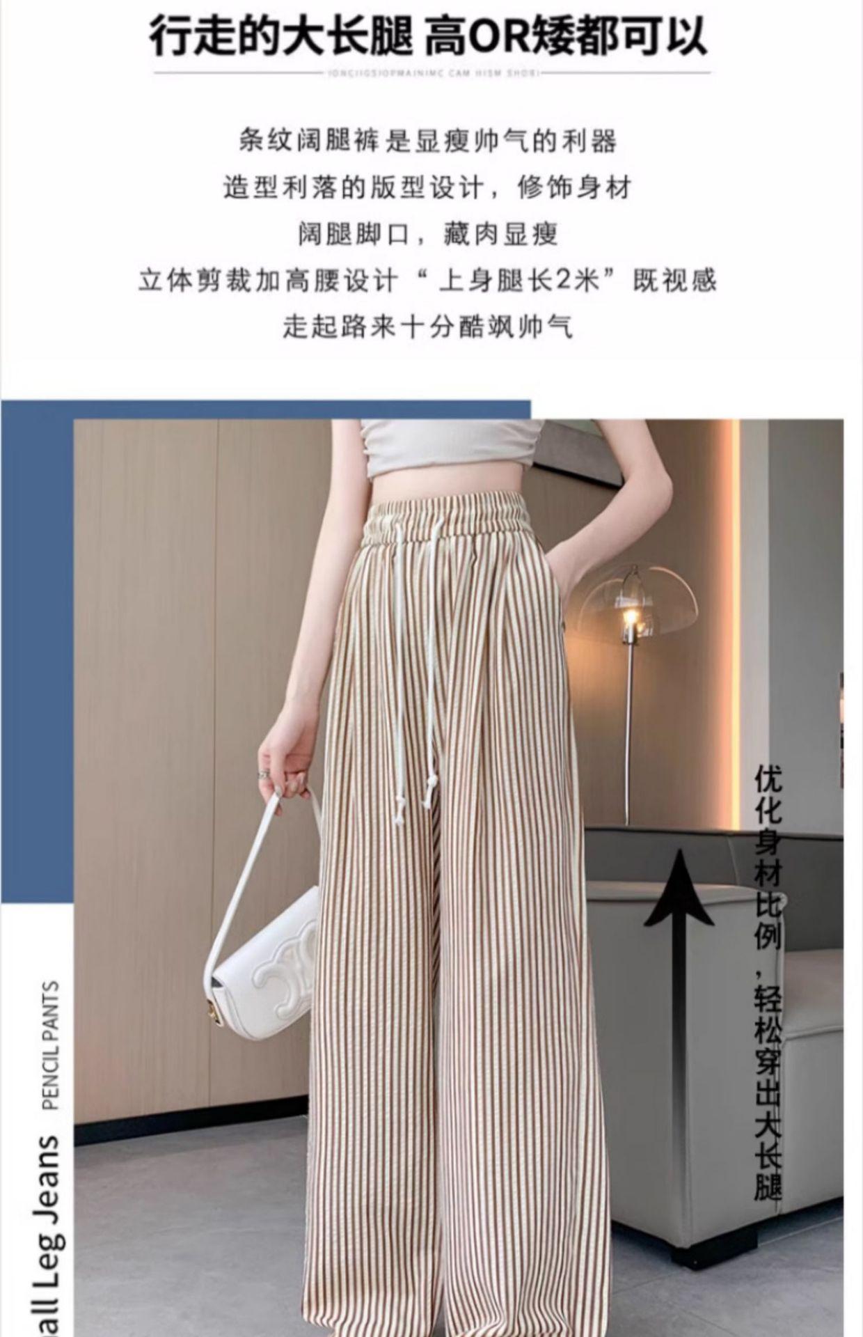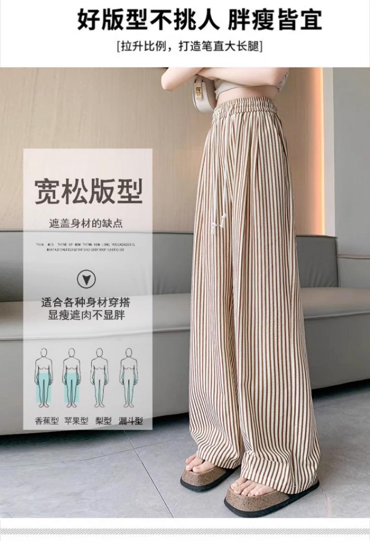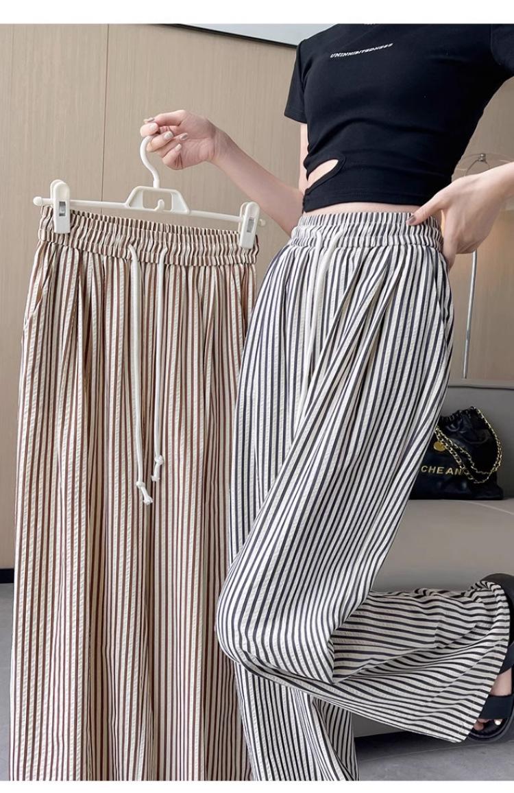 Pantalones de Pierna Ancha de Seda Helada para Niñas en Verano 2025 Pantalones Rectos Adelgazantes de Cintura Alta para Personas Pequeñas Pantalones Frescos con Protección Solar a Rayas