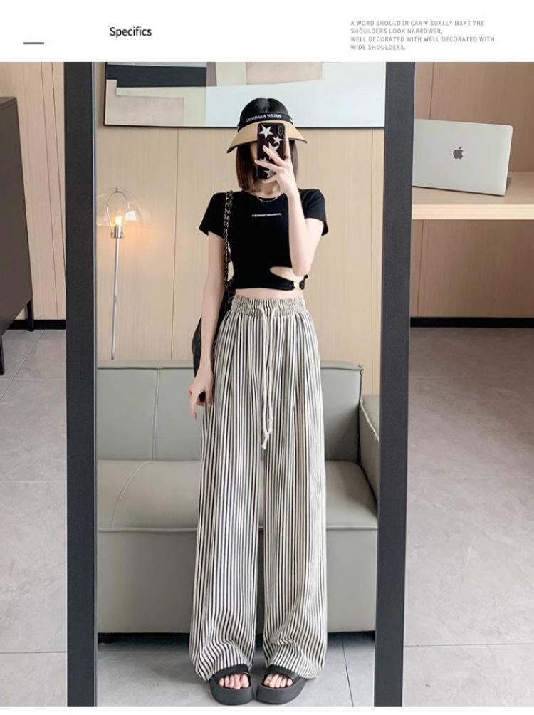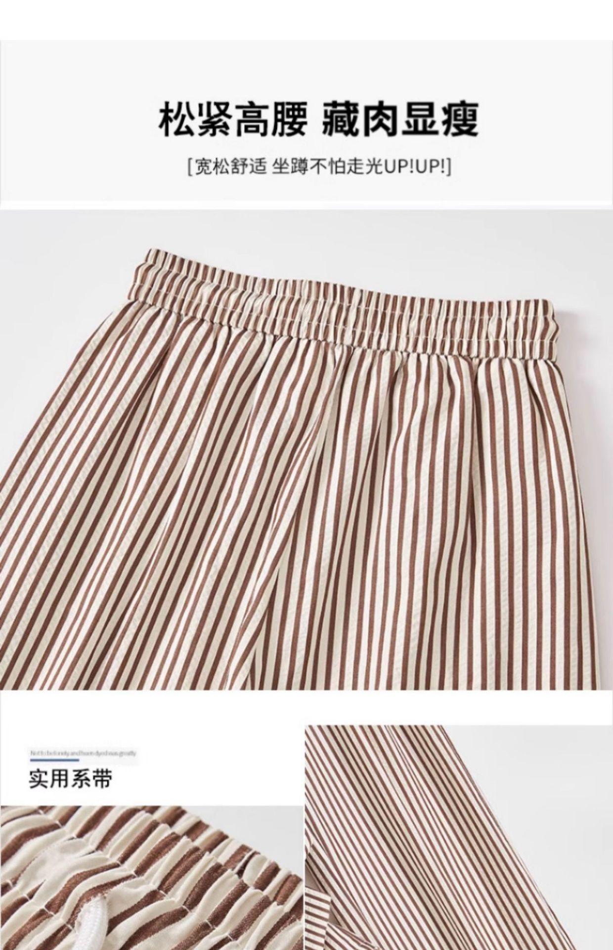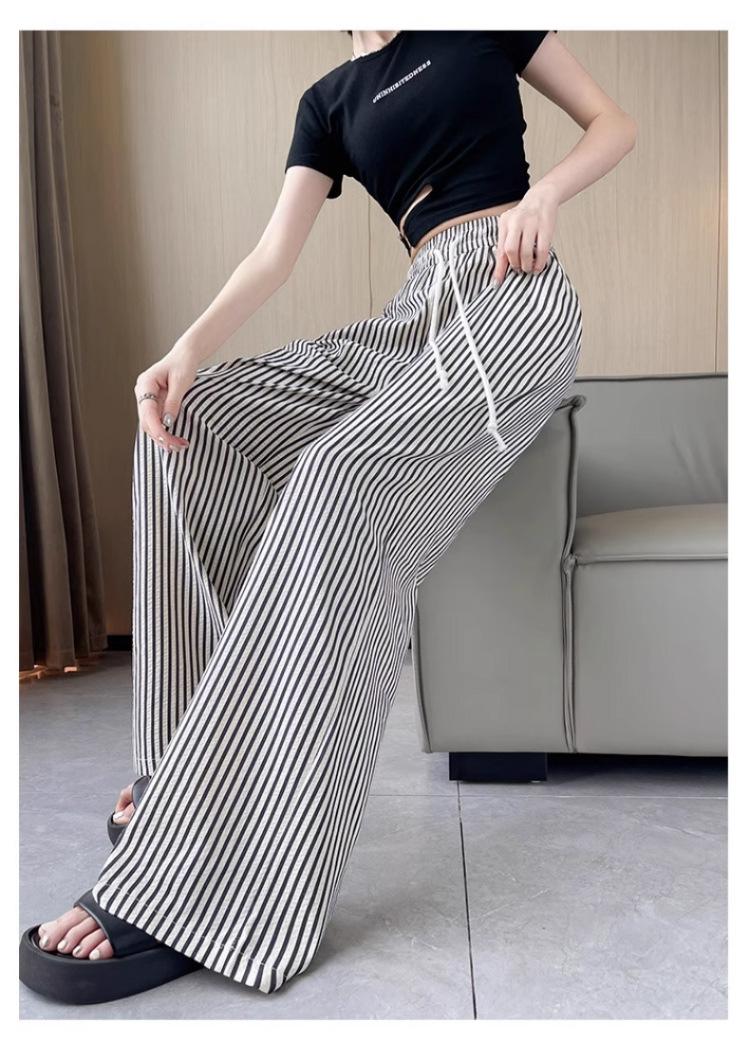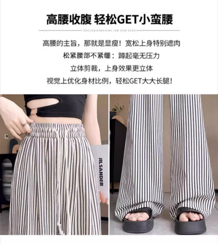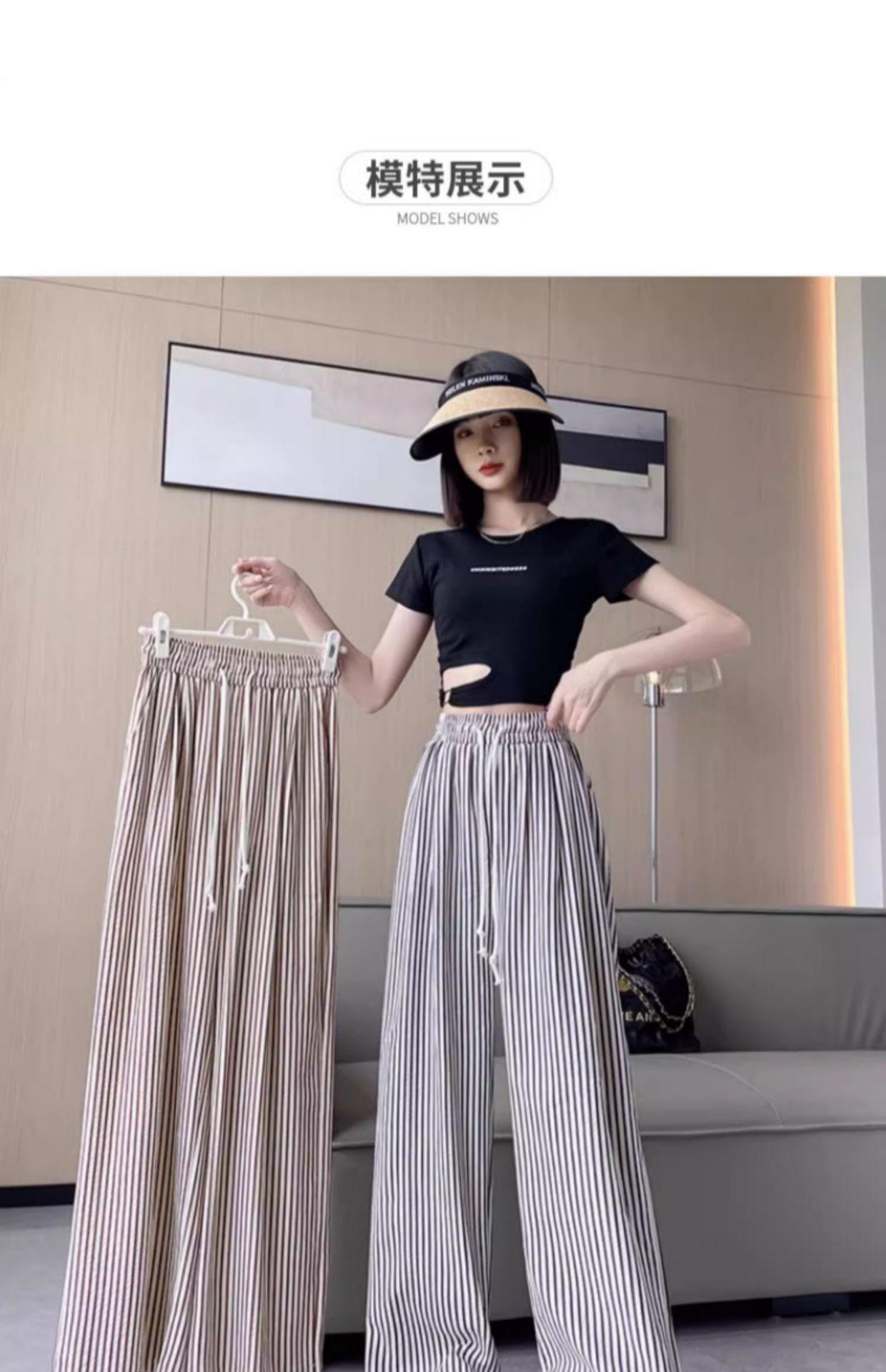 Pantalones de Pierna Ancha de Seda Helada para Niñas en Verano 2025 Pantalones Rectos Adelgazantes de Cintura Alta para Personas Pequeñas Pantalones Frescos con Protección Solar a Rayas