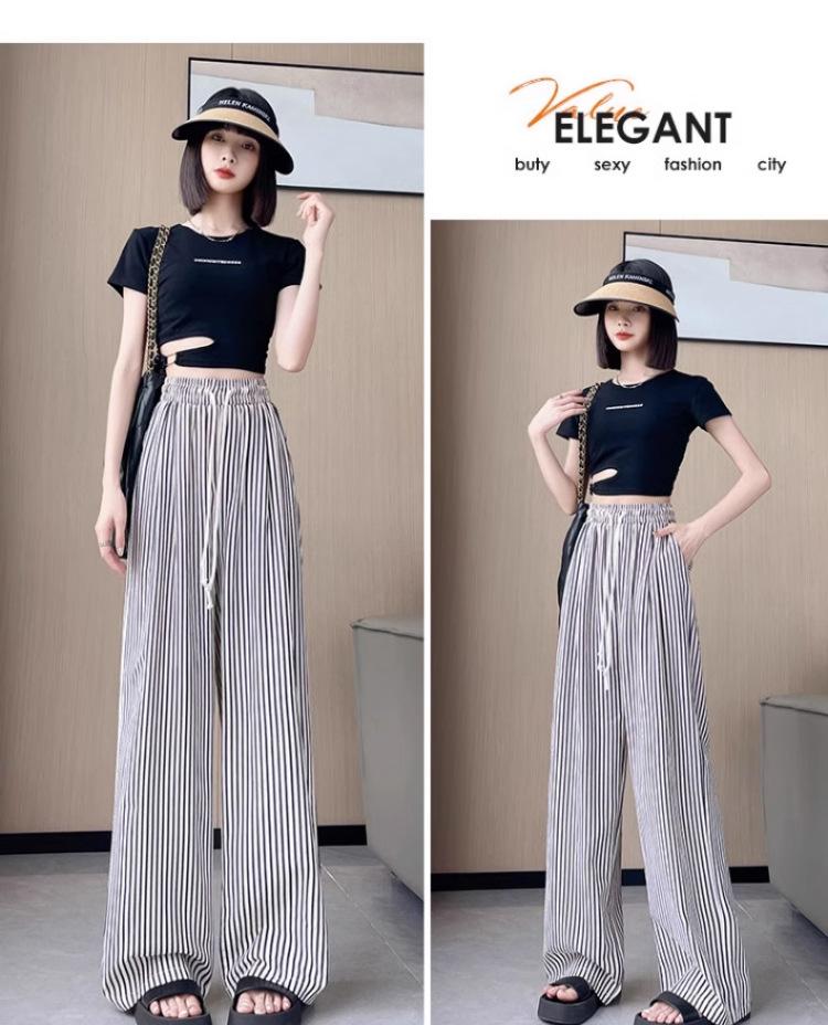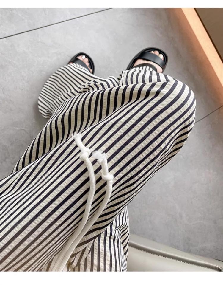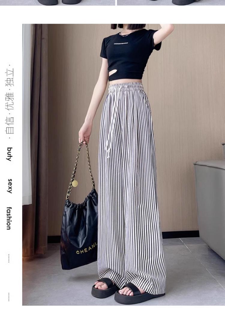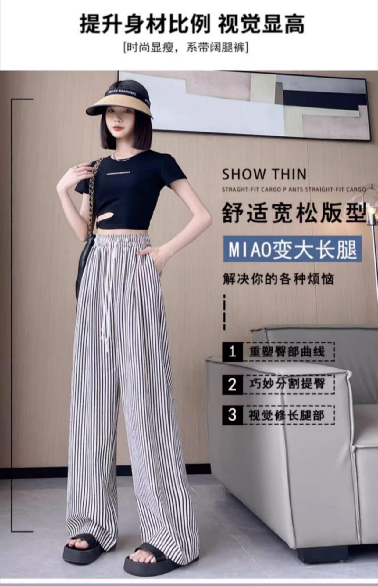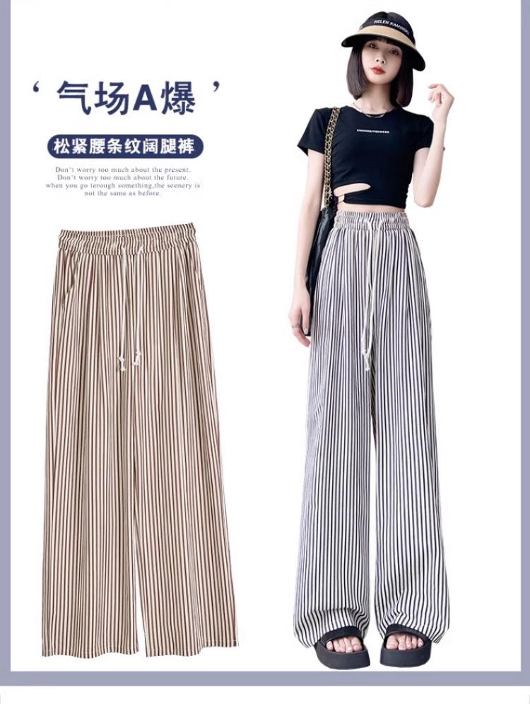 Pantalones de Pierna Ancha de Seda Helada para Niñas en Verano 2025 Pantalones Rectos Adelgazantes de Cintura Alta para Personas Pequeñas Pantalones Frescos con Protección Solar a Rayas