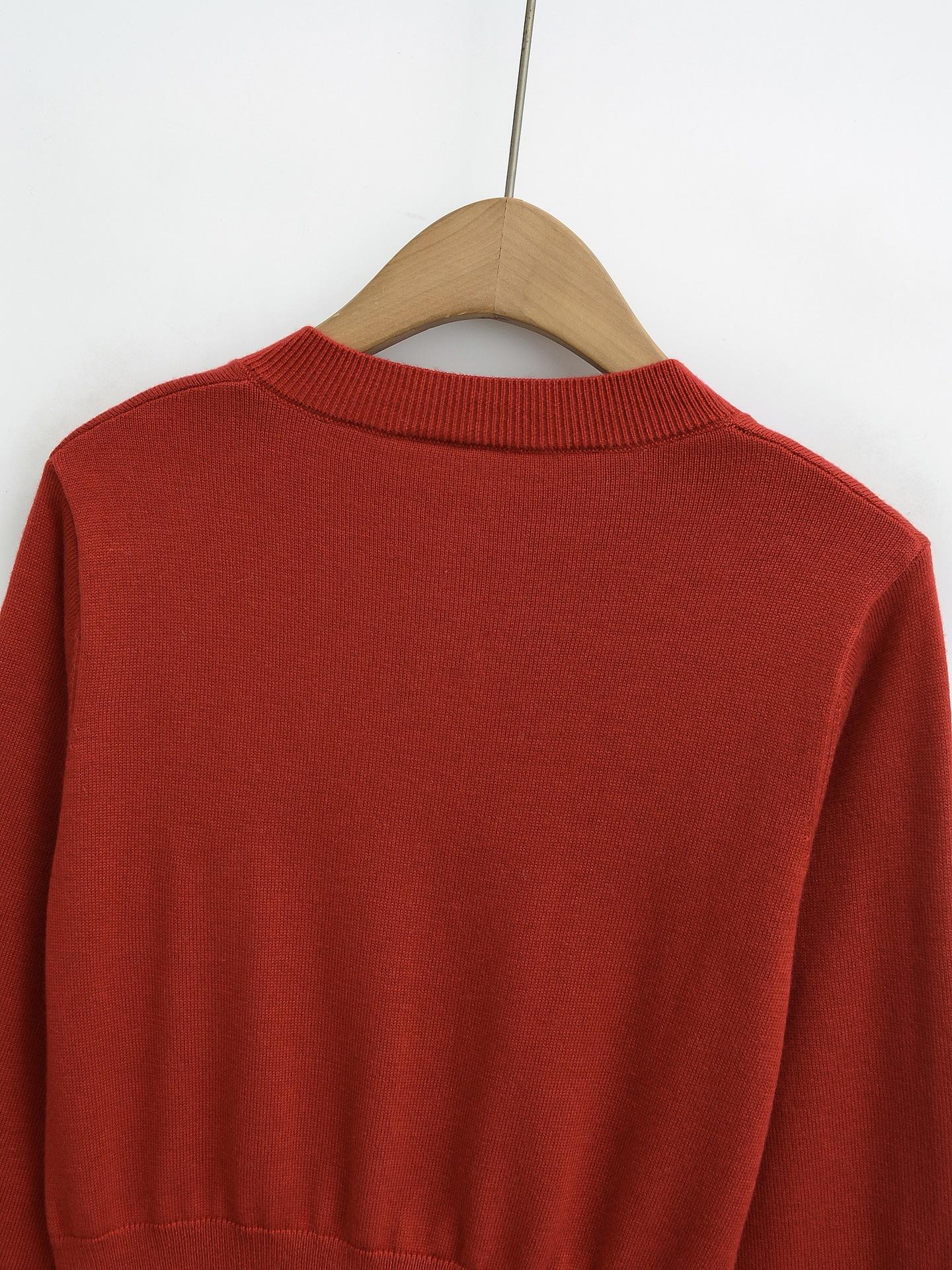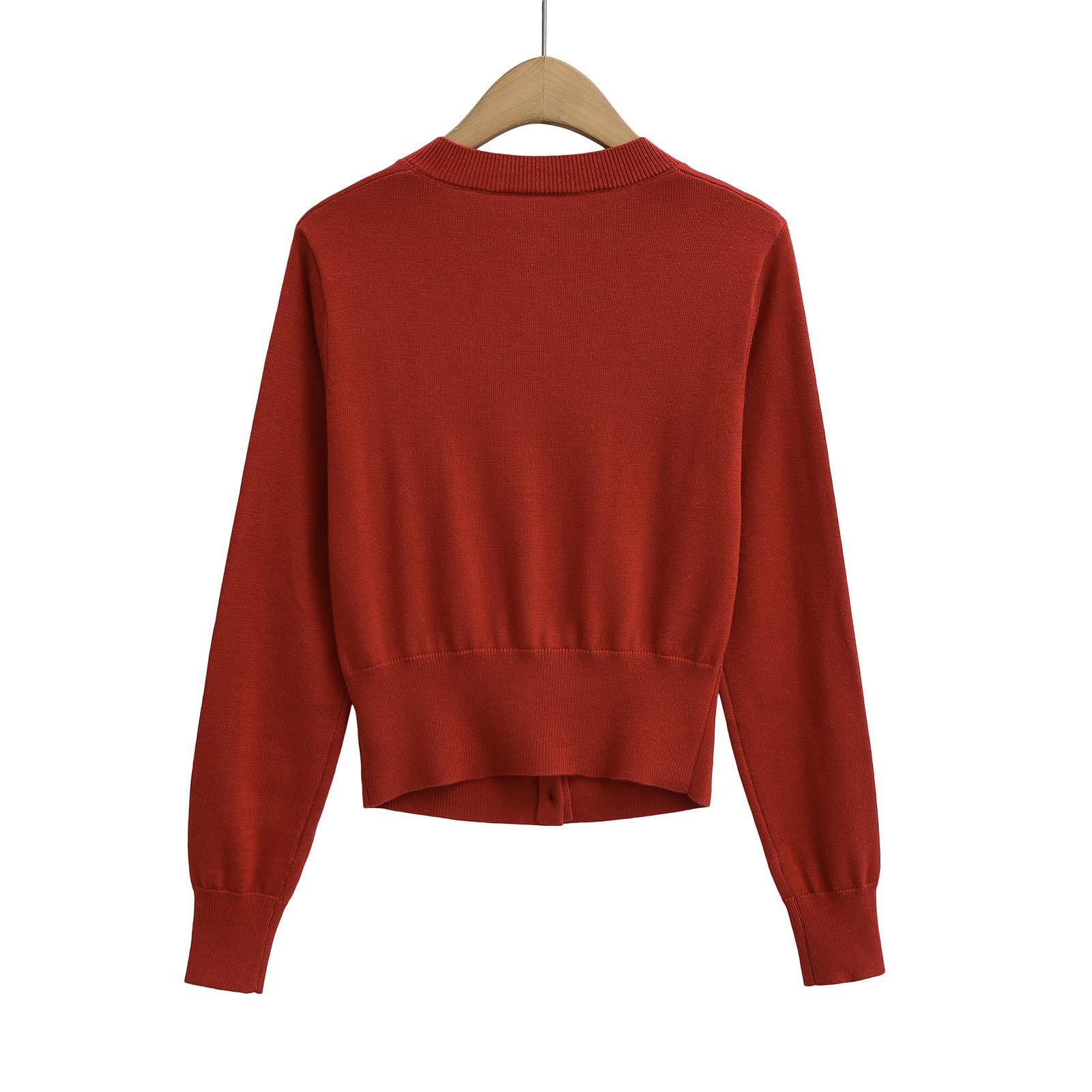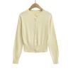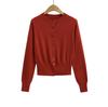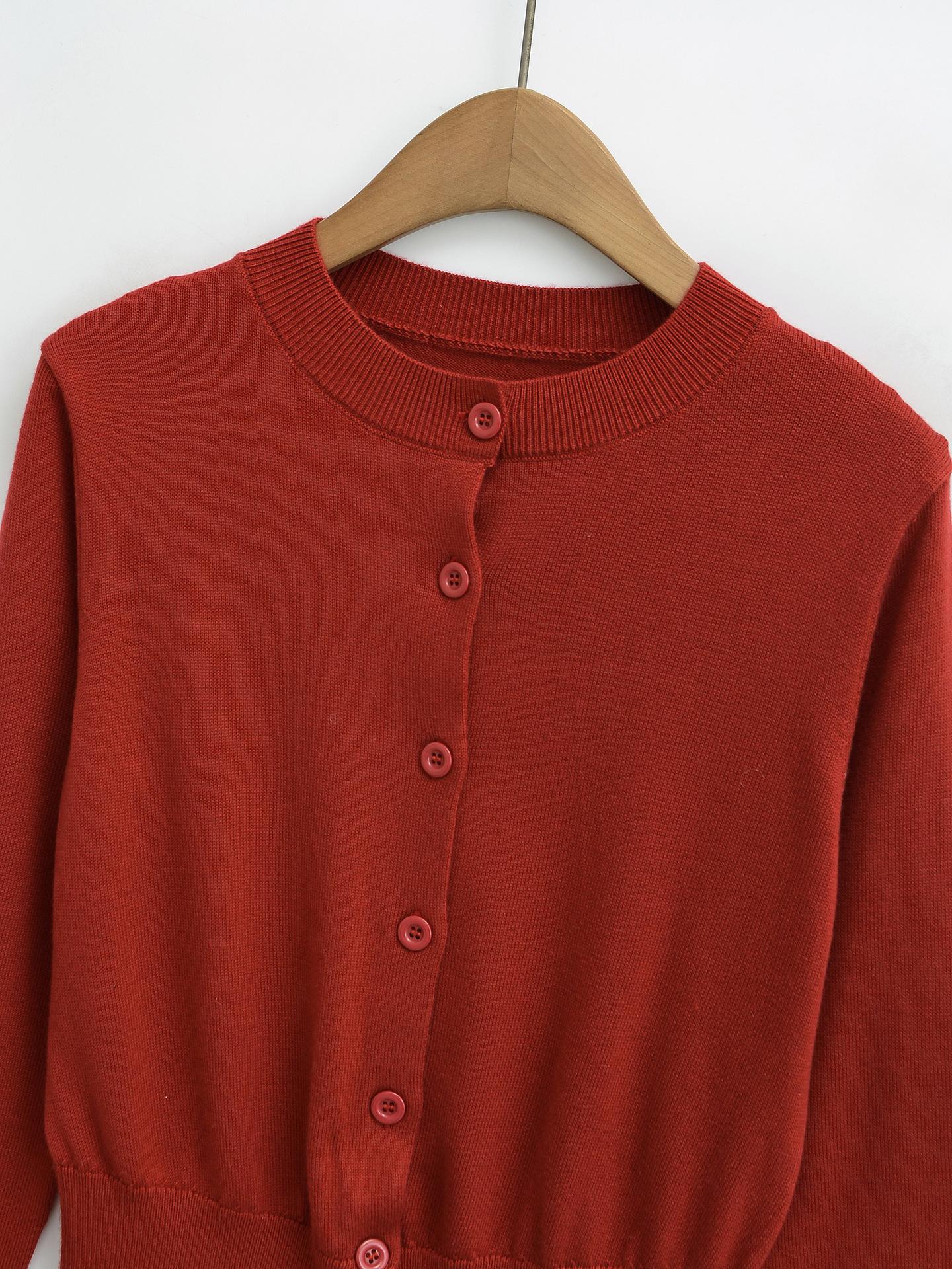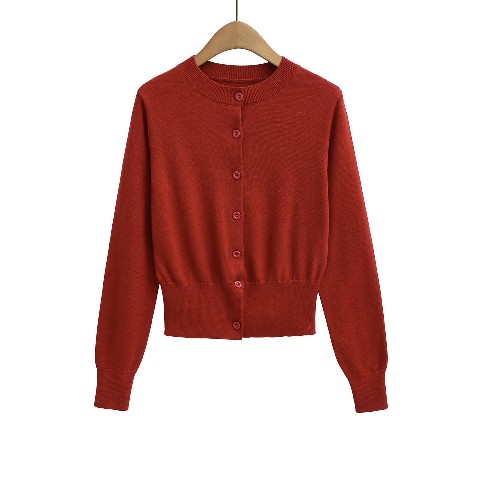Top básico europeo y americano de cuello redondo, manga larga abotonado sencillo, para mujer, abrigo adelgazante de cintura elástica, cárdigan de punto al por mayor