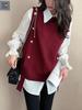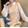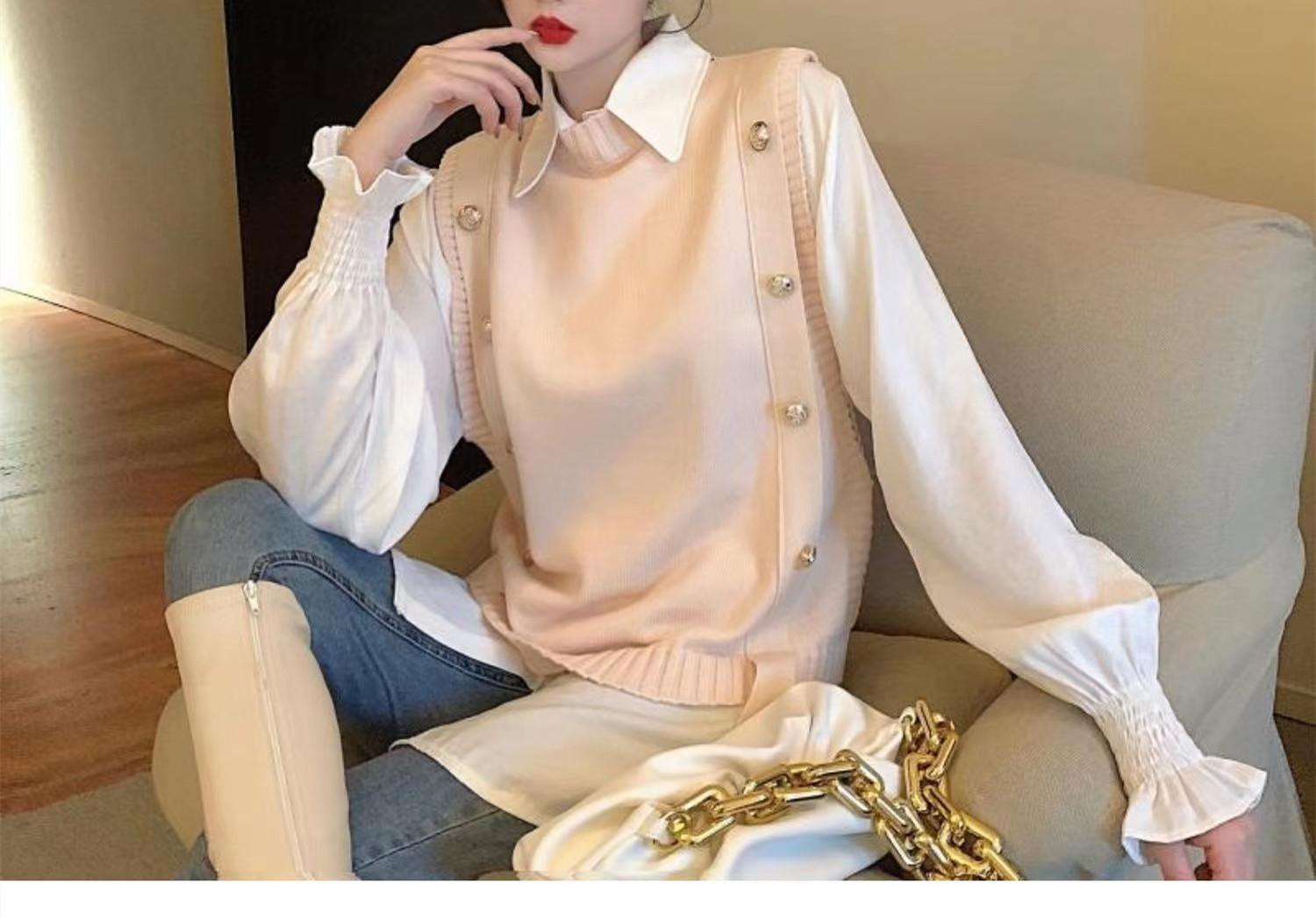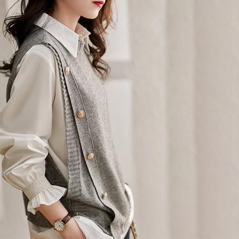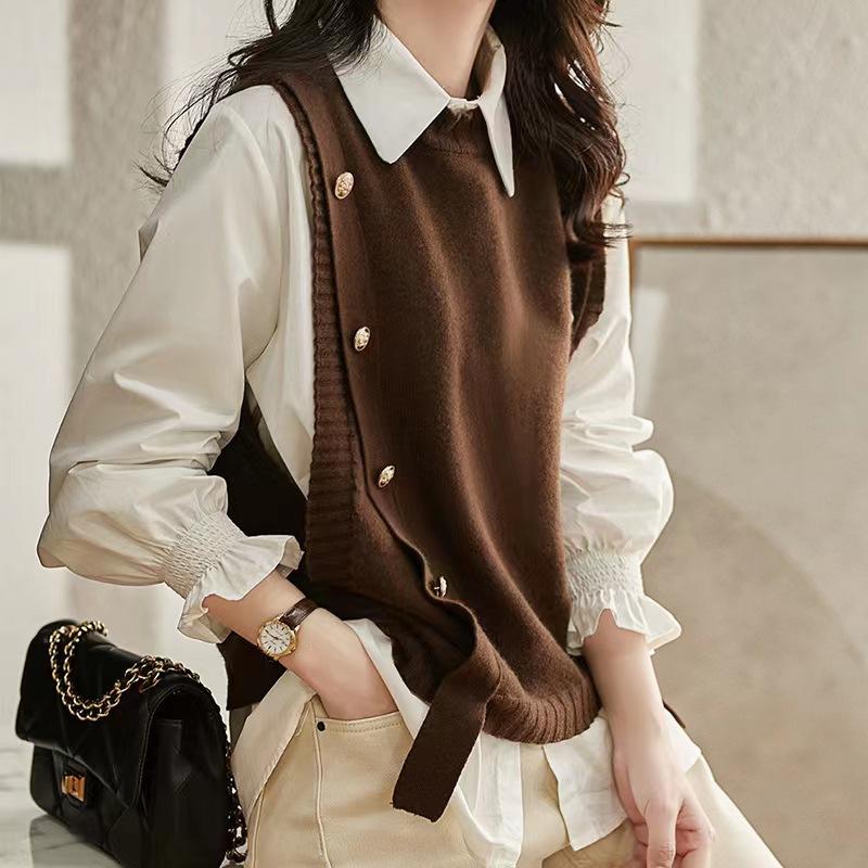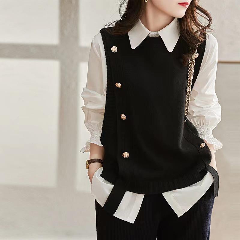 Camisa chaleco de dos piezas para mujer 2023 primavera y otoño nuevo temperamento blanco y negro reductor de edad top de punto moda traje de camisa
