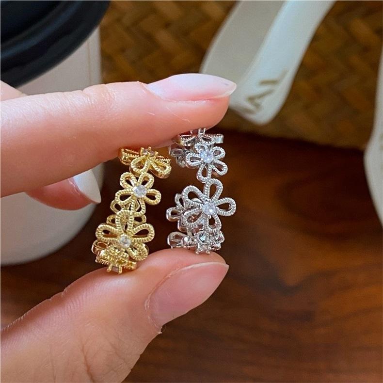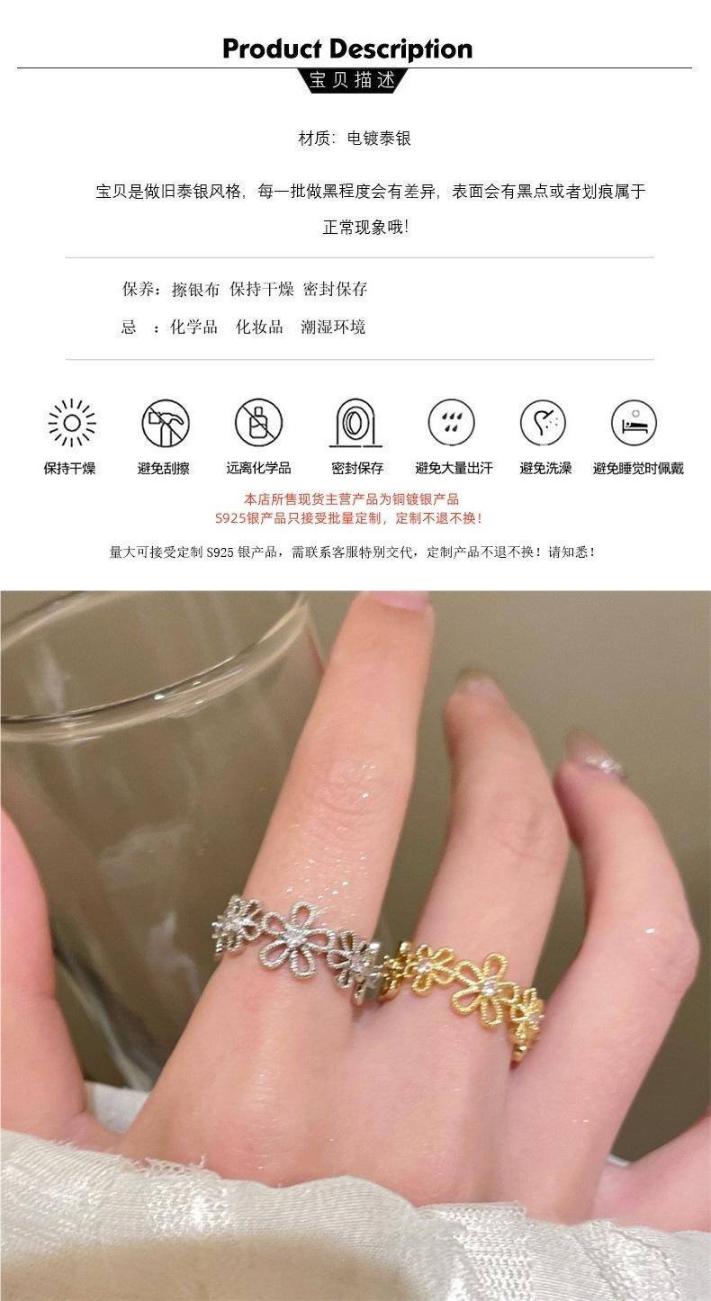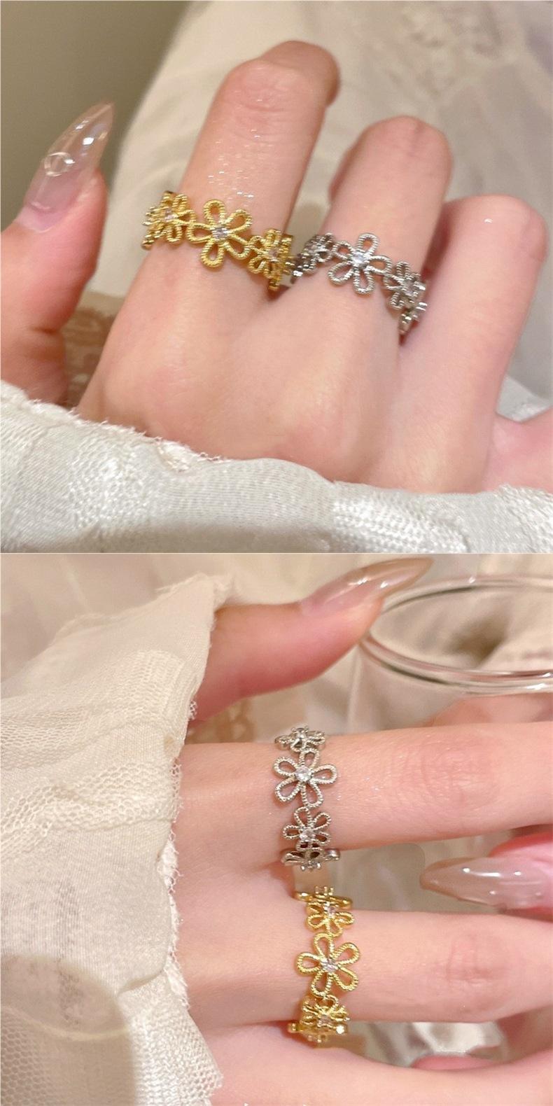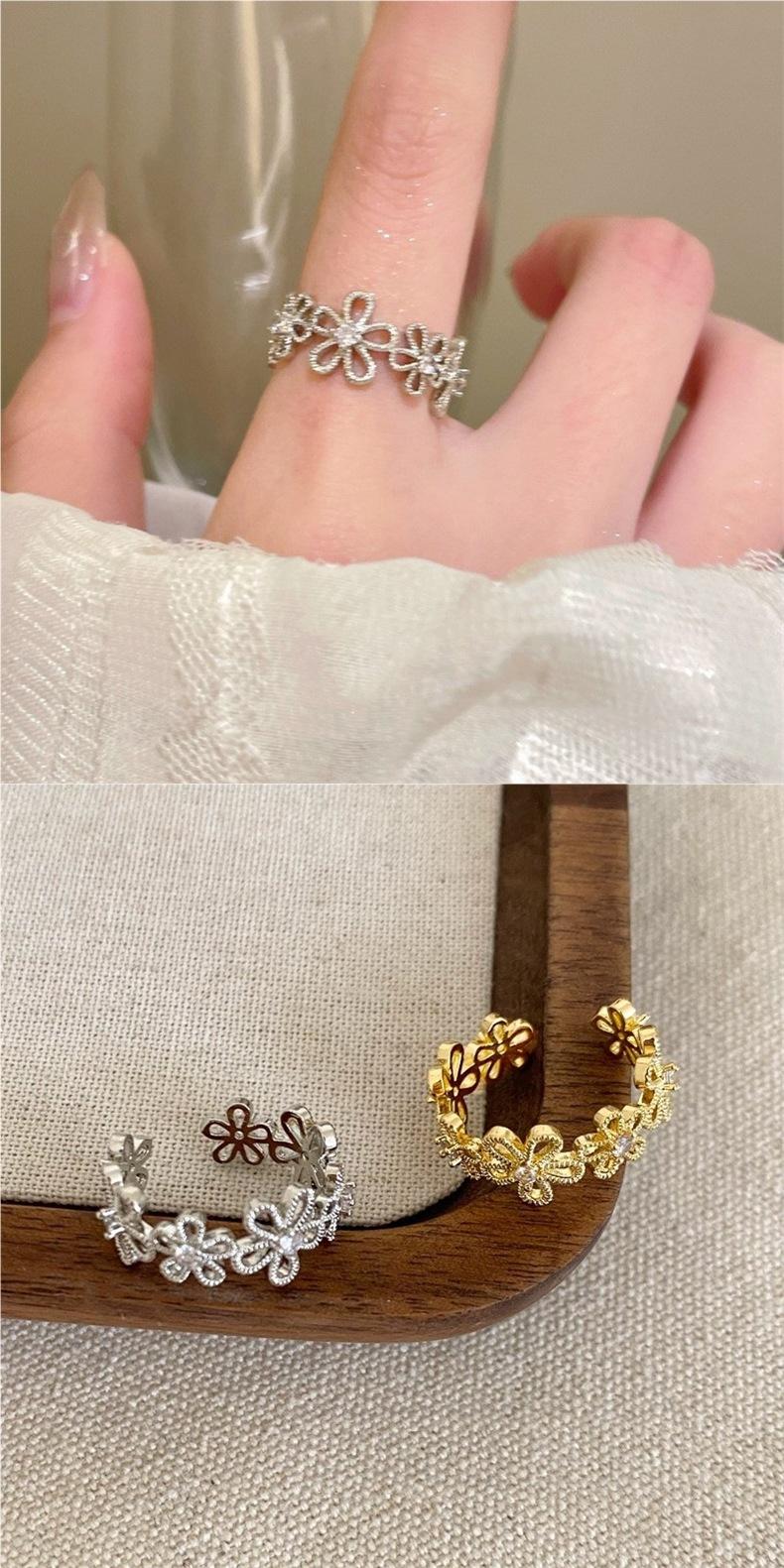 Anillo de Flor de Encaje Calado para Mujer, Anillo de Dedo Índice de Diseño Nicho Estilo Ins de Lujo Ligero, Anillo Abierto Versátil de Moda