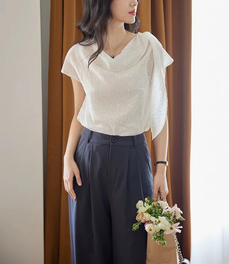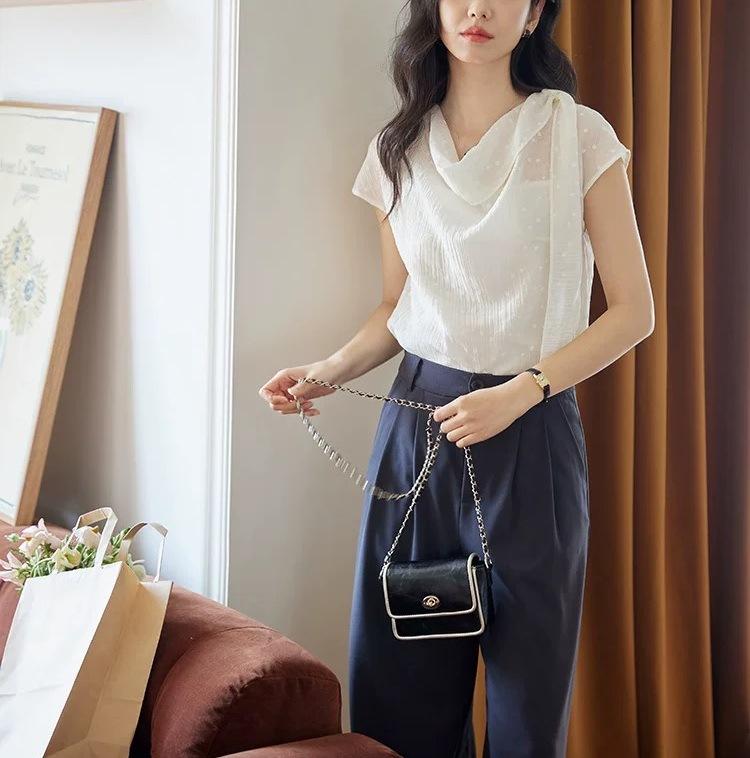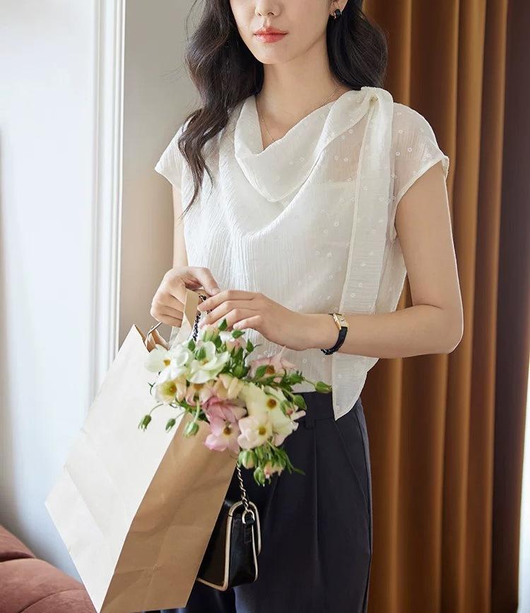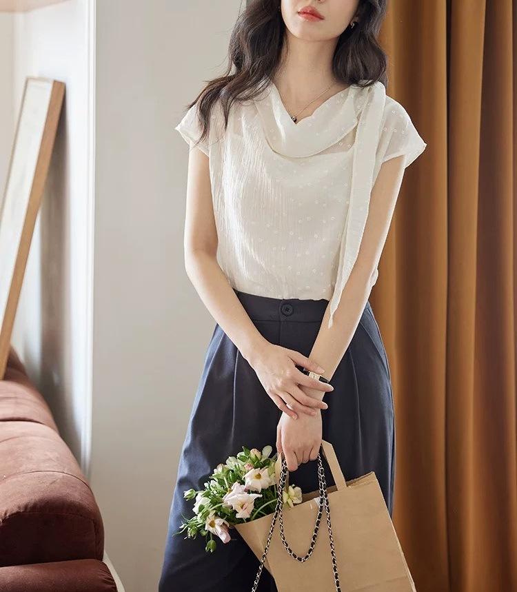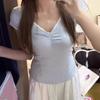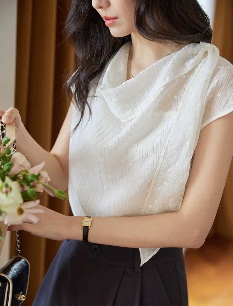 Camisa Tencel Estampada con Tirantes y Cuello Swing Blanco para Mujer Verano Retro Elegante Top Jersey