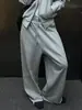 Pantalones Holgados de Pierna Ancha Estilo Retro Americano para Chica Hot Primavera 2025 Combinación Versátil Cintura Elastoelástica Cordón Doble Cintura Pantalones Casuales
