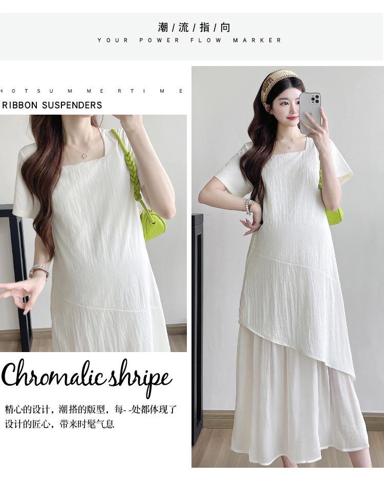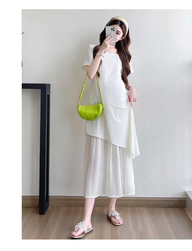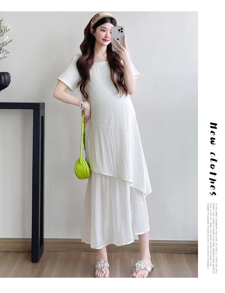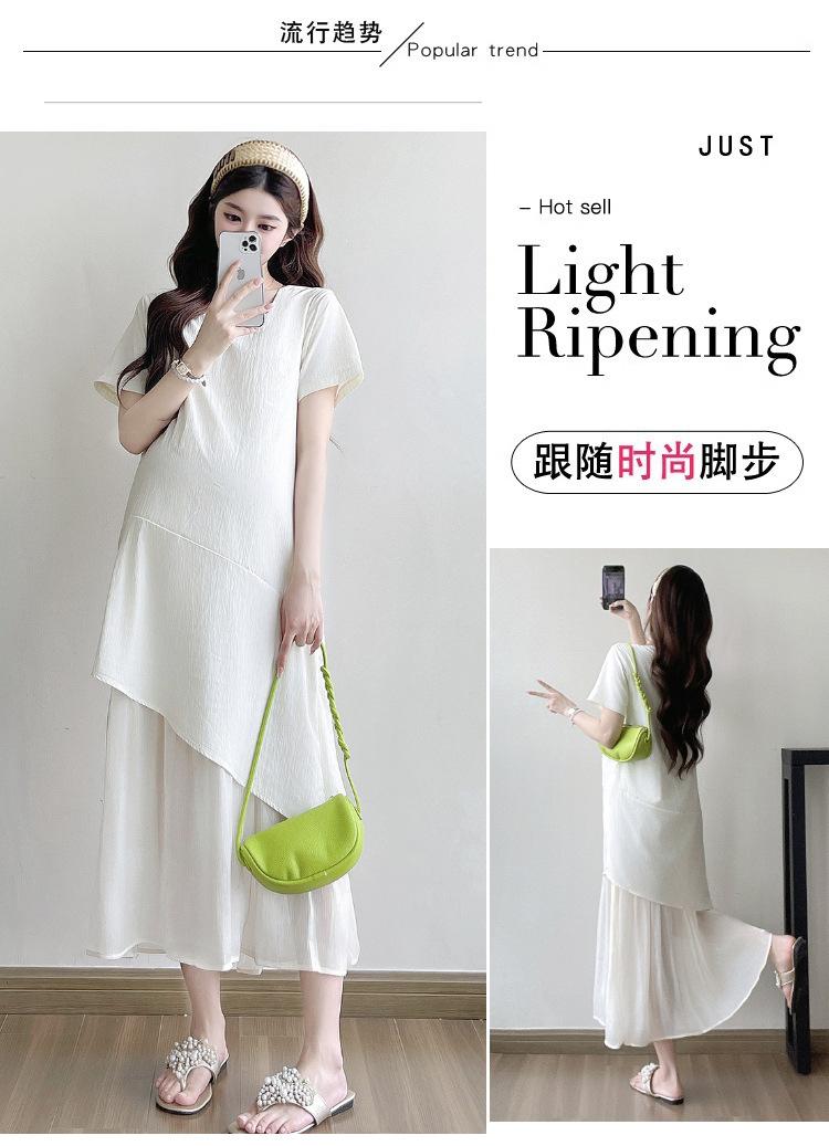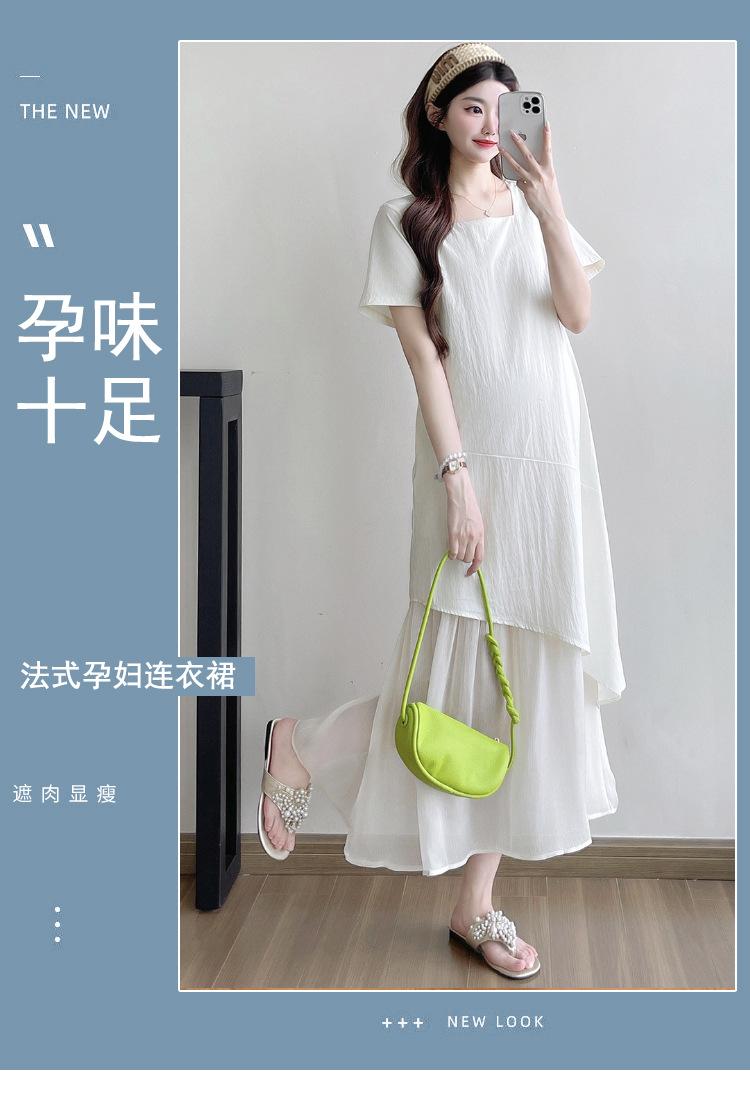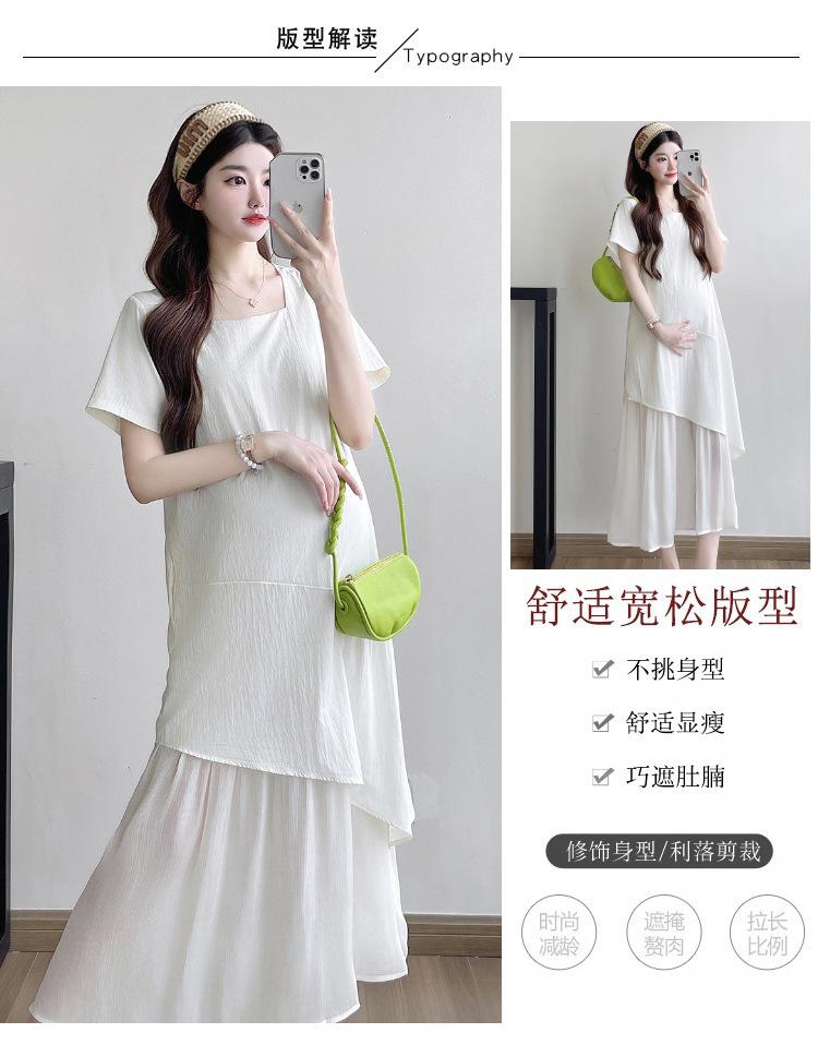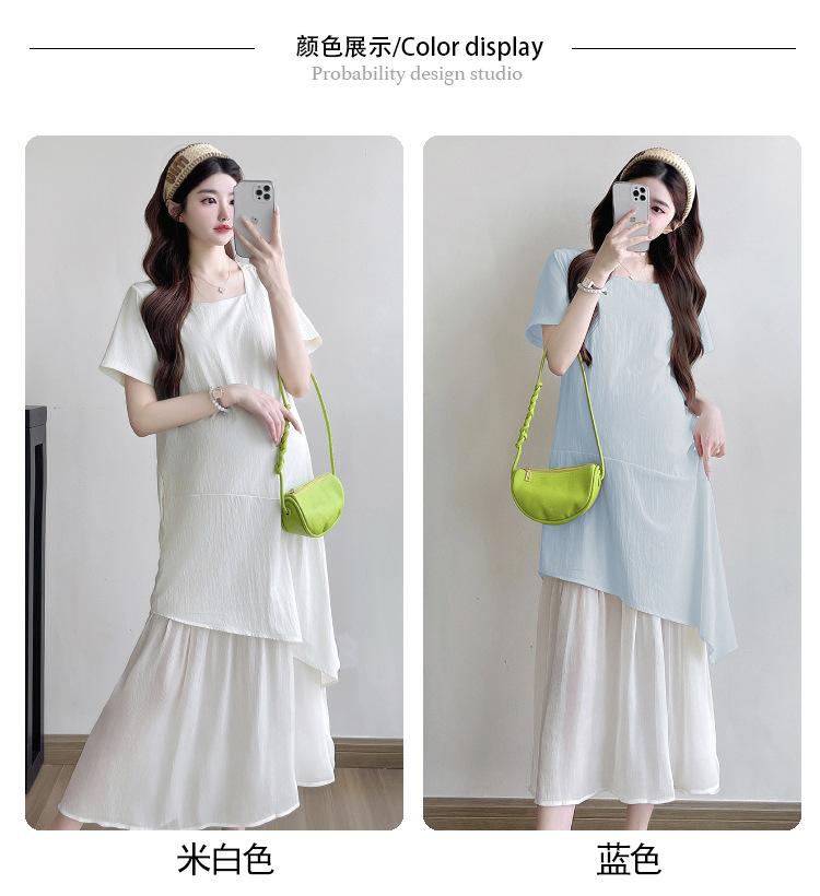 Maternidad 2025 verano nuevo estilo coreano temperamento diseño de combinación de colores sensación holgada talla grande vestido para mujeres embarazadas