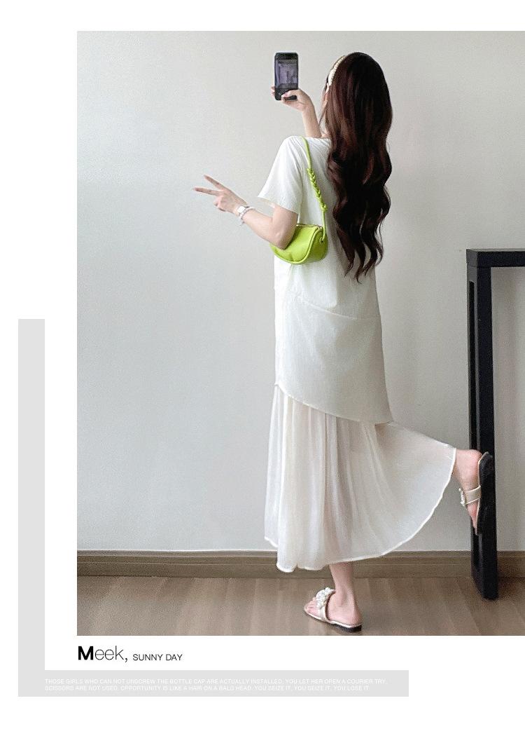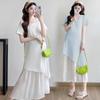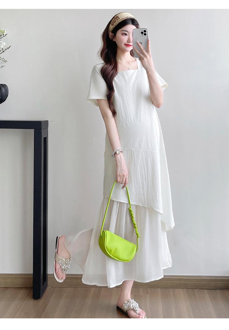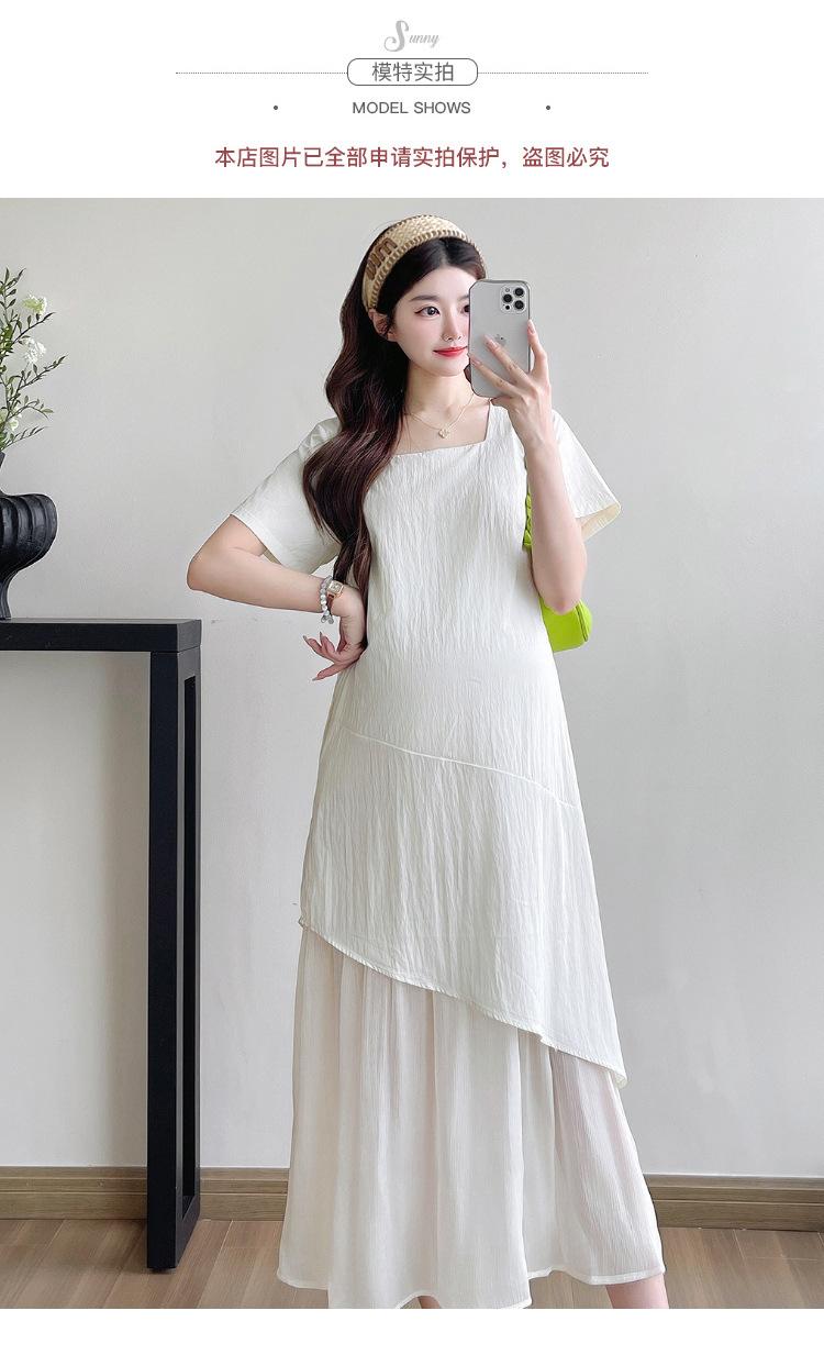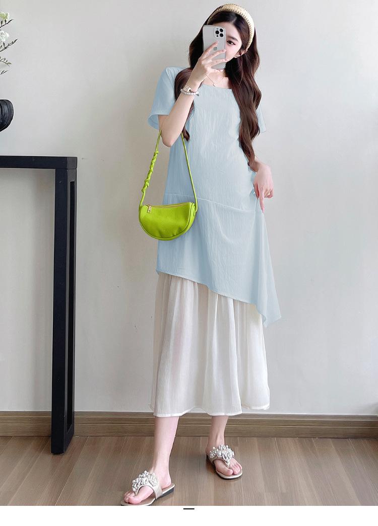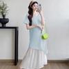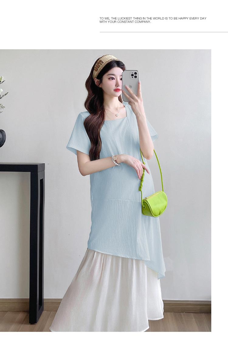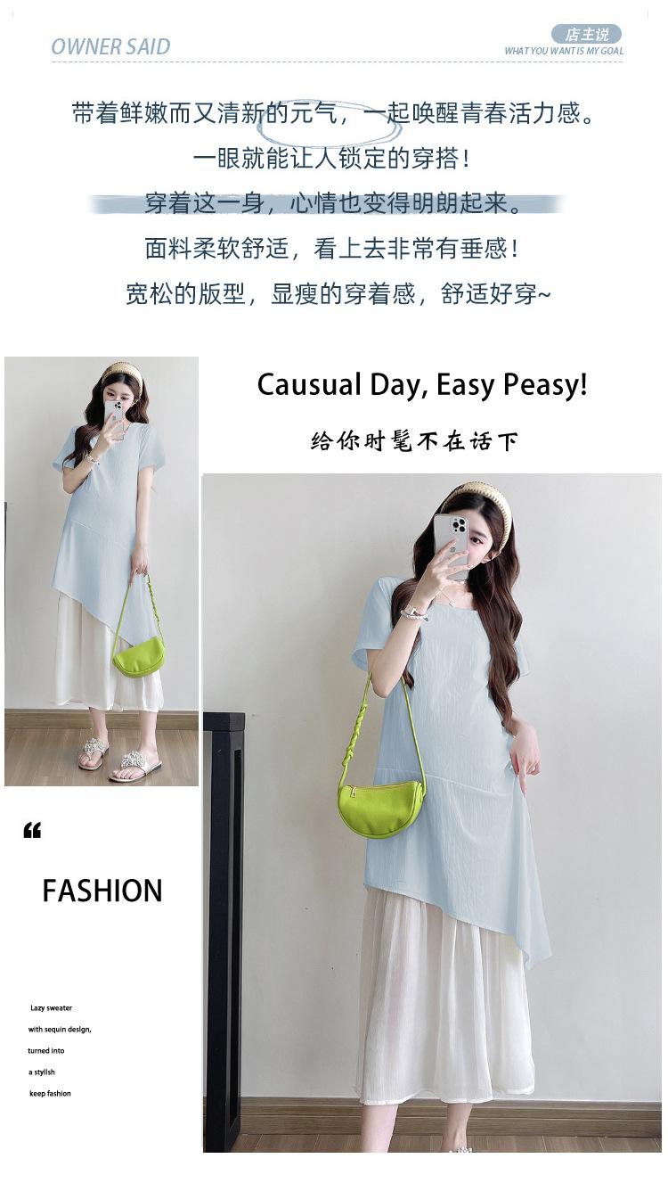 Maternidad 2025 verano nuevo estilo coreano temperamento diseño de combinación de colores sensación holgada talla grande vestido para mujeres embarazadas