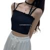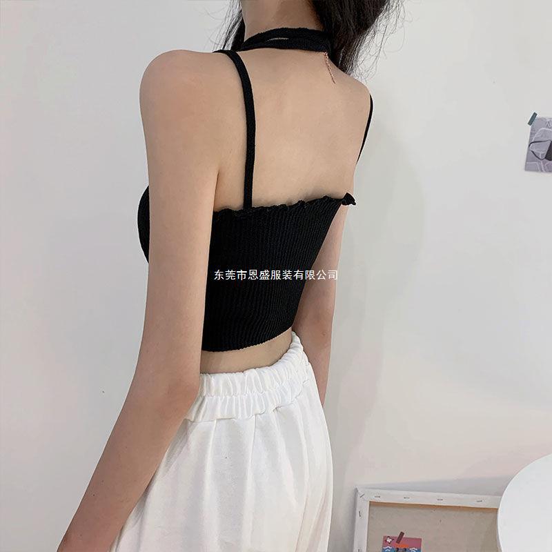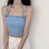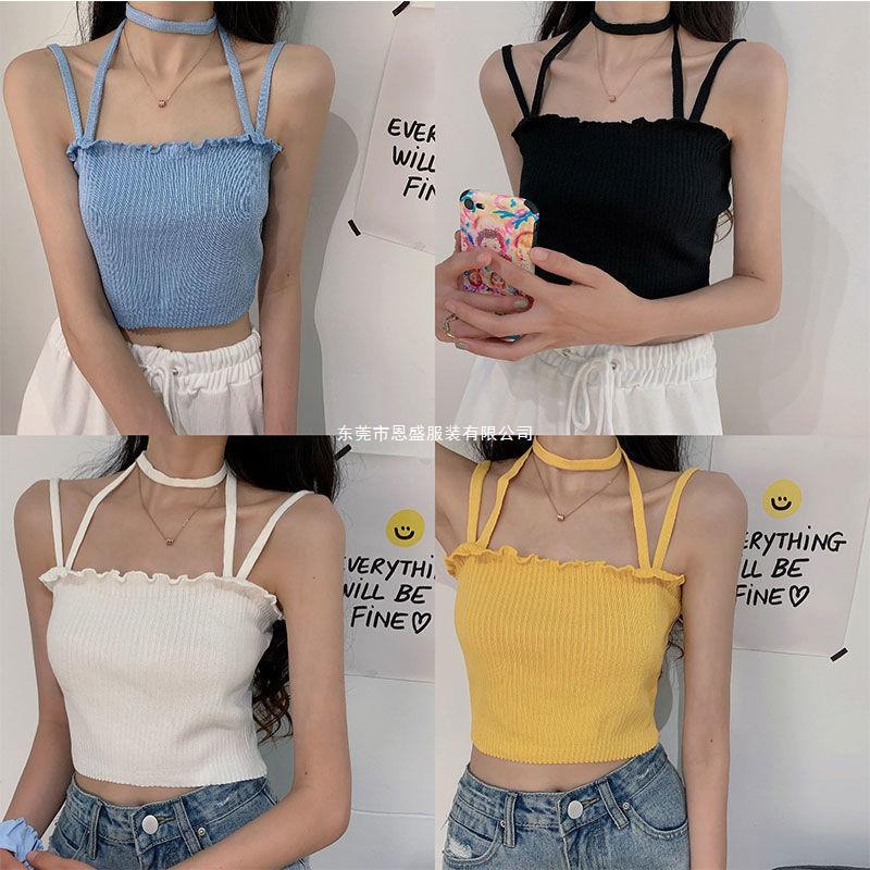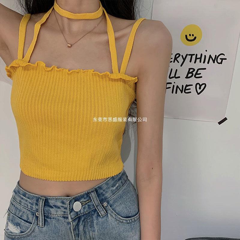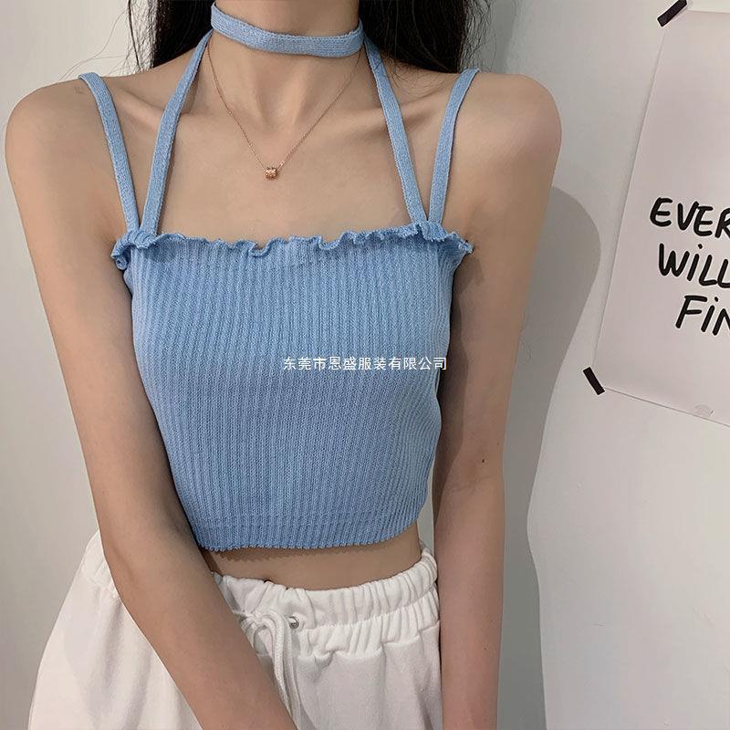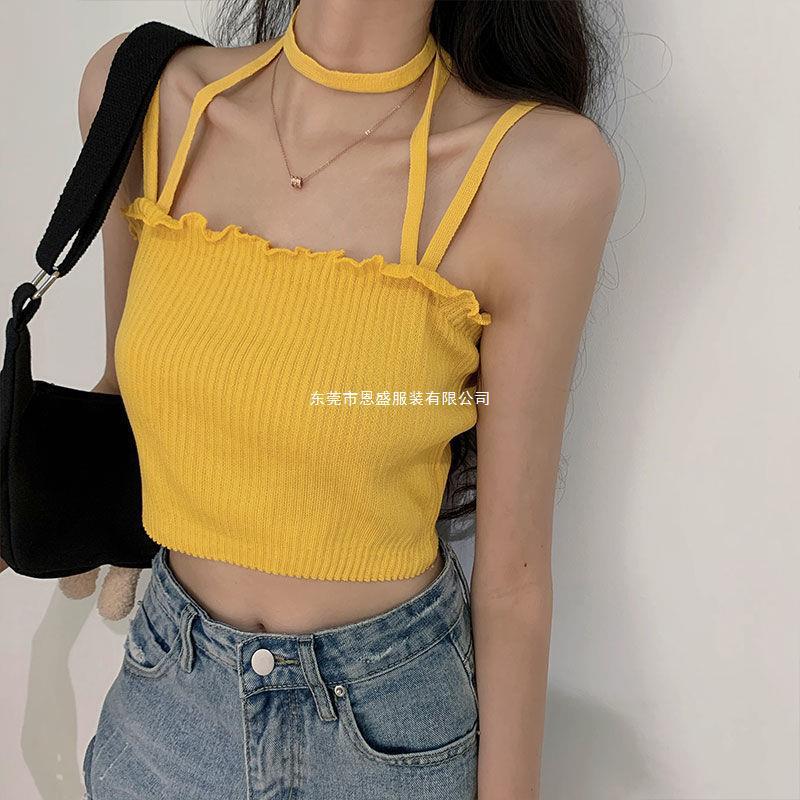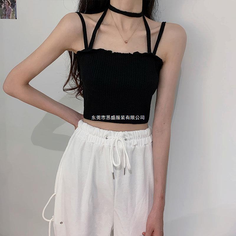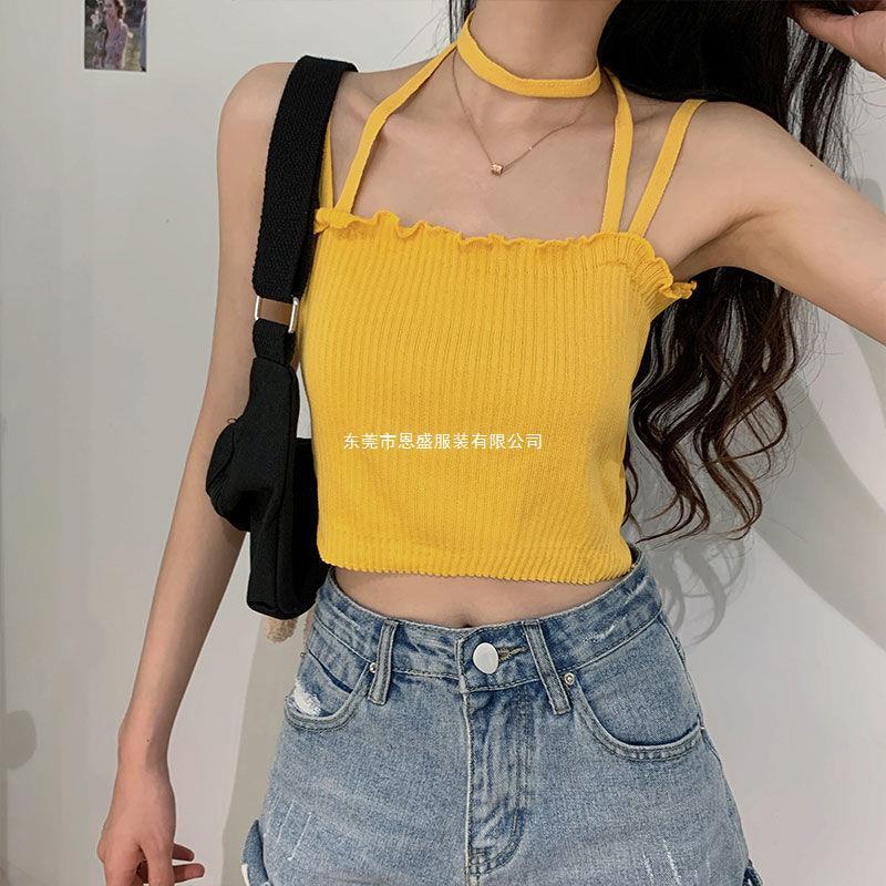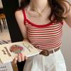 Chaleco Tejido de Seda de Hielo para Chica Caliente con Rayas Cortas Verano Diseño de Cadena Interior Nicho Ropa Exterior Top sin Mangas para Mujer