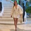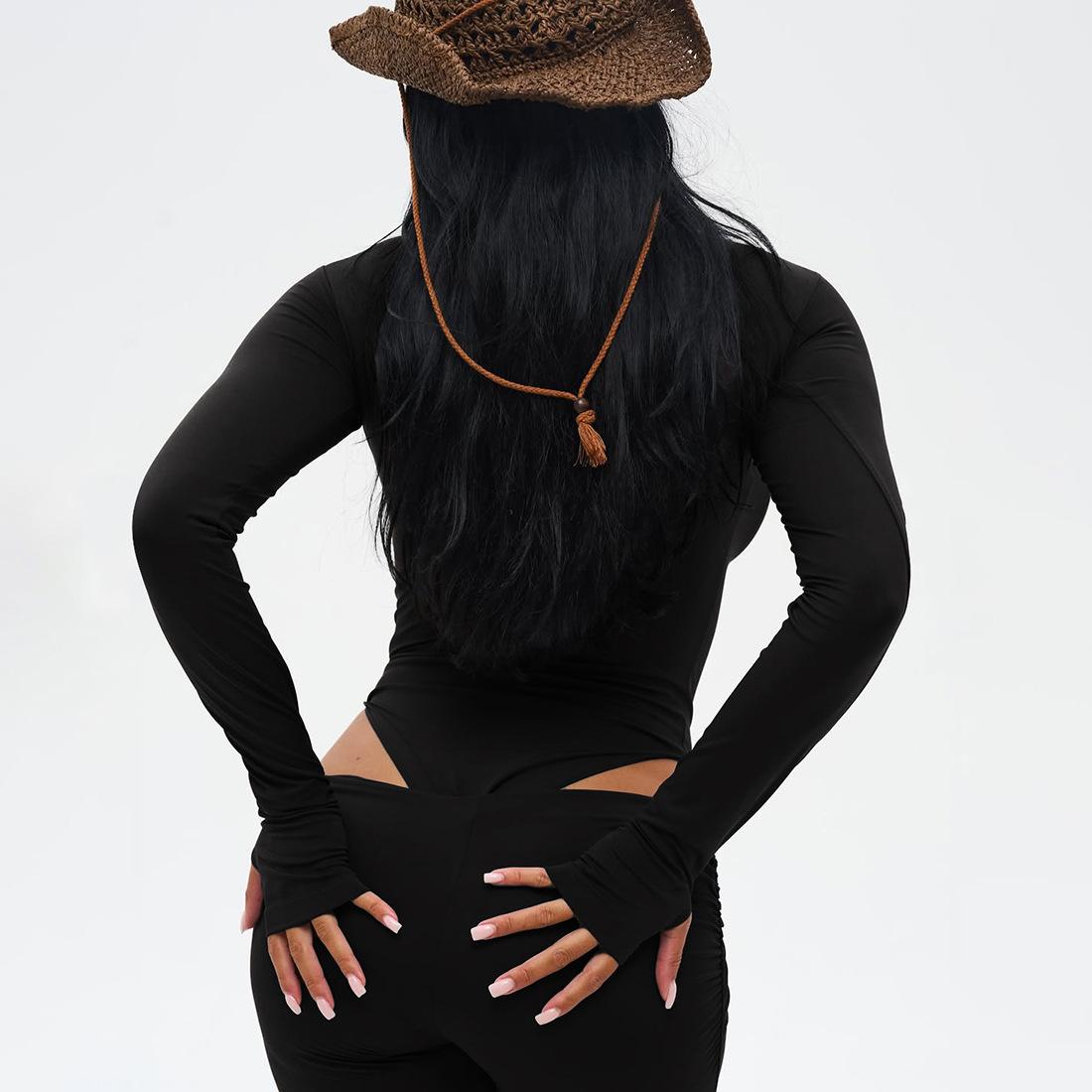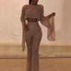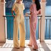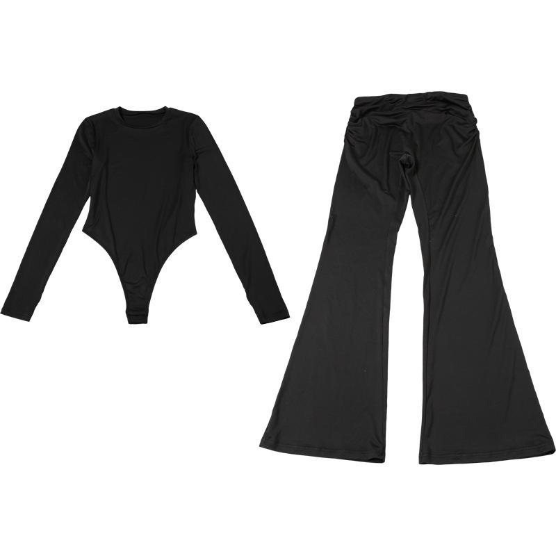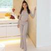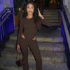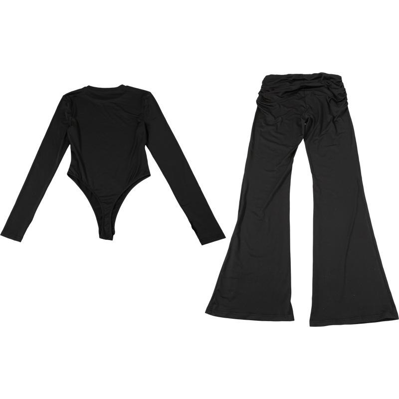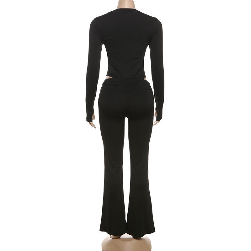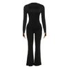 Amazon 2025 Exportación Nueva Moda Elegante Color Puro Cuello Redondo Manga Larga Mono Ajustado Traje de Pantalón de Cintura Baja