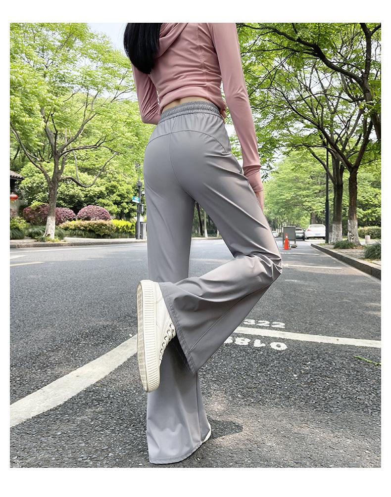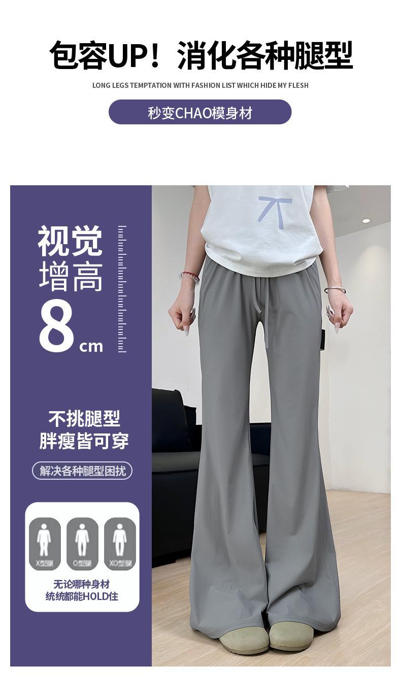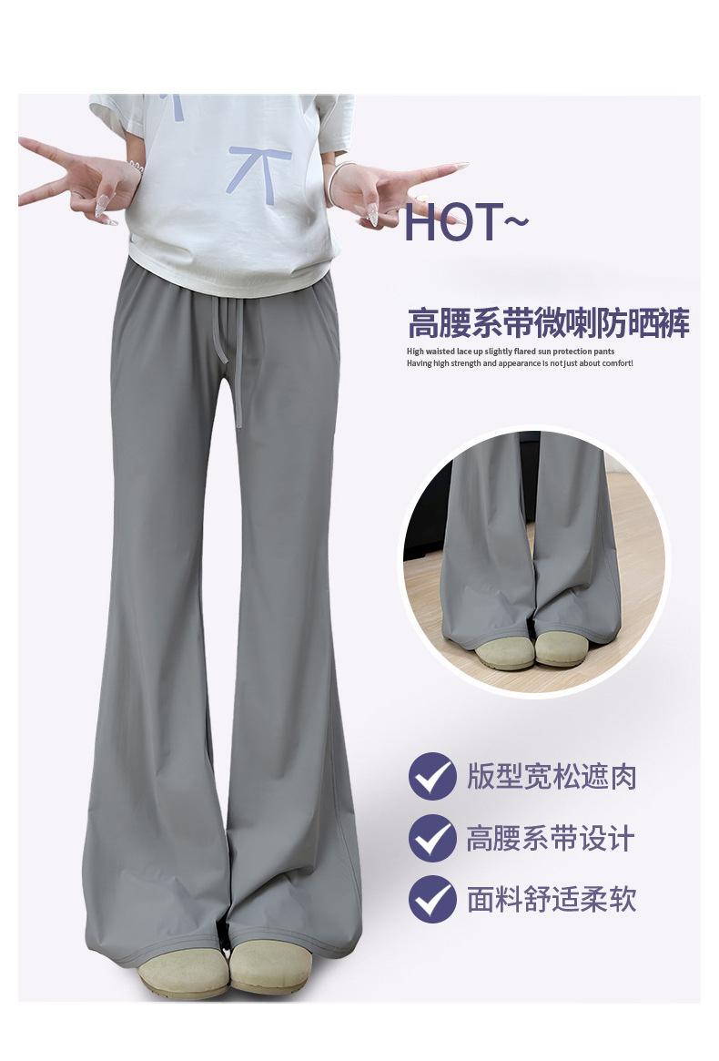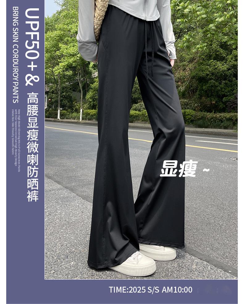 Pantalones de Protección Solar de Secado Rápido para Mujer, Estilo Delgado de Verano 2025 Nuevo Pequeño Casual Cintura Alta Drapeado Seda Helada Acampanados Pantalones Frescos