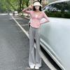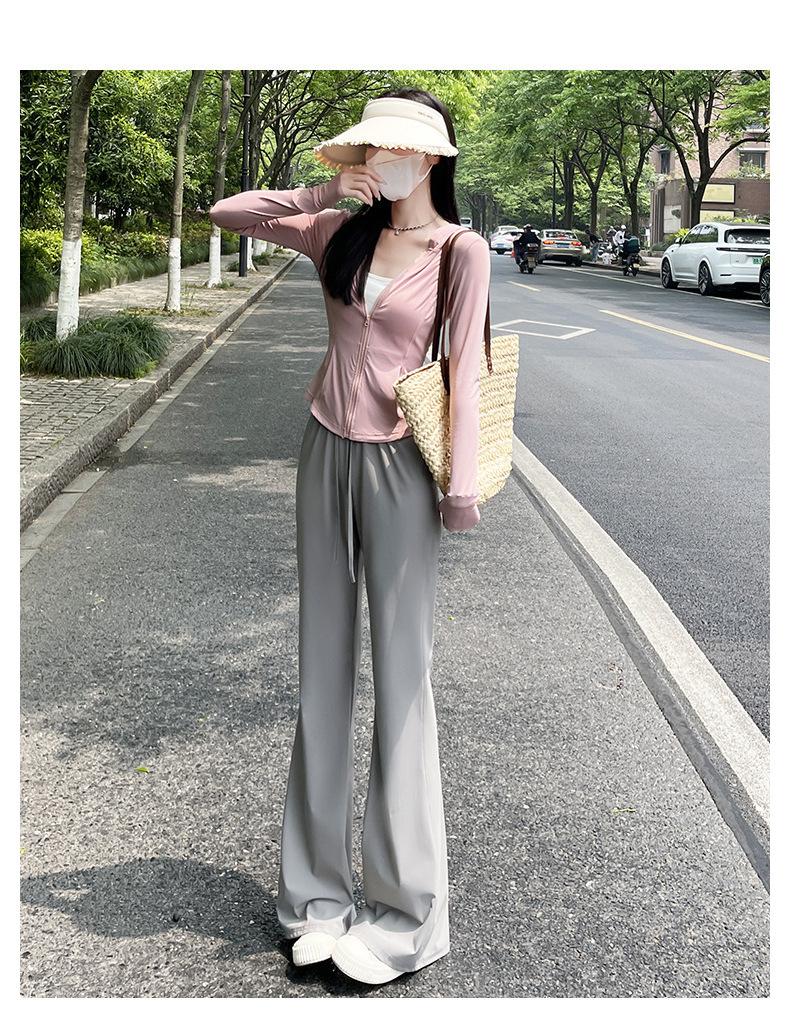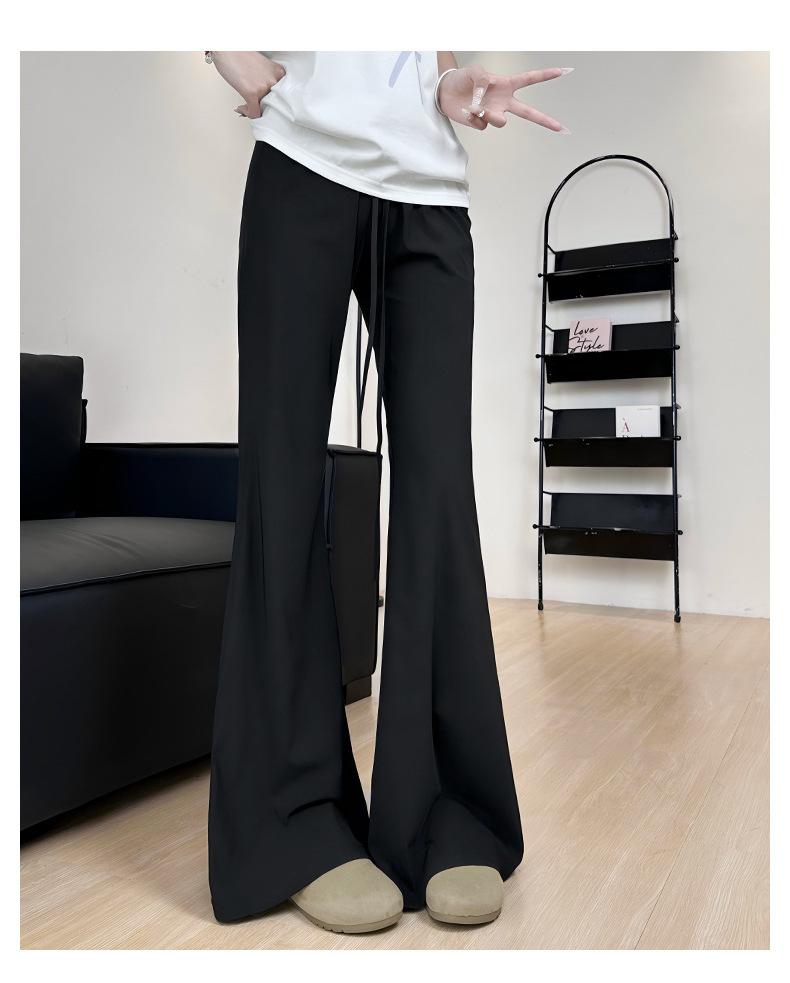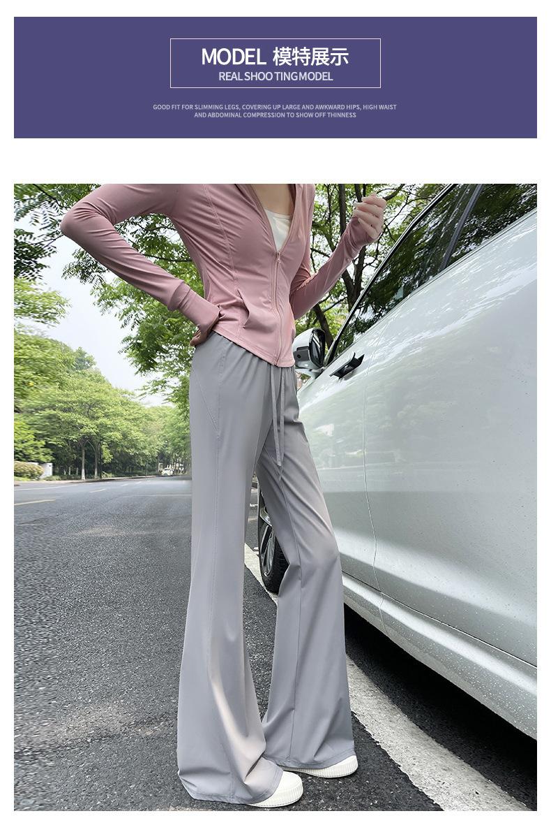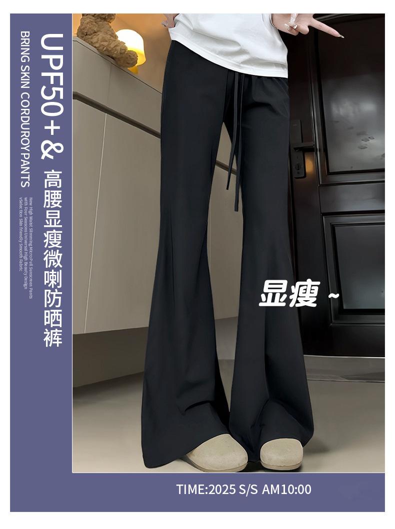 Pantalones de Protección Solar de Secado Rápido para Mujer, Estilo Delgado de Verano 2025 Nuevo Pequeño Casual Cintura Alta Drapeado Seda Helada Acampanados Pantalones Frescos