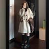 2025 Principios de Primavera y Otoño Estilo Retro Suelto y Slim Abrigo de Lana de Largo Medio Estilo Coreano Abrigo de Lana Pequeño para Mujer