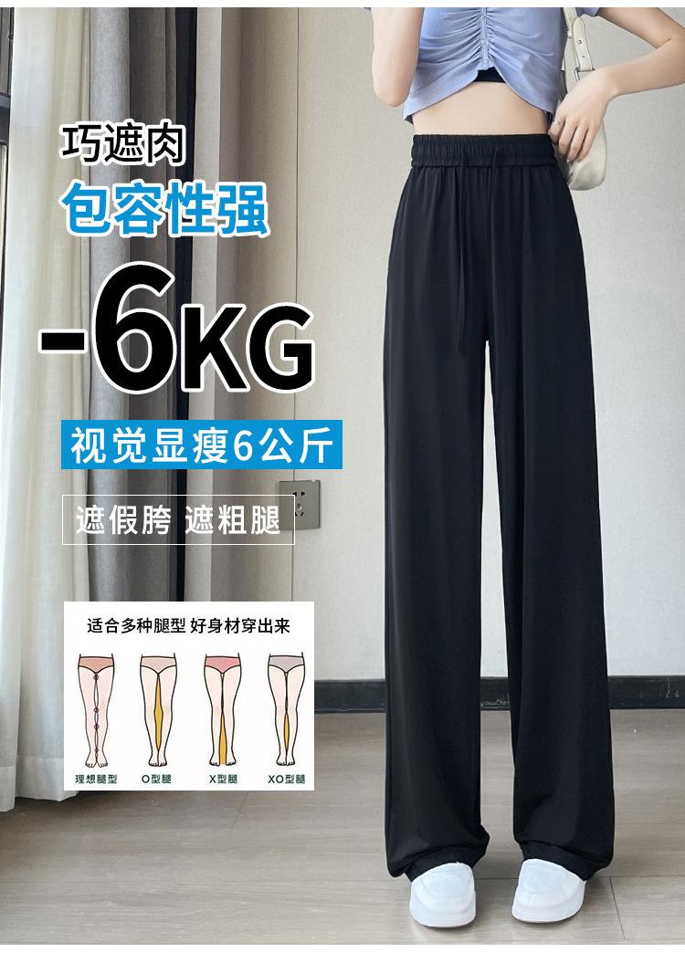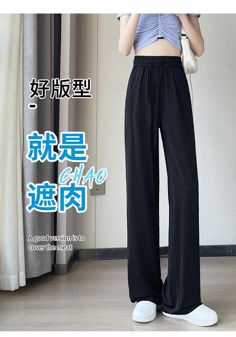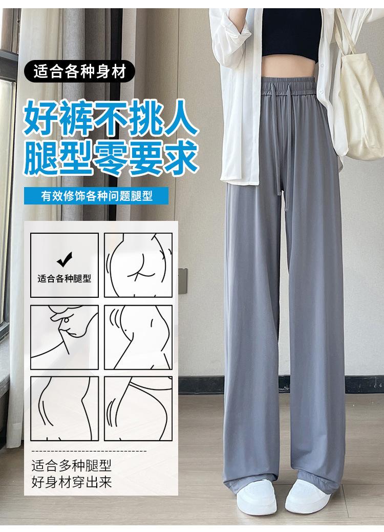 Pantalones de Verano para Mujer de Pierna Ancha de Seda de Hielo 2025 Protección Solar, Largo Extendido, Caída Recta Estrecha Alta, Pantalones de Verano para Mujer