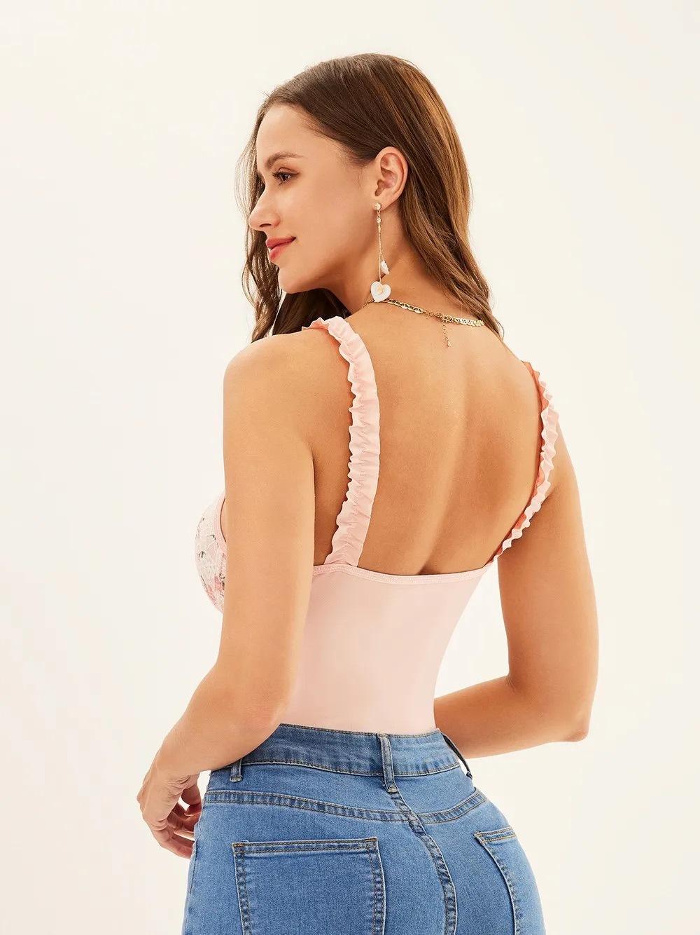 Moda de Estación Europea Transfronteriza para Mujer Verano Nuevo Estilo Ins Encaje Sexy Oreja de Encaje Estampado Rosa
