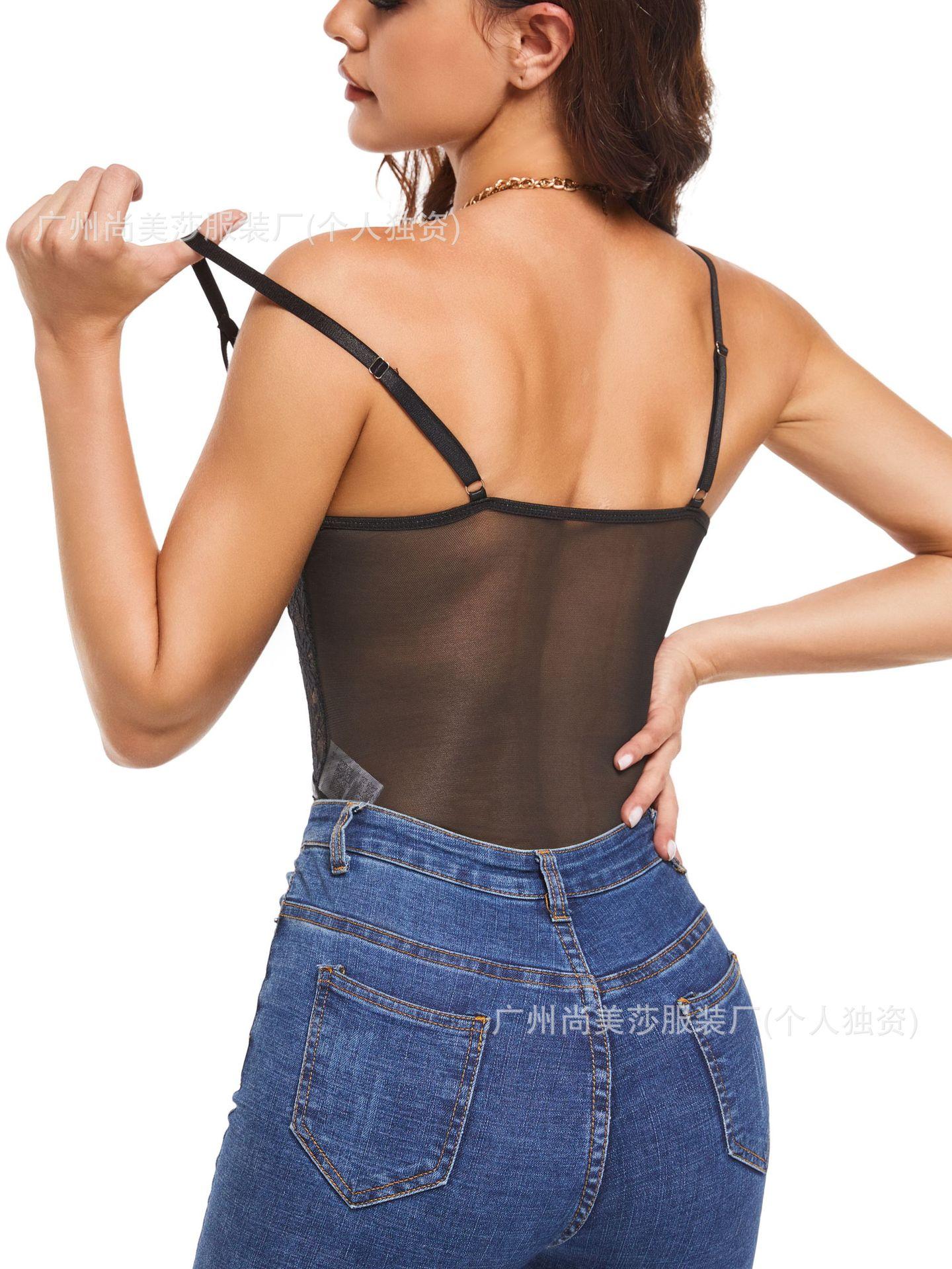 Monos adelgazantes de comercio exterior transfronterizo, sexys europeos y americanos, de color sólido, con transparencia, moldeadores de figura, de corte ajustado, con copas y aro de acero