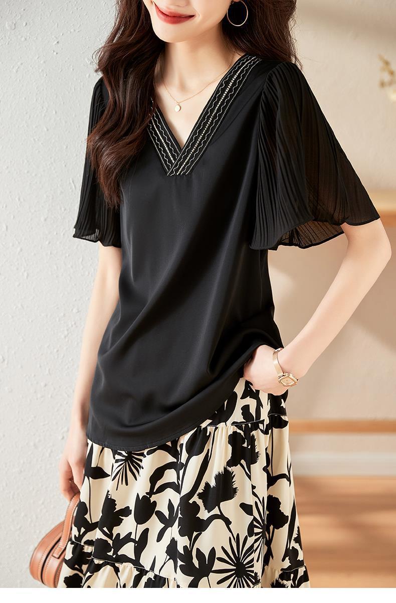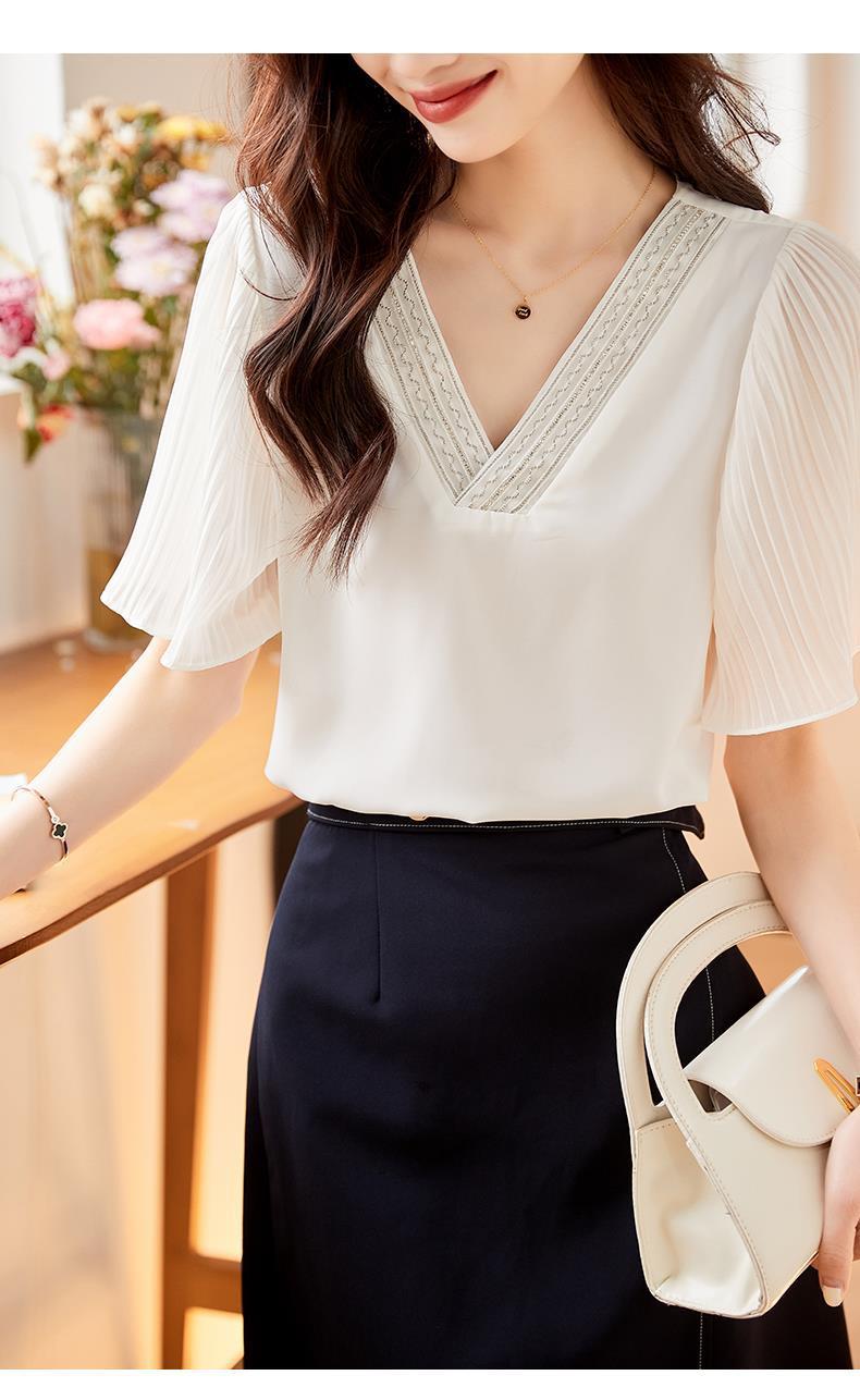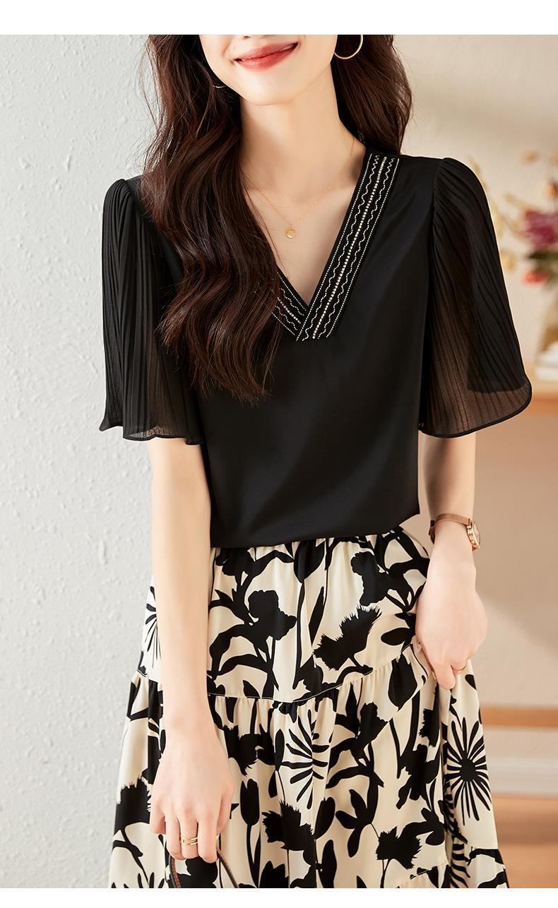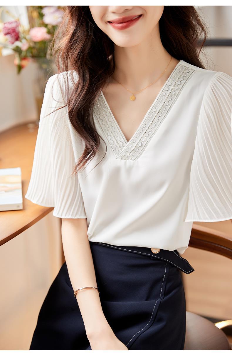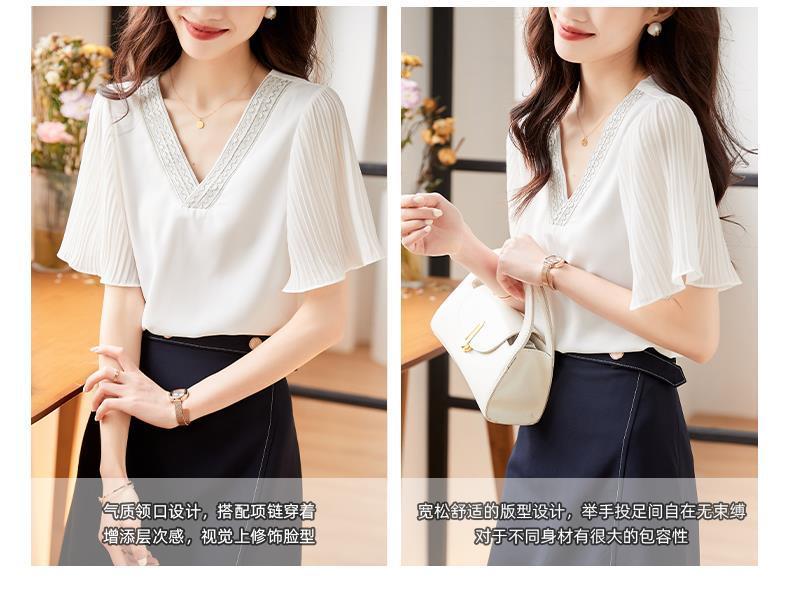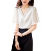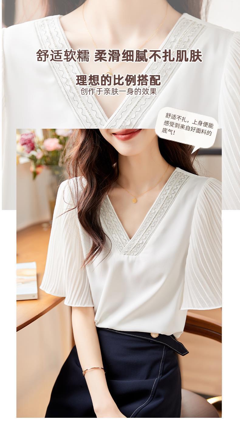 Camisa de gasa de manga corta fina con cuello en V para mujer, elegante camiseta de verano 2024 con nuevo diseño de nicho