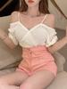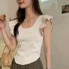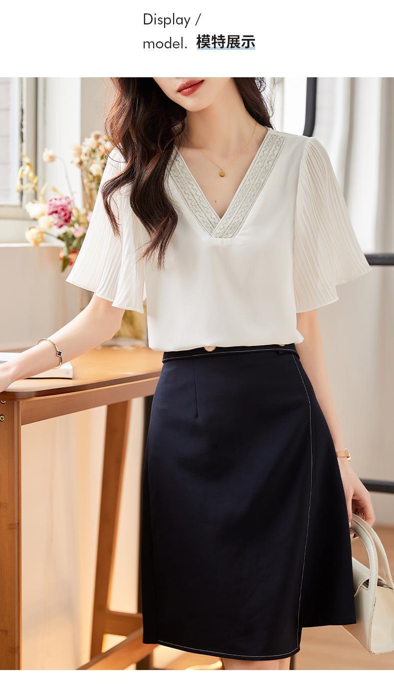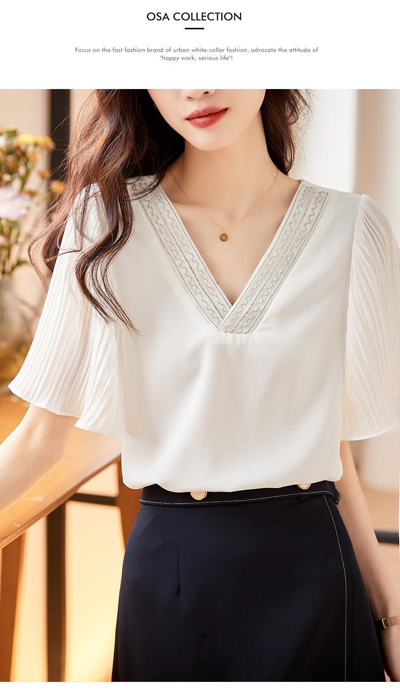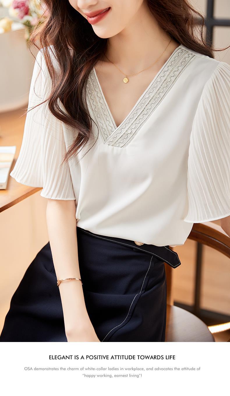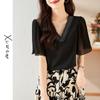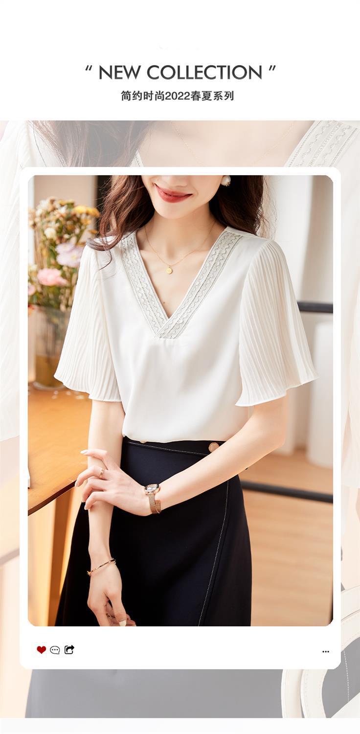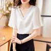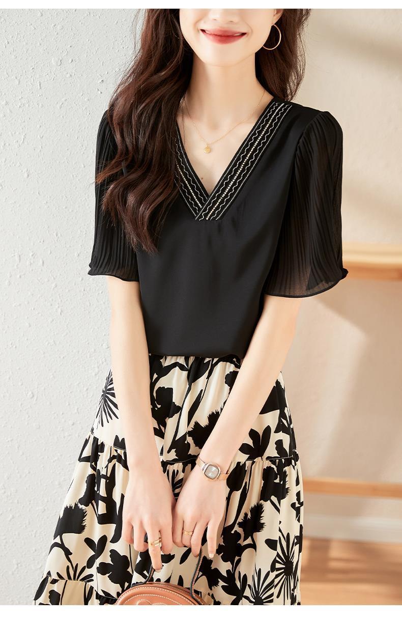 Camisa de gasa de manga corta fina con cuello en V para mujer, elegante camiseta de verano 2024 con nuevo diseño de nicho