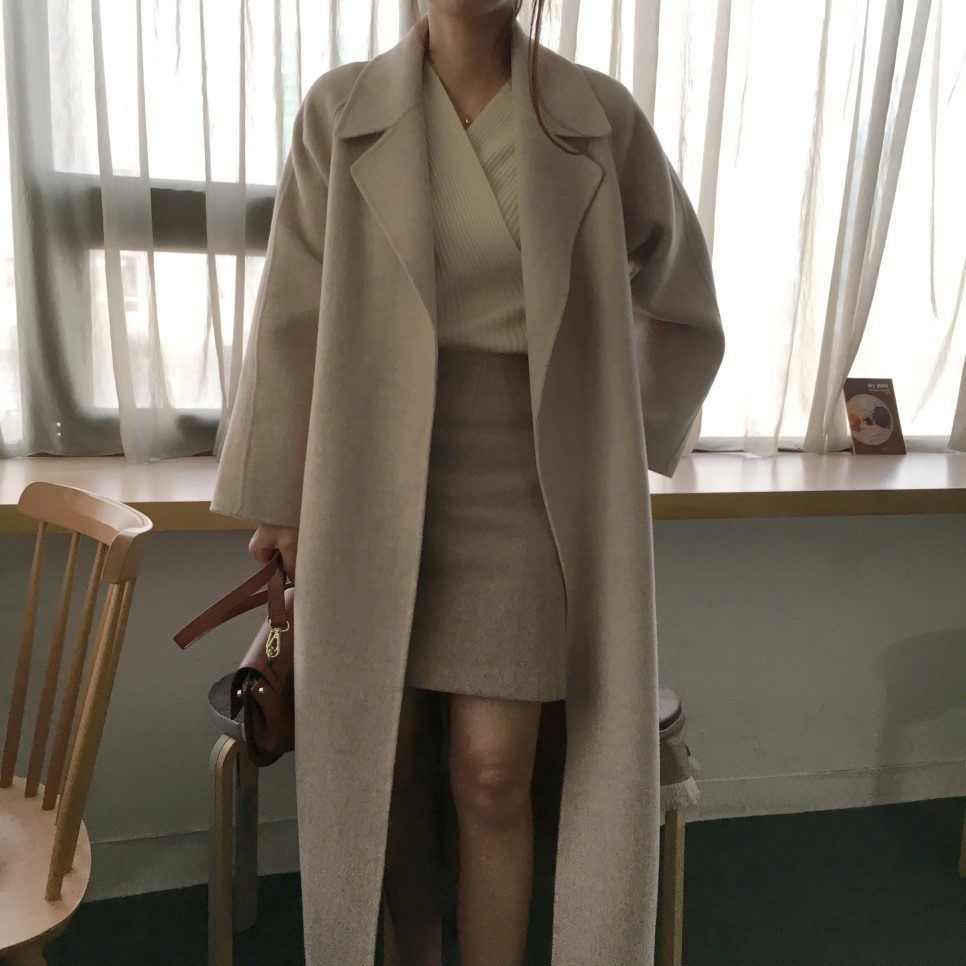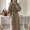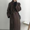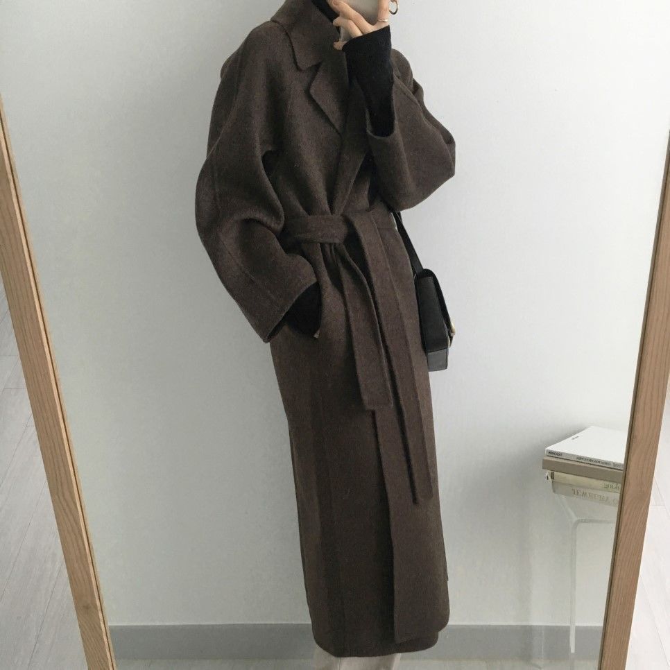 Abrigo de Lana Estilo Coreano Simple para Ir al Trabajo Suave Cuello de Traje Holgado con Cinturón de Lazo Largo Medio Abrigo de Lana