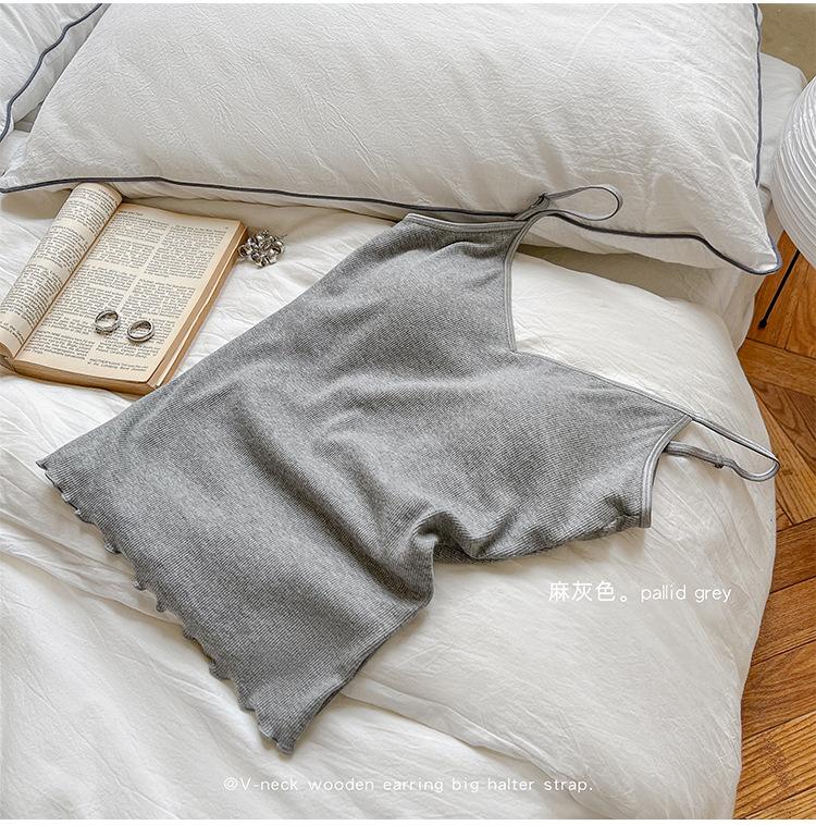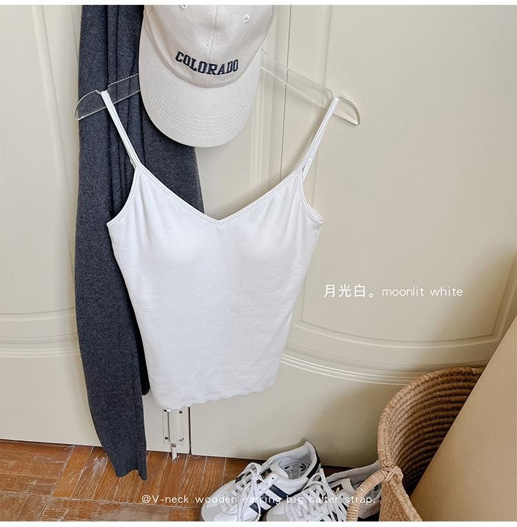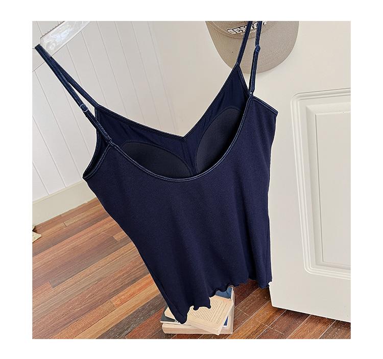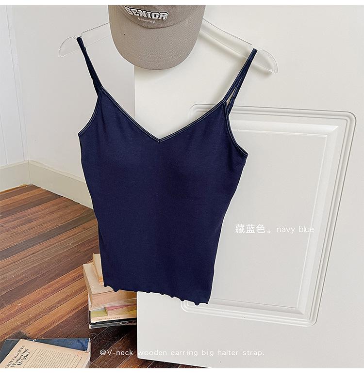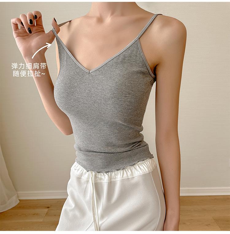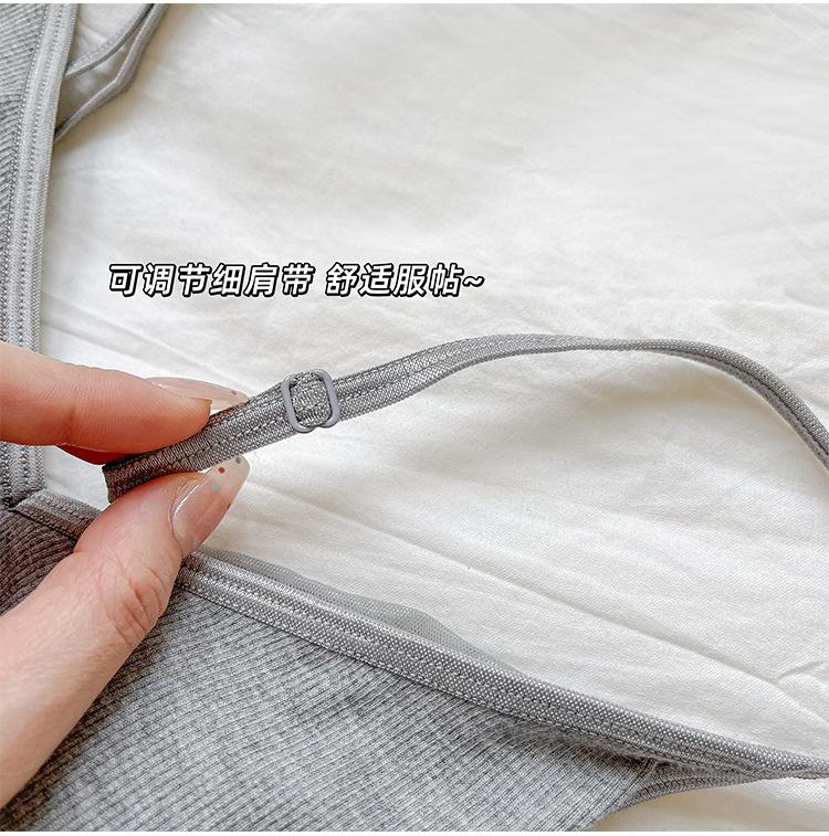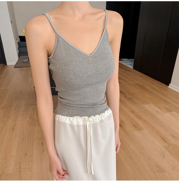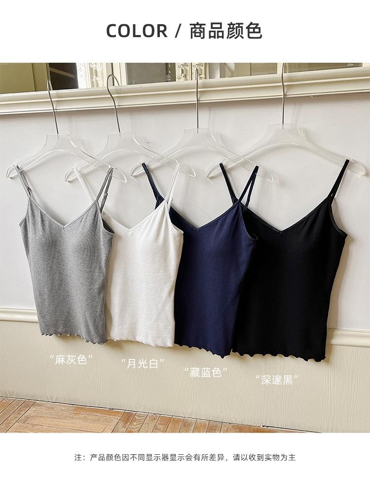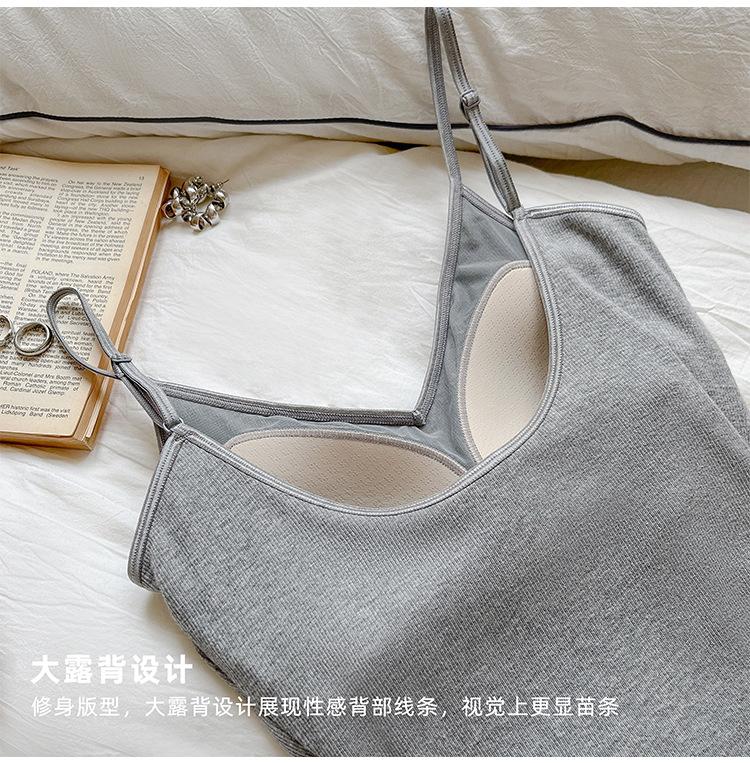 2025 Primavera y Verano Nuevo Estilo Coreano Tirante Rocío Almohadilla para el Pecho Sling Chaleco Pequeño Ajustado Sexy de Color Sólido Explosiones Transfronterizas