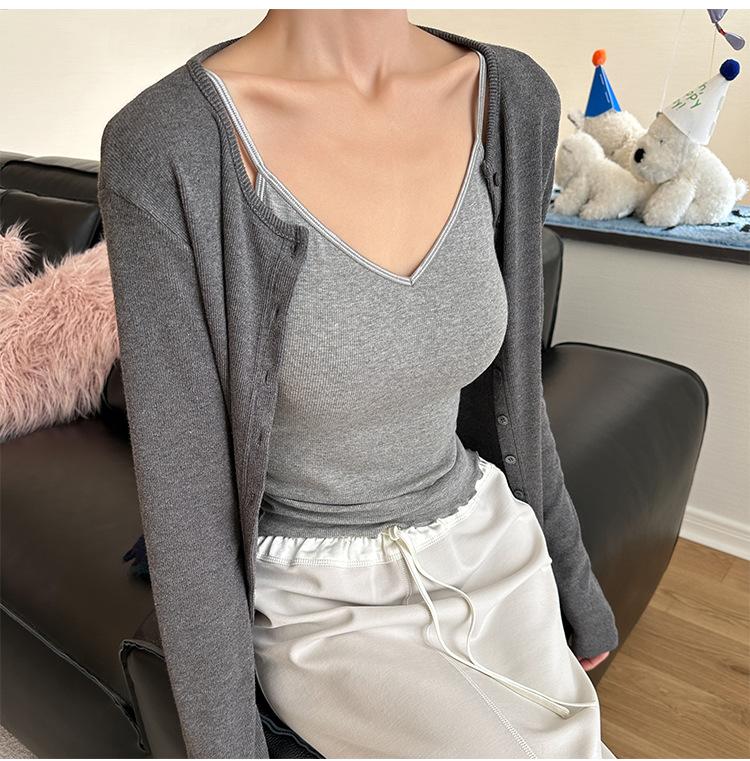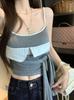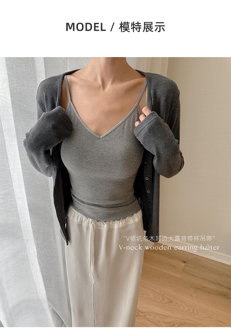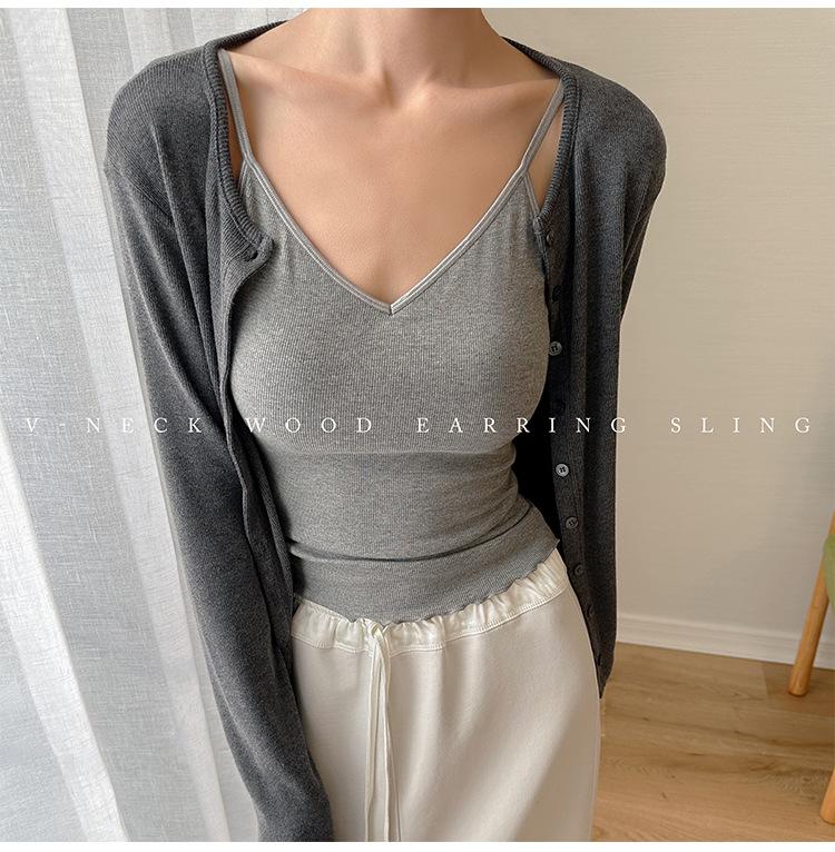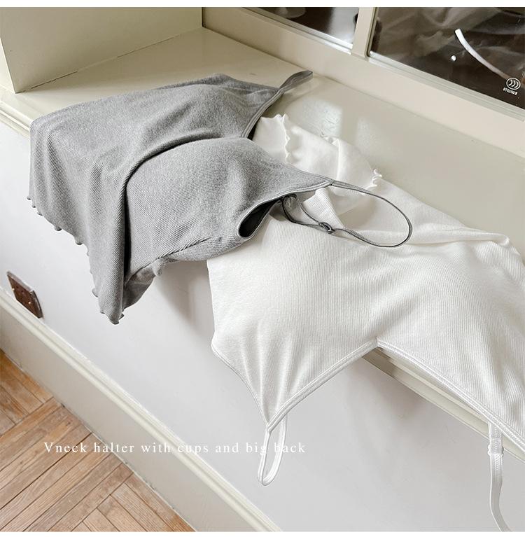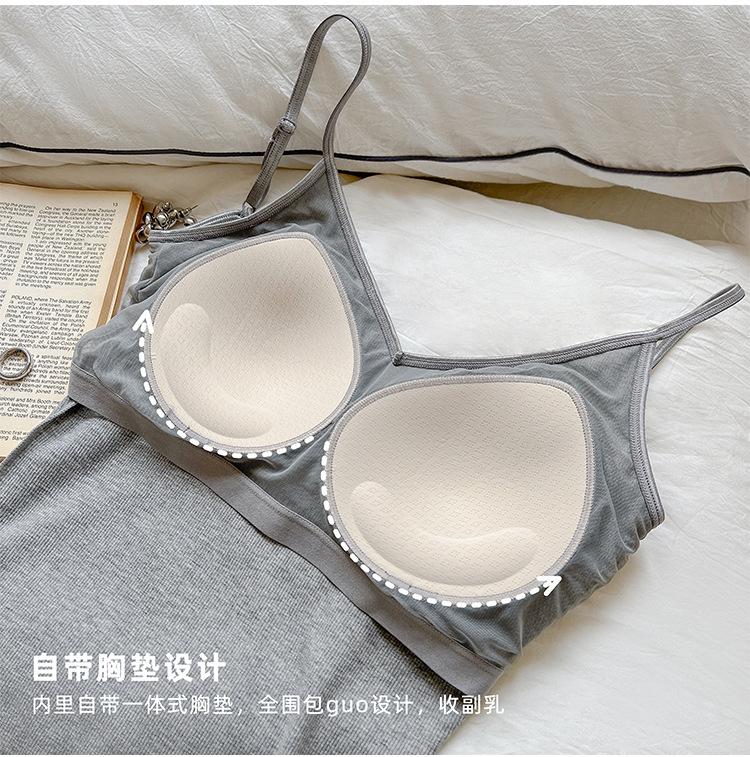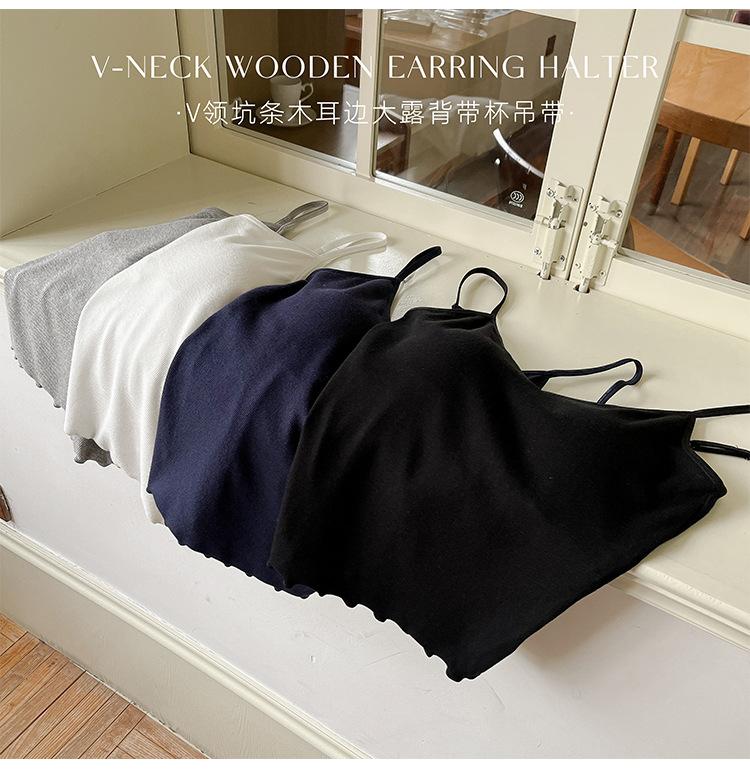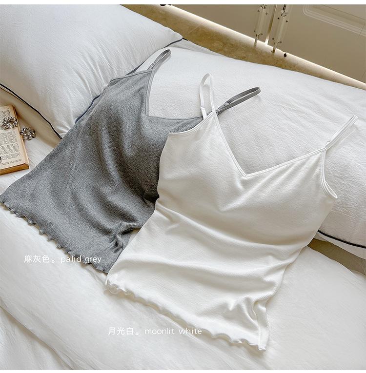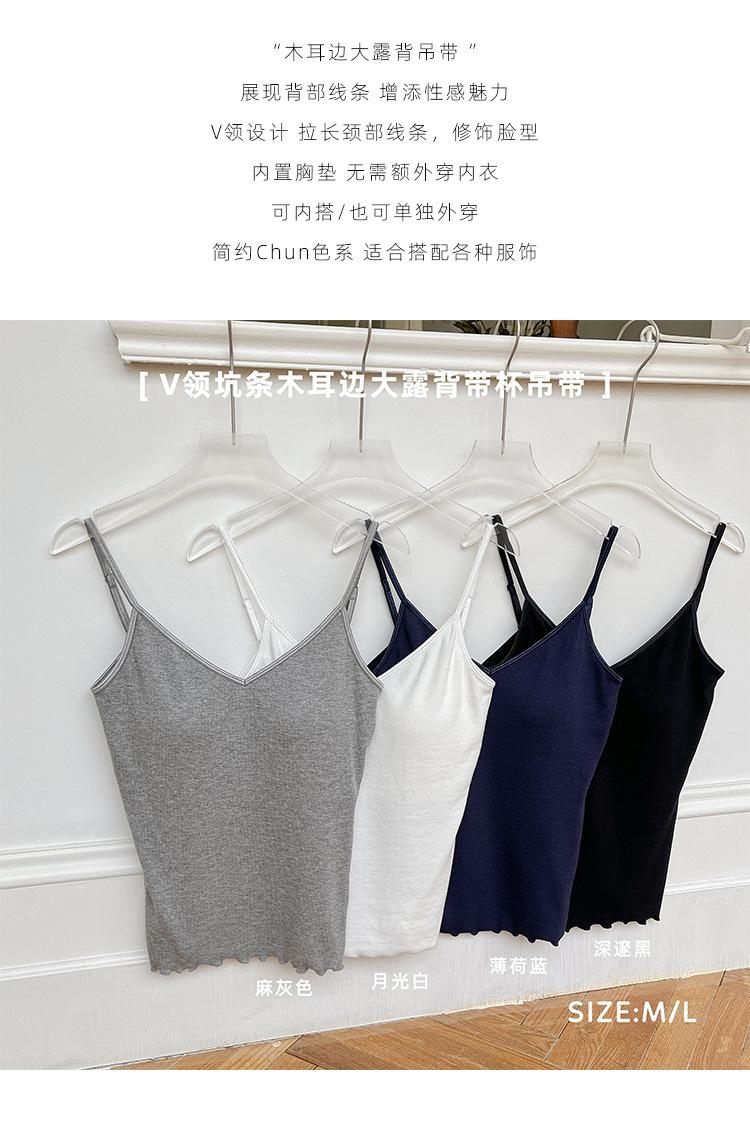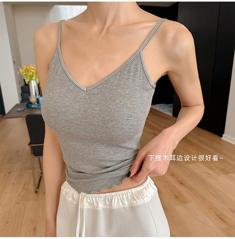 2025 Primavera y Verano Nuevo Estilo Coreano Tirante Rocío Almohadilla para el Pecho Sling Chaleco Pequeño Ajustado Sexy de Color Sólido Explosiones Transfronterizas