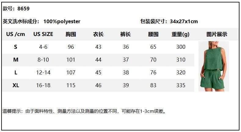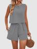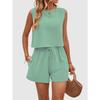 Ropa de Mujer Transfronteriza Europea y Americana, Tops sin Mangas a la Moda, Shorts de Cintura Alta de Color Sólido, Sets Casuales de Dos Piezas al Mayoreo